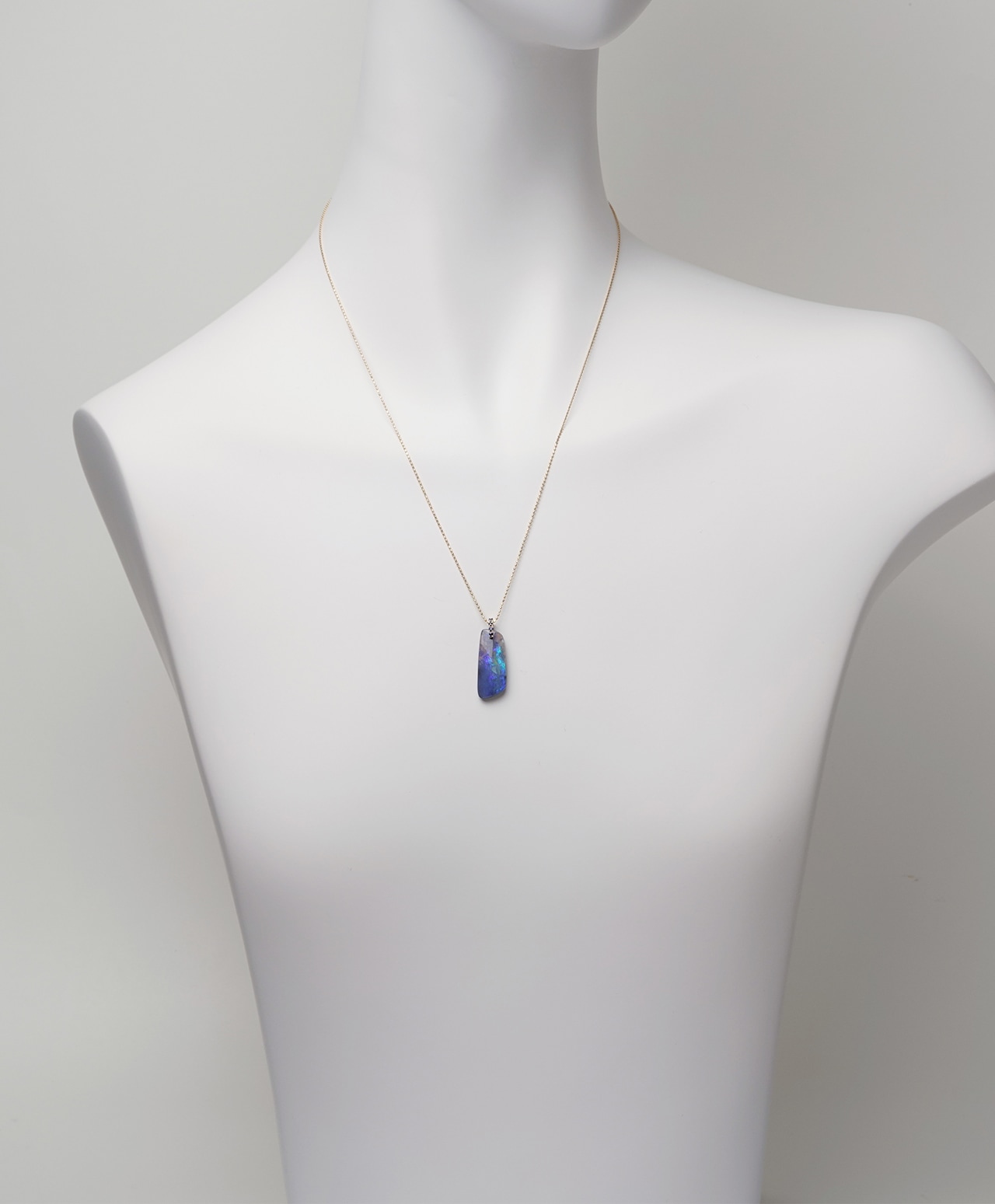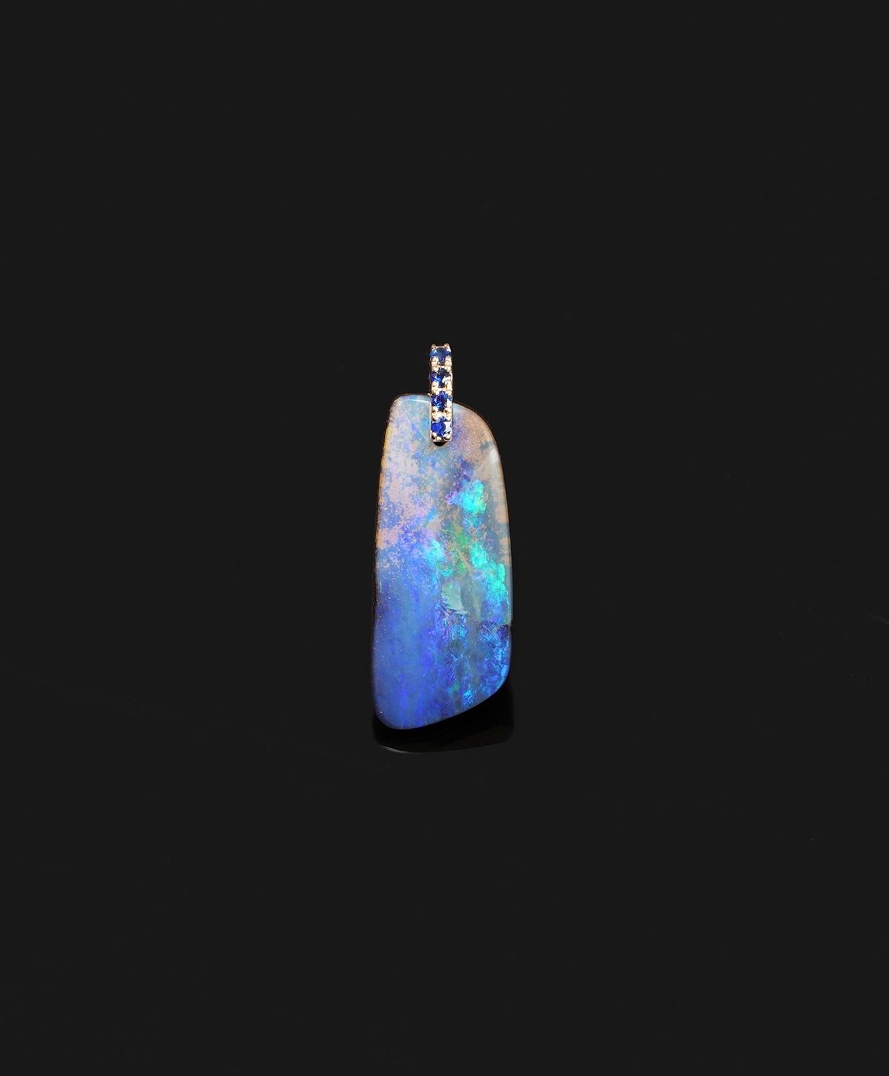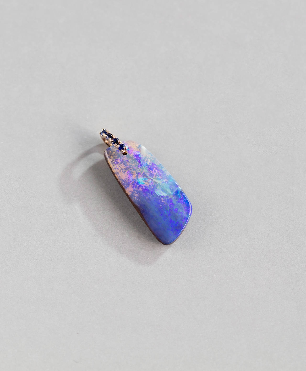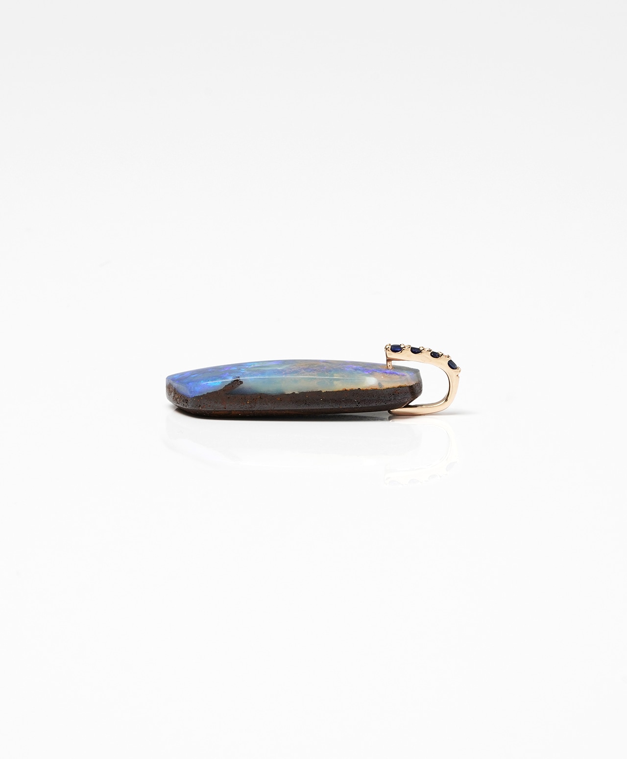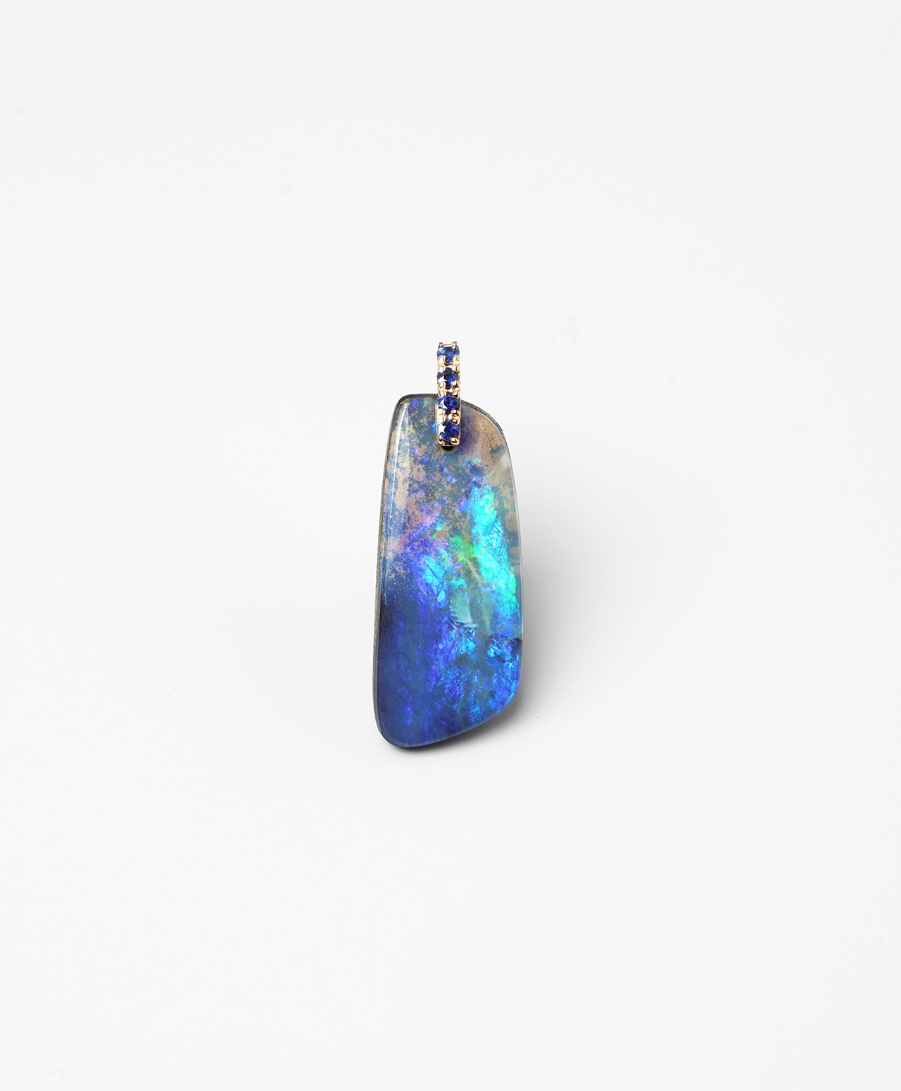 オーストラリア・クーバーペディ産ボルダーオパールとスリランカ産ブルーサファイアを、1点もののチャームにしました。