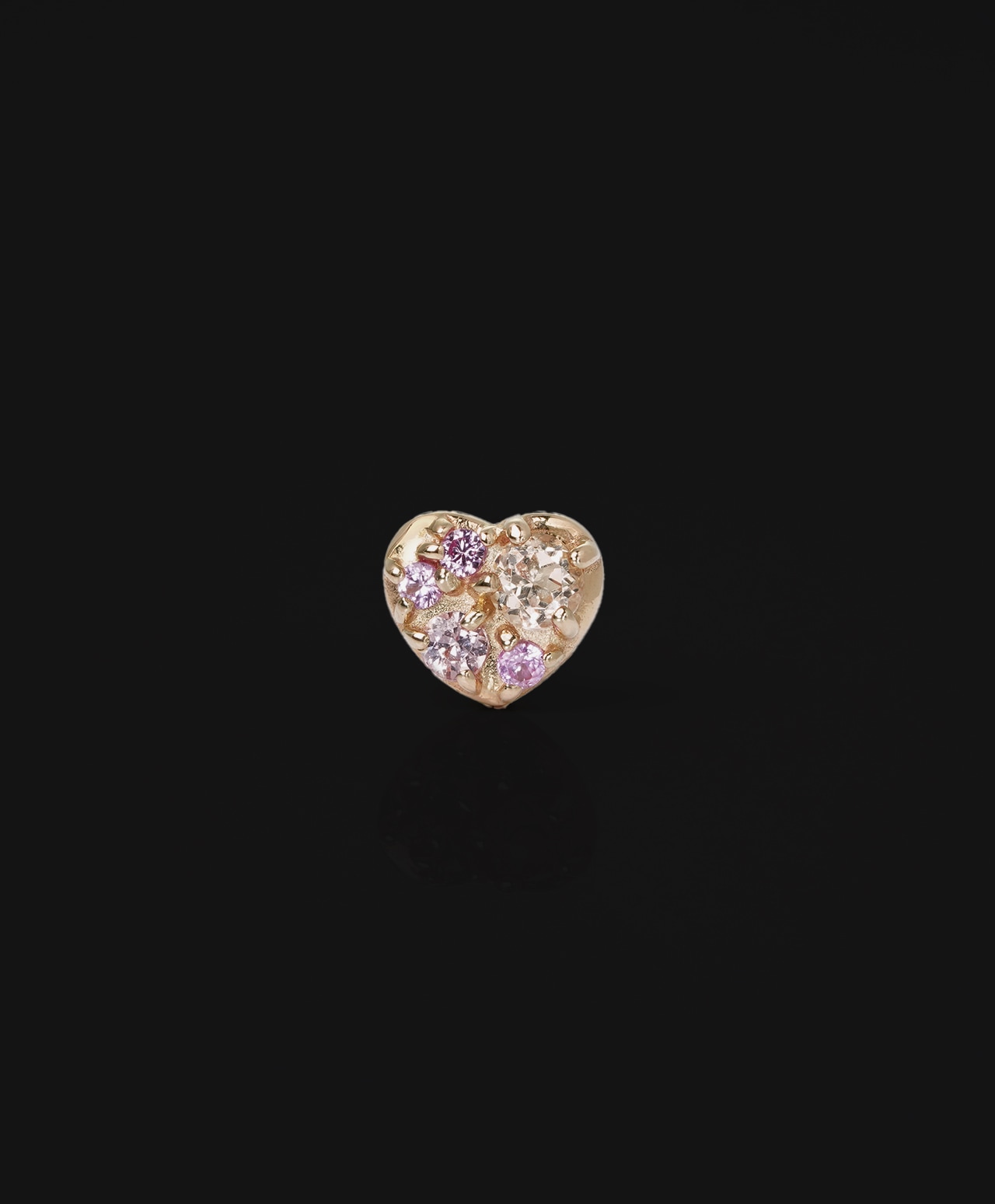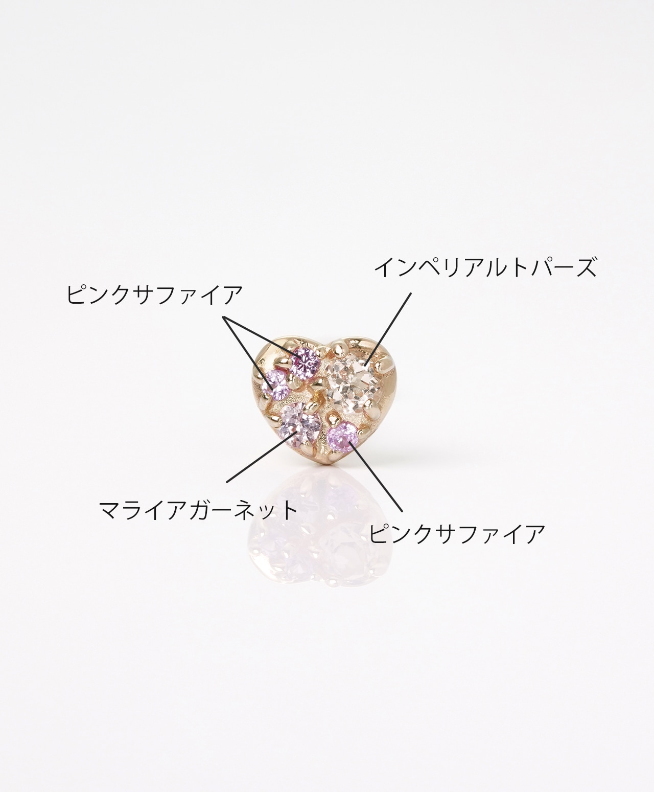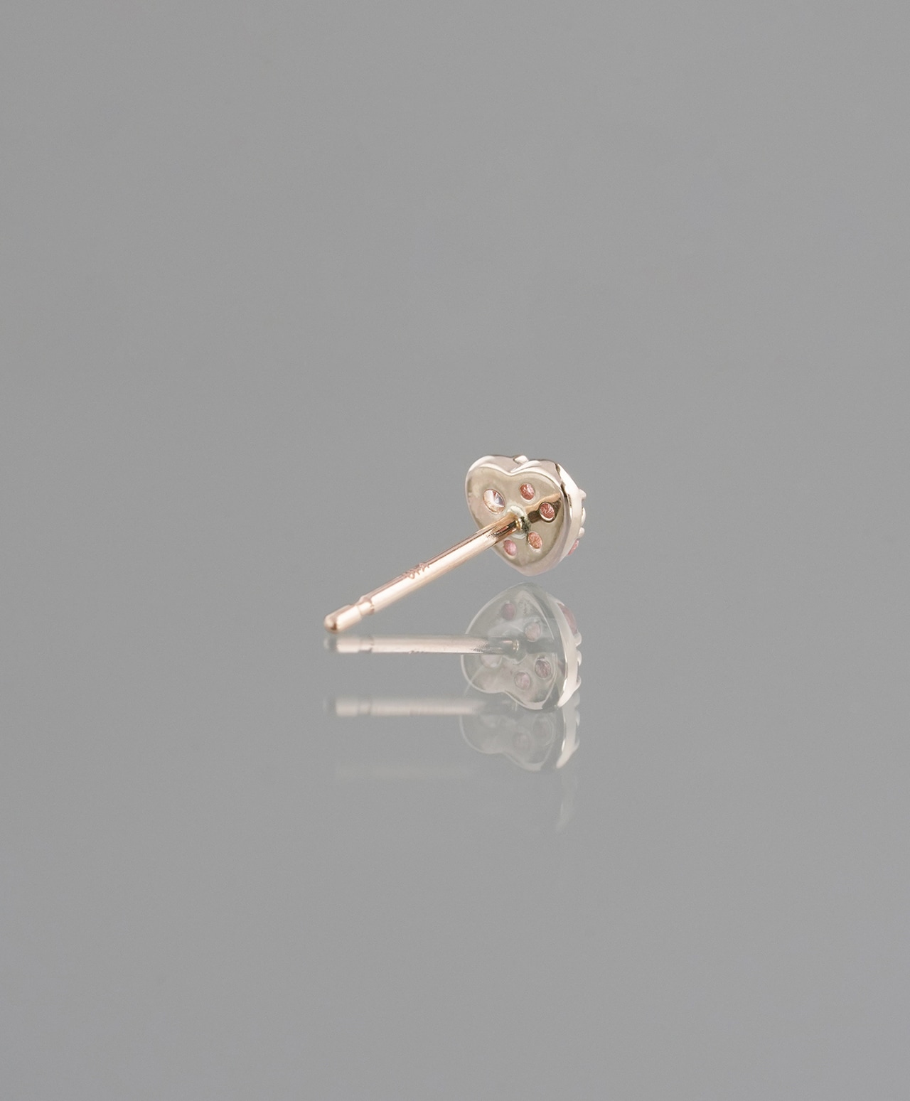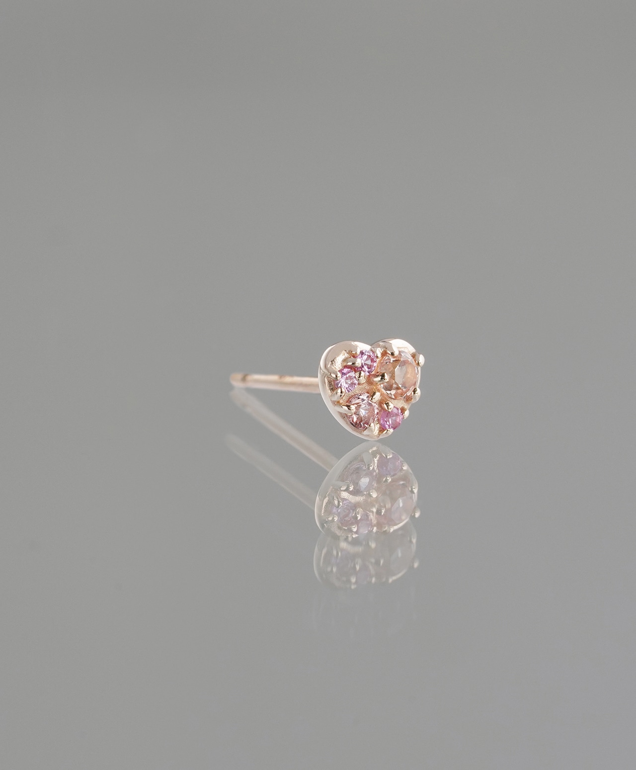 人気石たちが織りなす、ニュアンス豊かなピンクのグラデーションがやわらかにほどける、ハートシルエットのシングル(片耳)パヴェピアスです。
