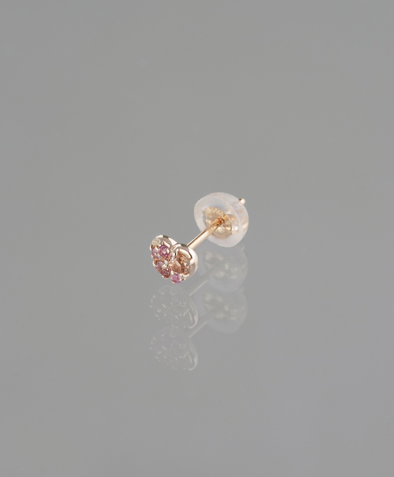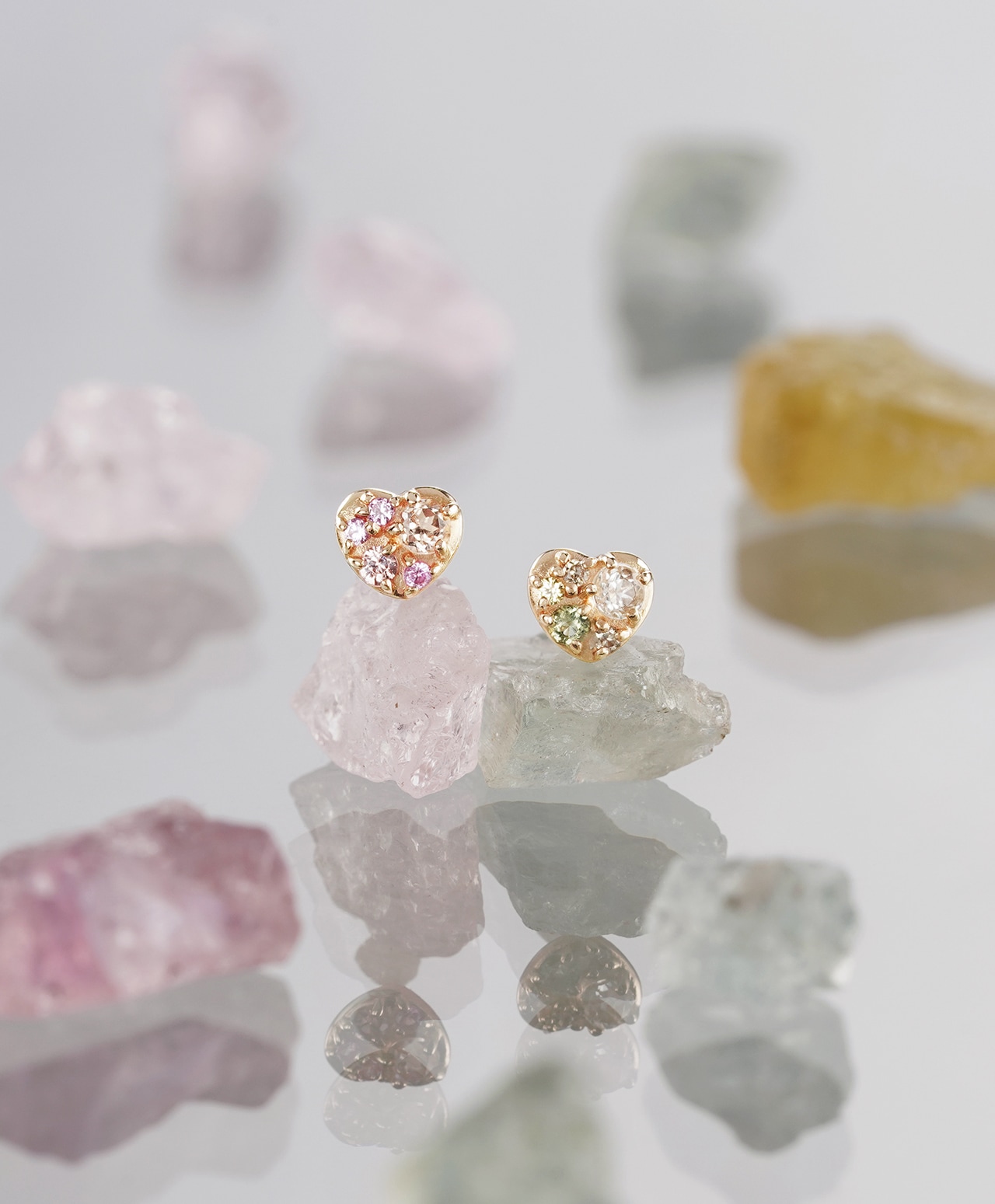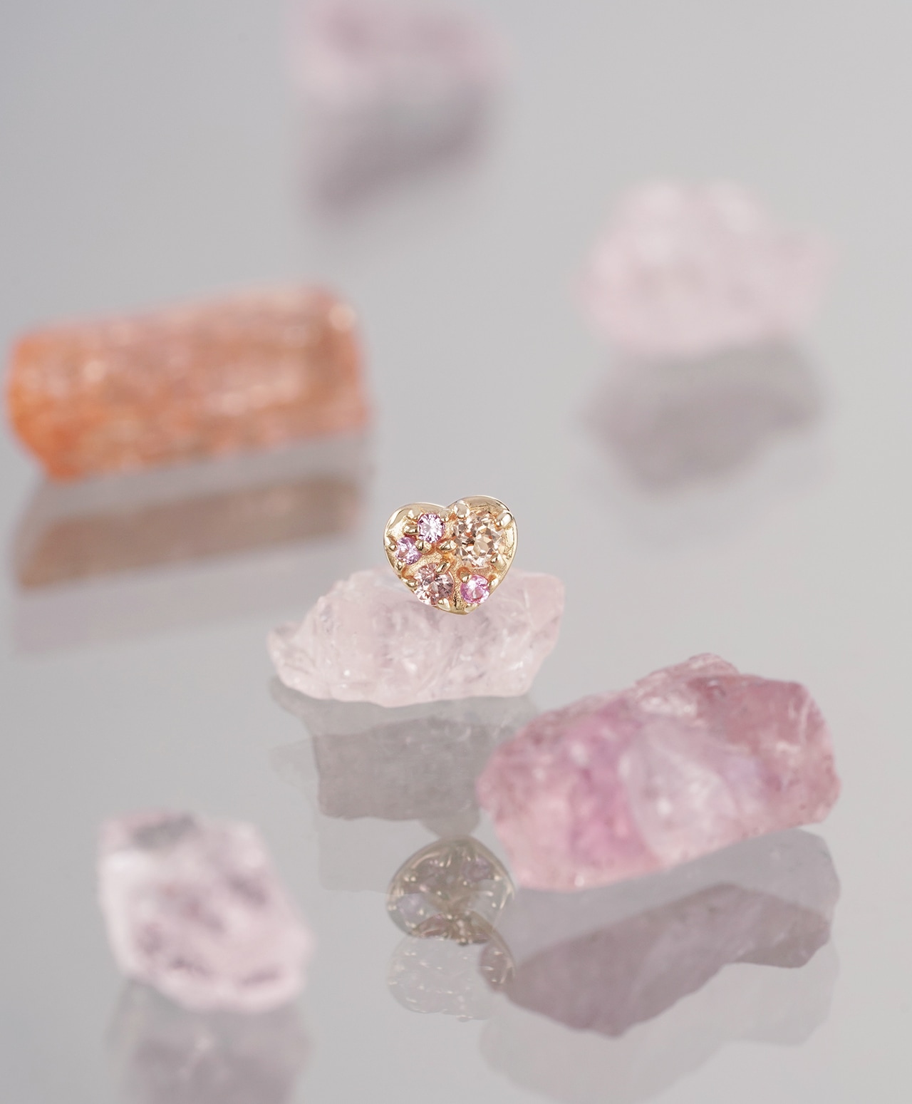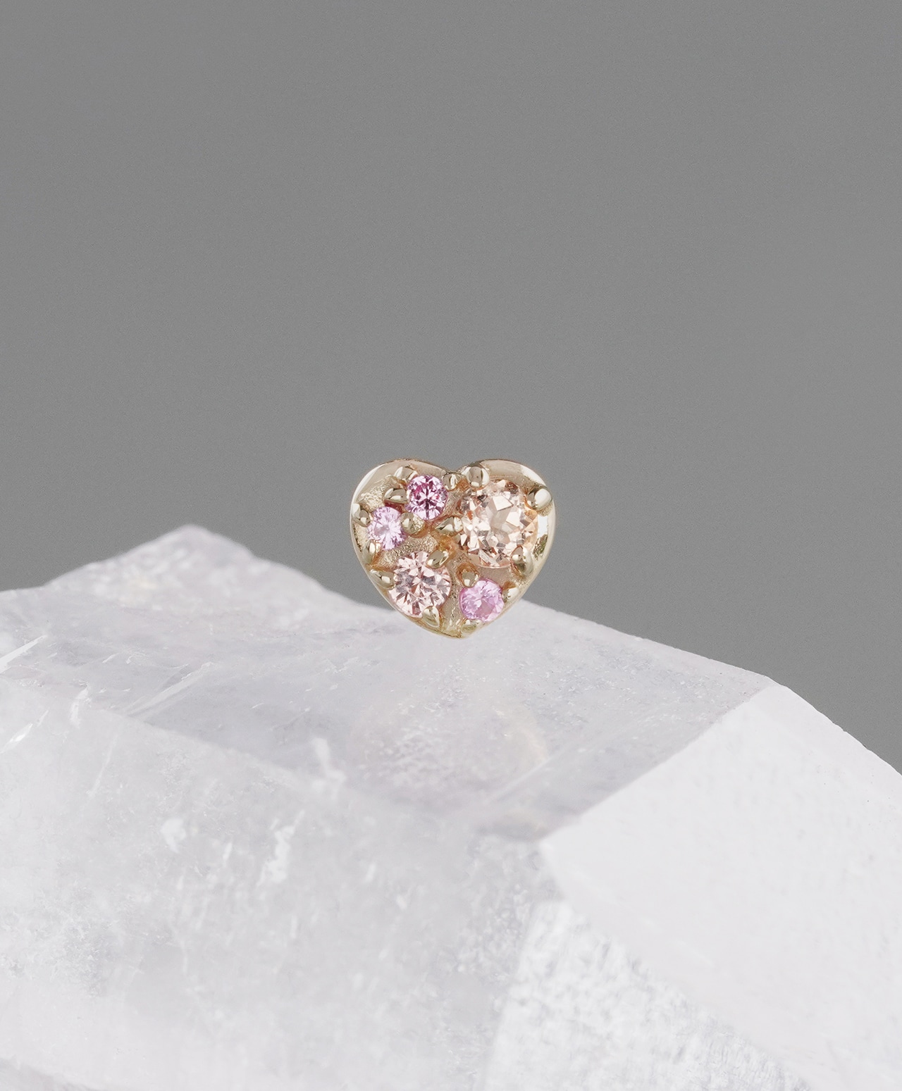 人気石たちが織りなす、ニュアンス豊かなピンクのグラデーションがやわらかにほどける、ハートシルエットのシングル(片耳)パヴェピアスです。