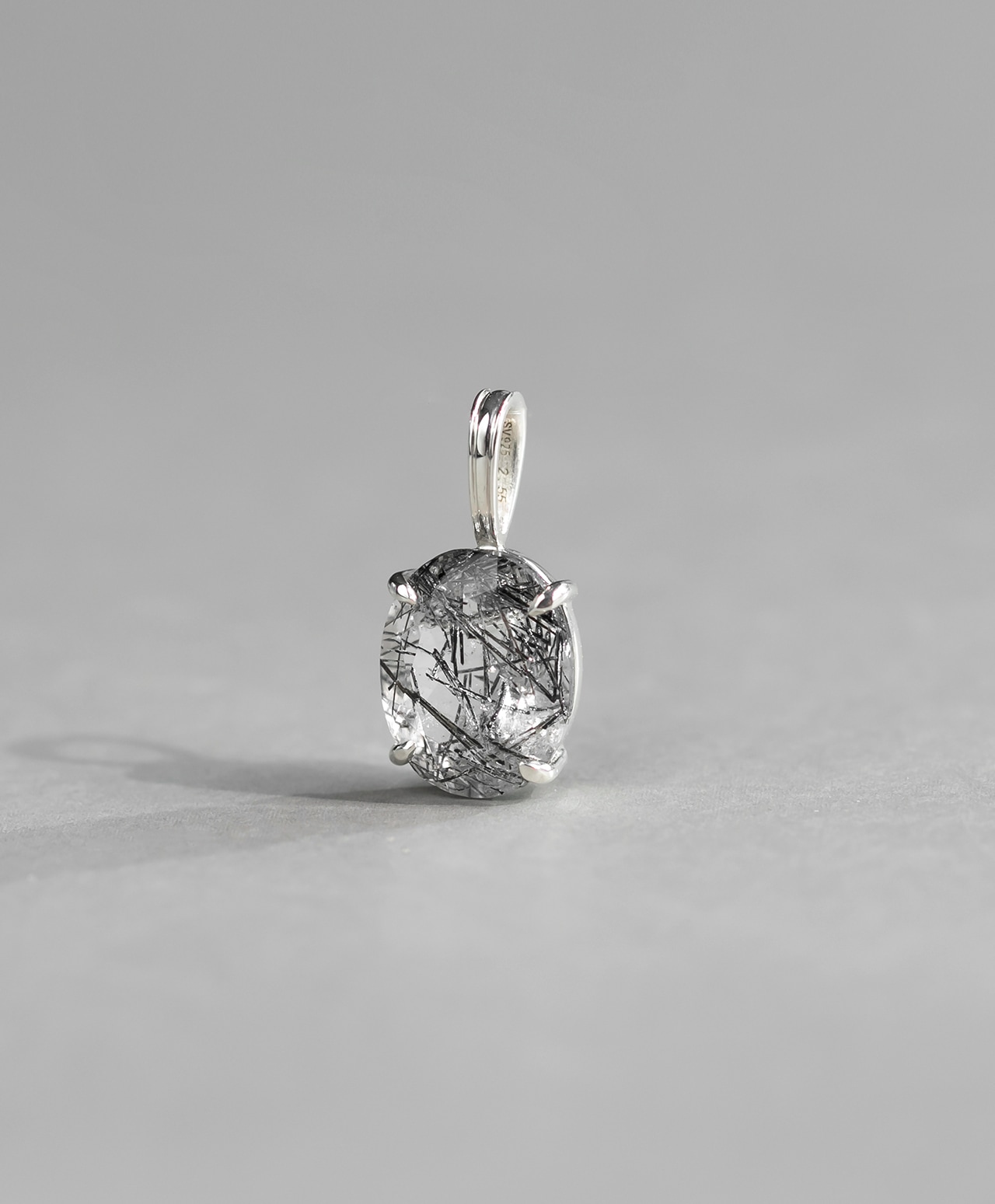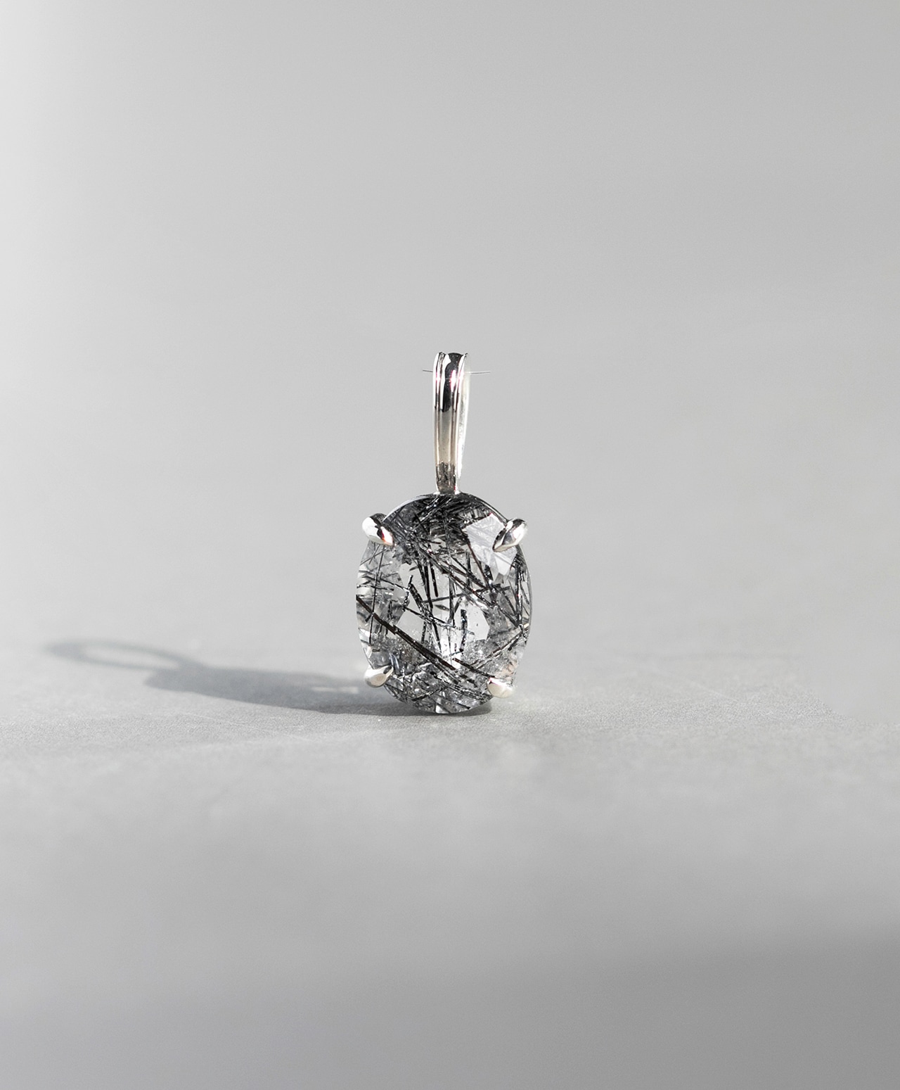 マダガスカル産ブラックトルマリン・イン・クォーツを、1点もののチャームにしました。