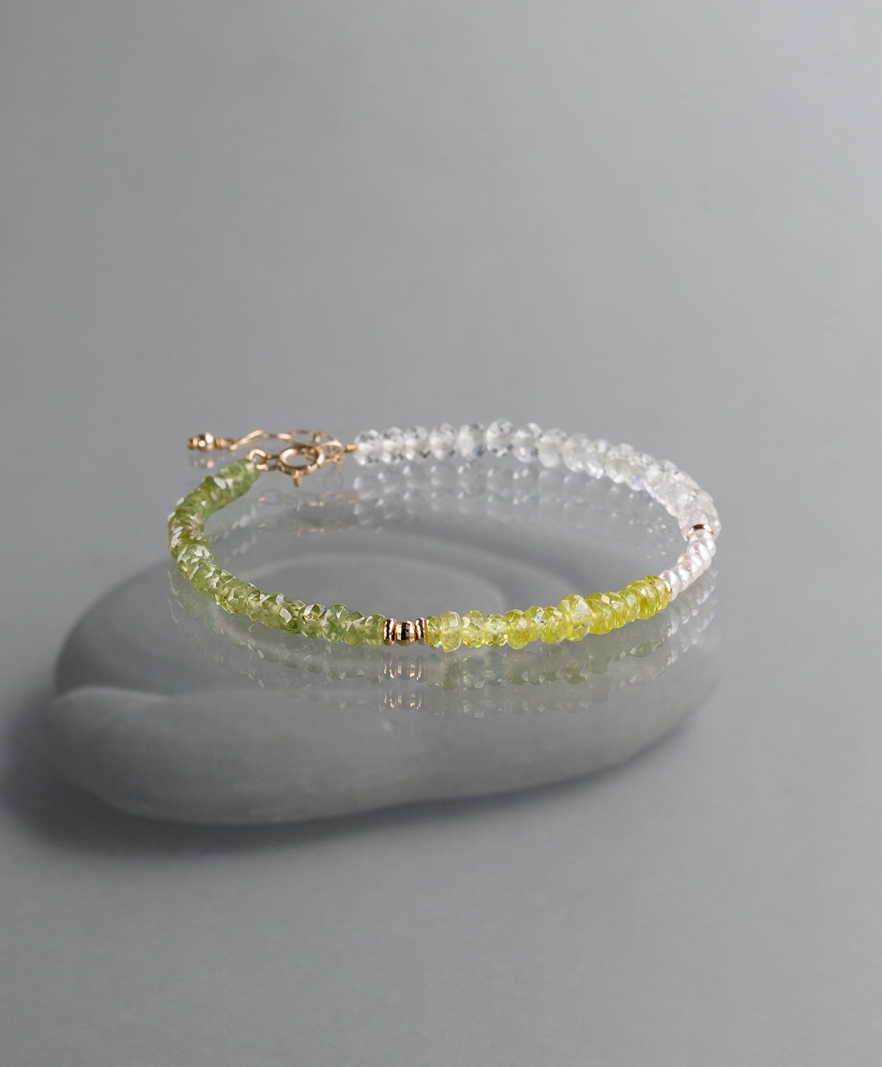 色合いの異なる2種のスフェーンを贅沢に組み合わせ、繊細な美しさを湛えたブレスレットに仕立てました。