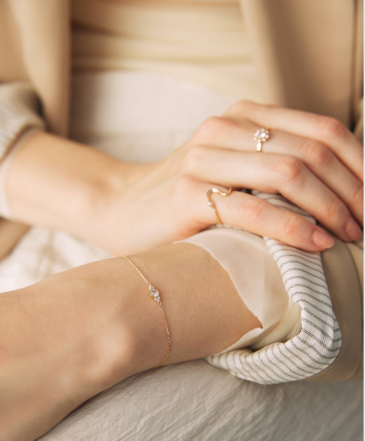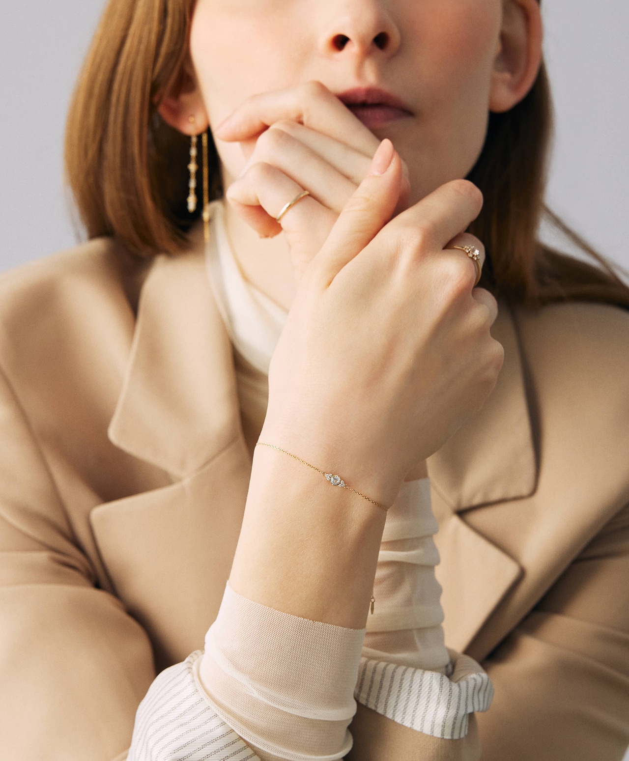 また、こちらのブレスレットはスライド仕様により長さの調整が自在で、手首に自然に沿う快適な着け心地になっています。日常の装いにはさりげない品格を、特別なひとときには内なる光を添え、あなたをサポートしてくれるでしょう。