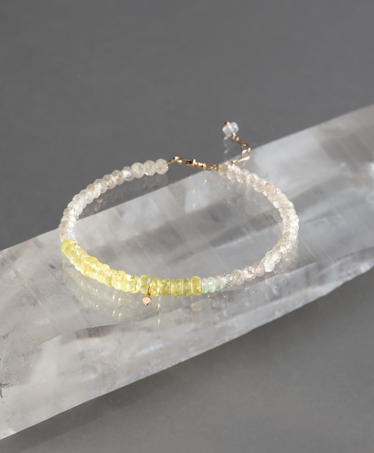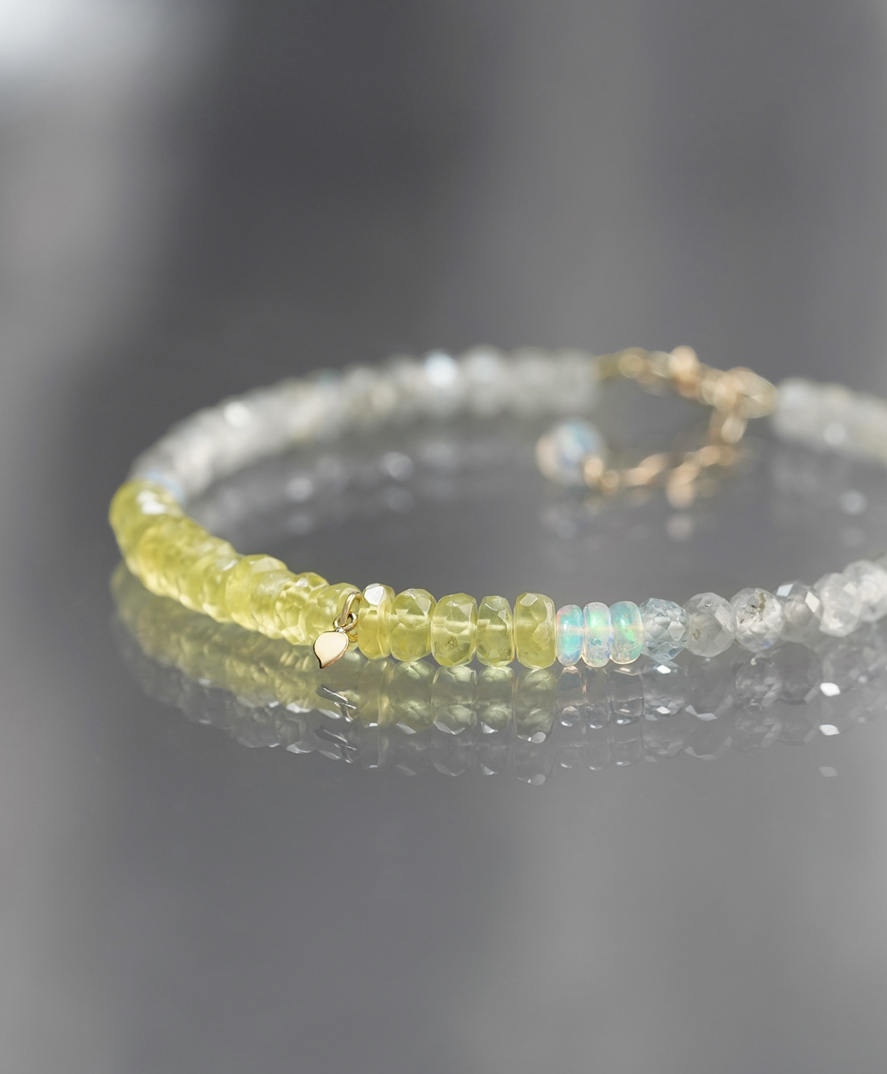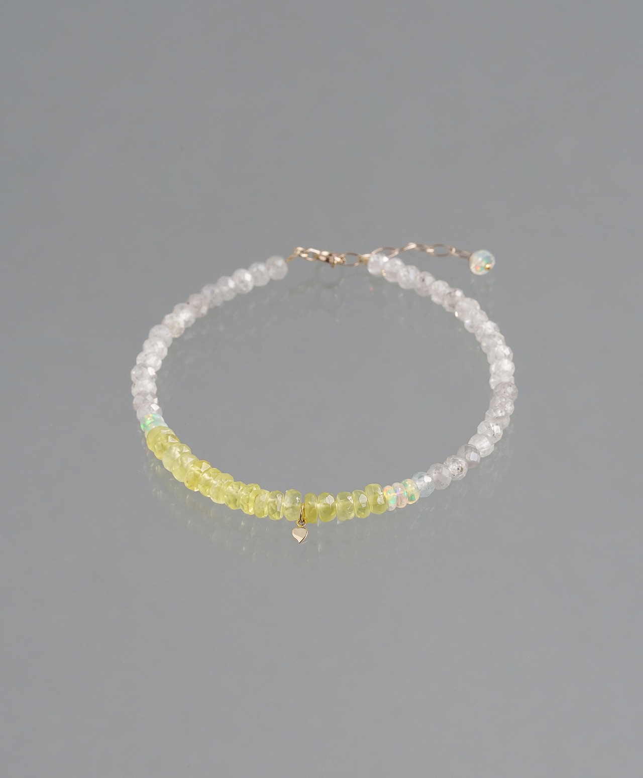 Golden prehnite × Water opal × Gray zircon bracelet /ゴールデンプレナイト、ウォーターオパール、グレージルコン