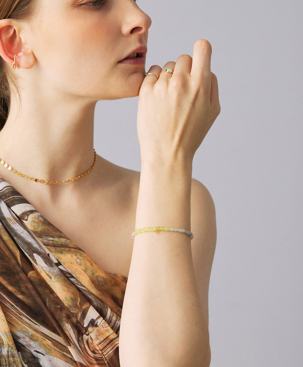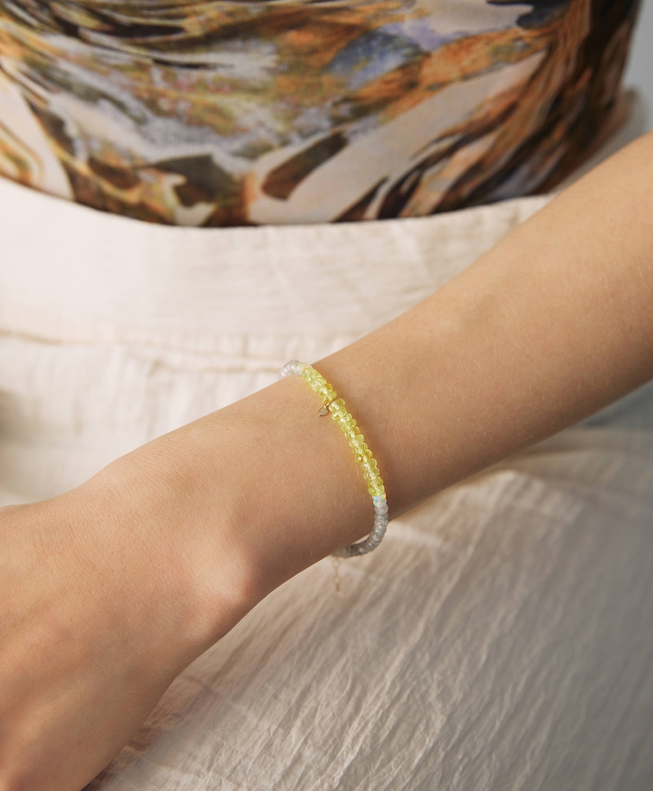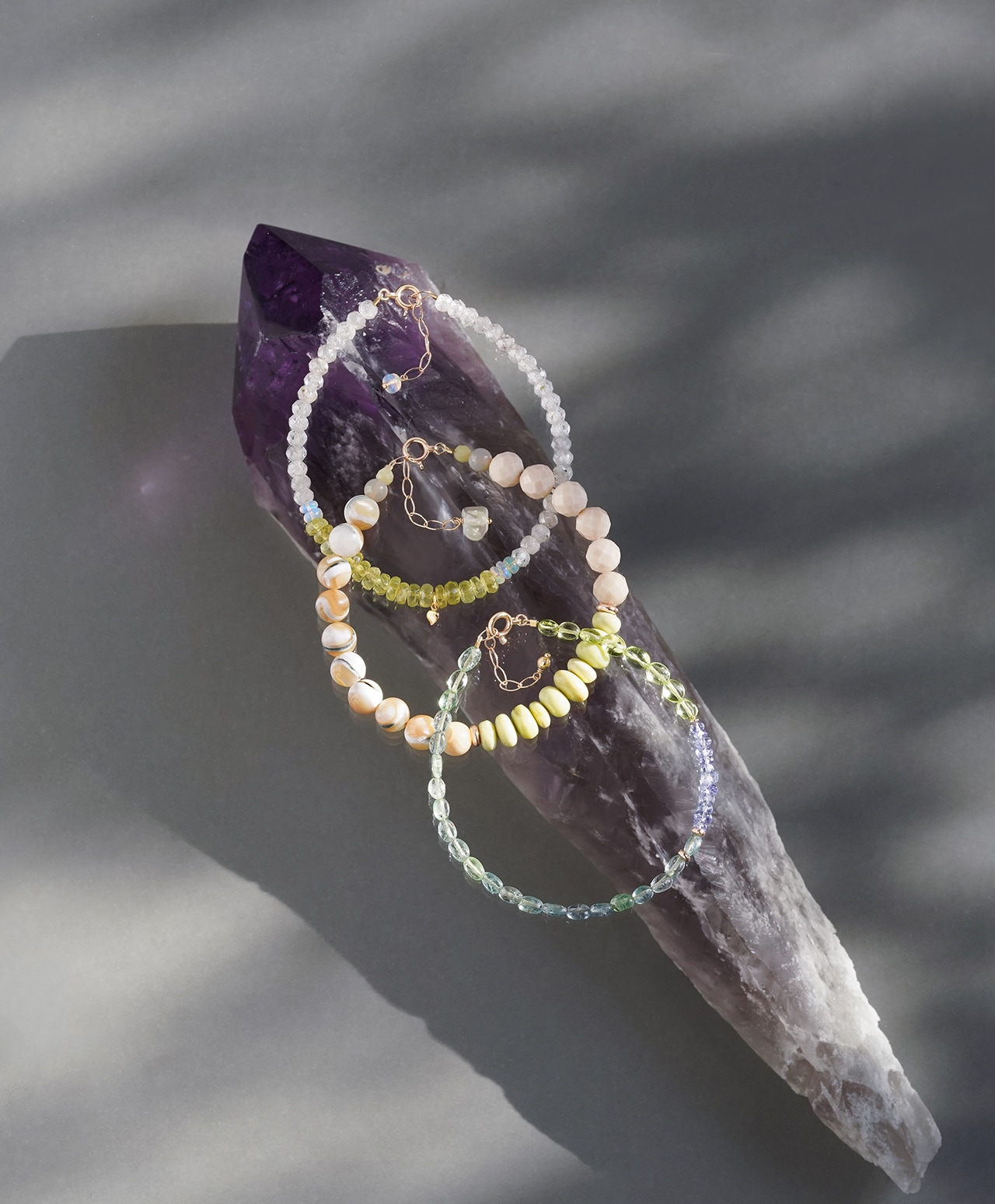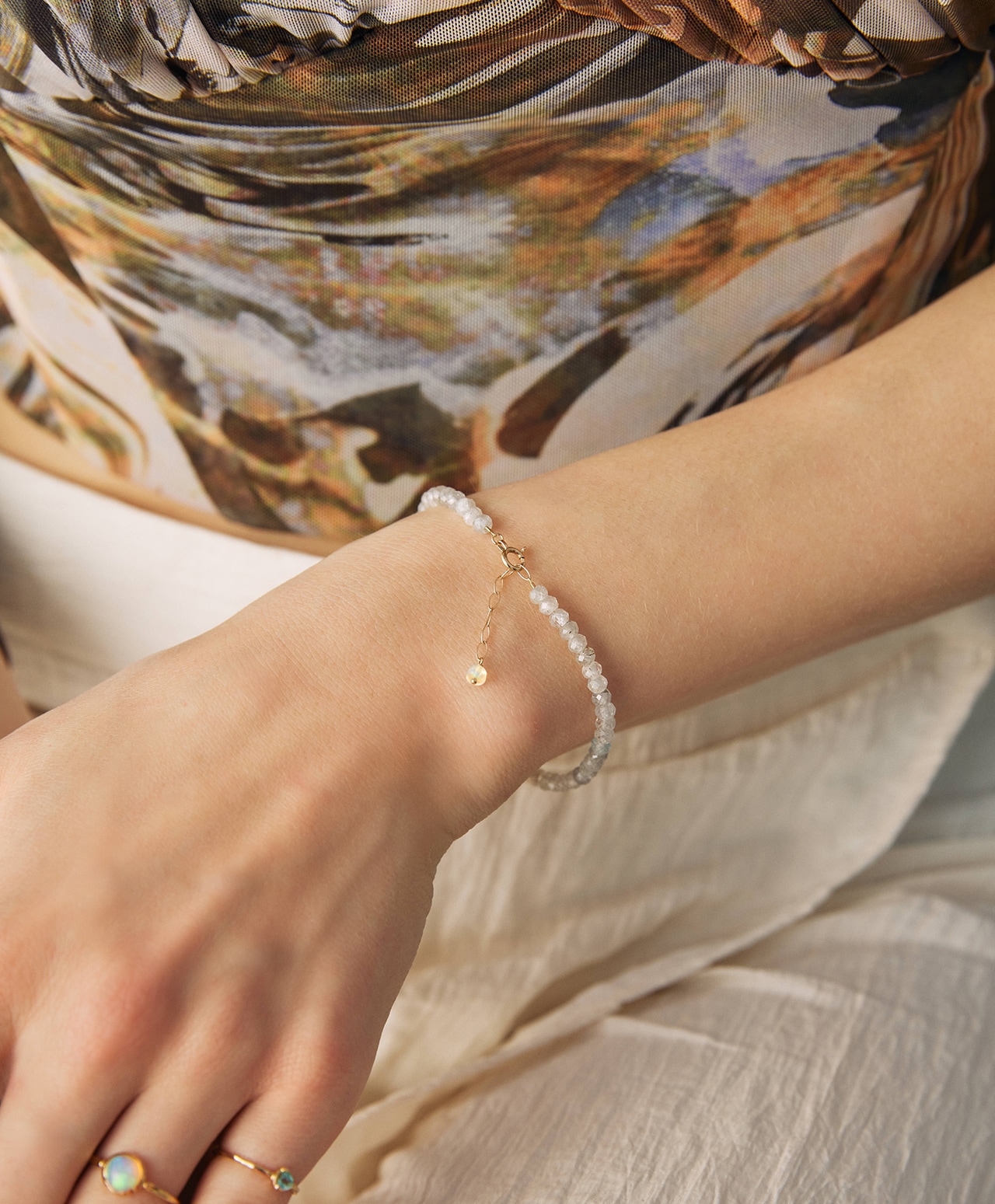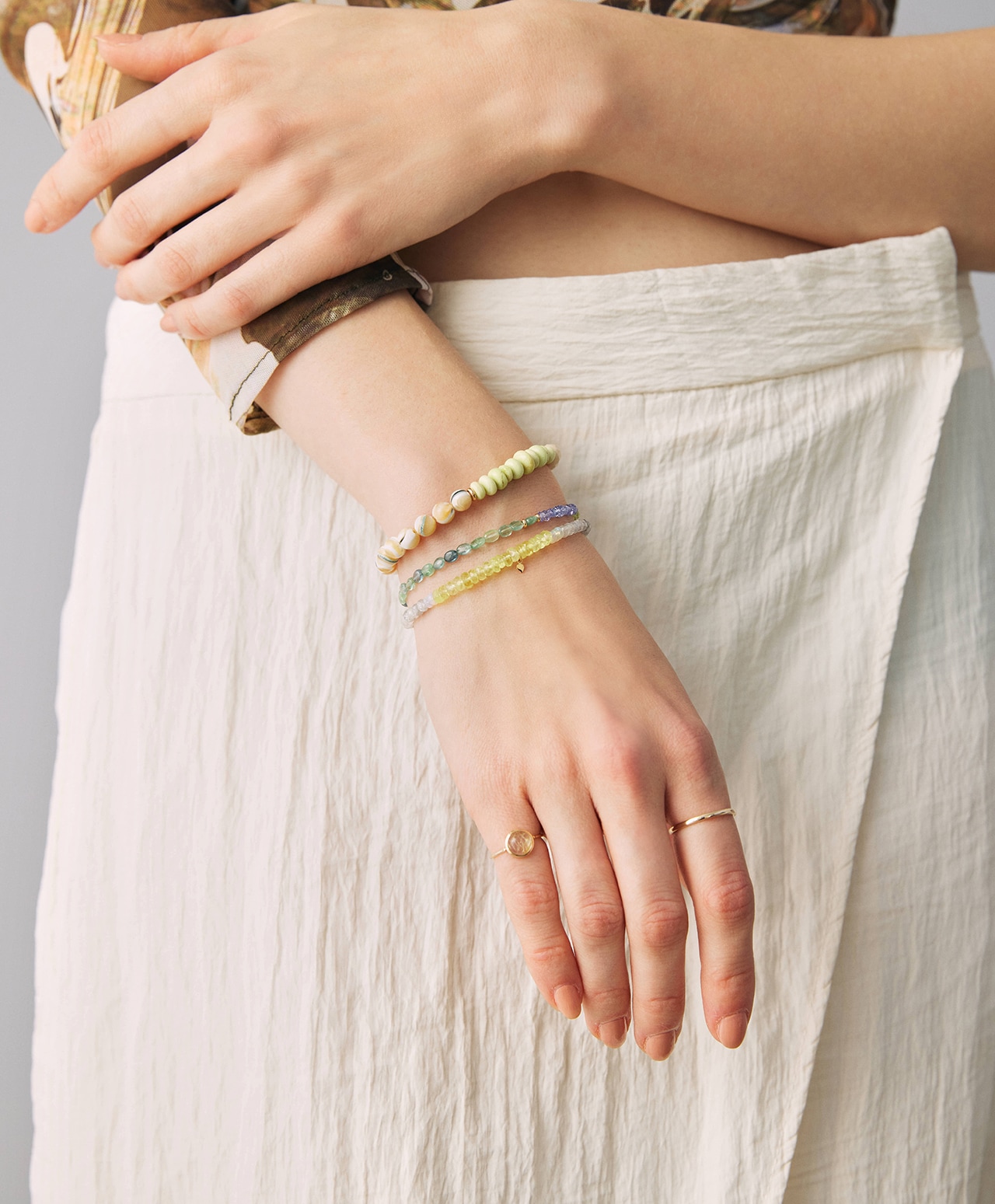 色そのものではなく、光の重なりを身に纏うようなブレスレットです。