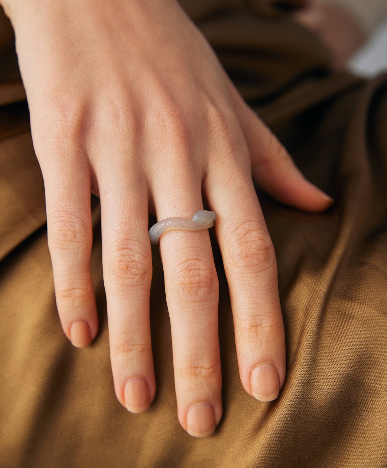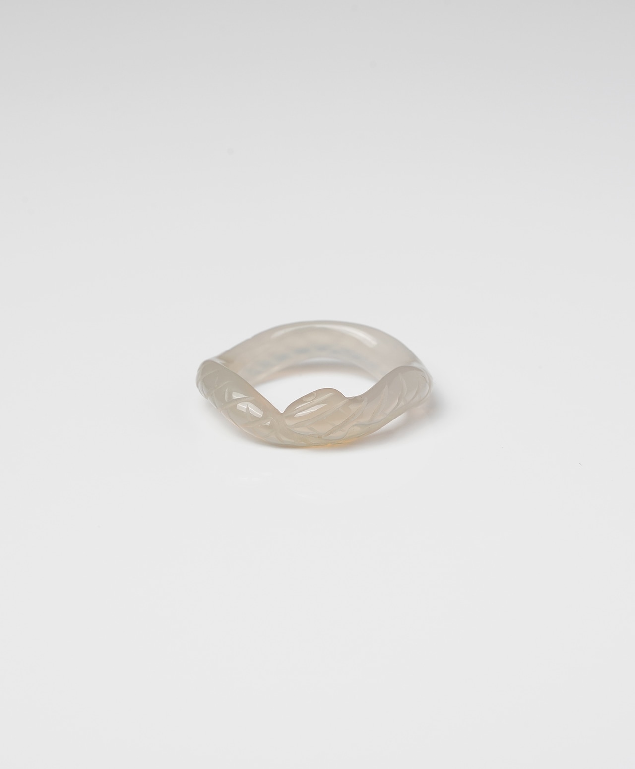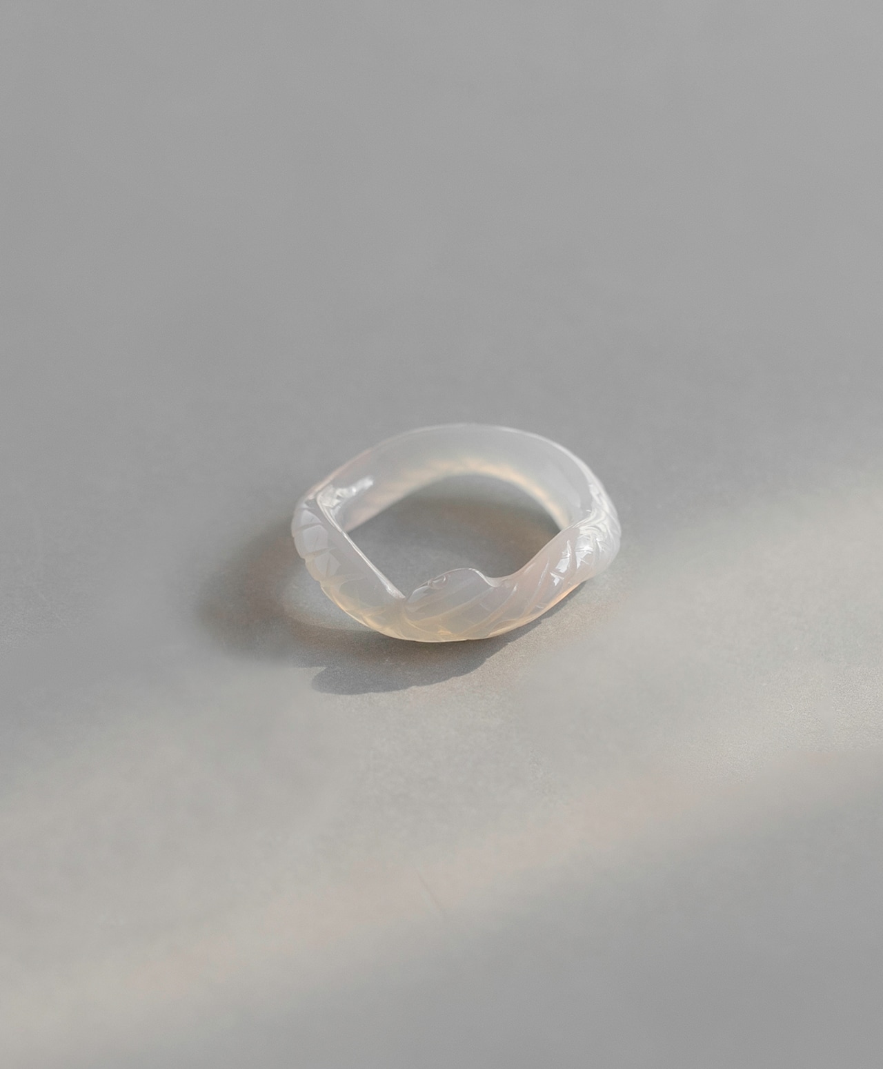 澄んだ視点と落ち着きが、柔らかな自信と調和をもたらす White × gray chalcedony snake ring /ホワイト×グレーカルセドニー 15.5号