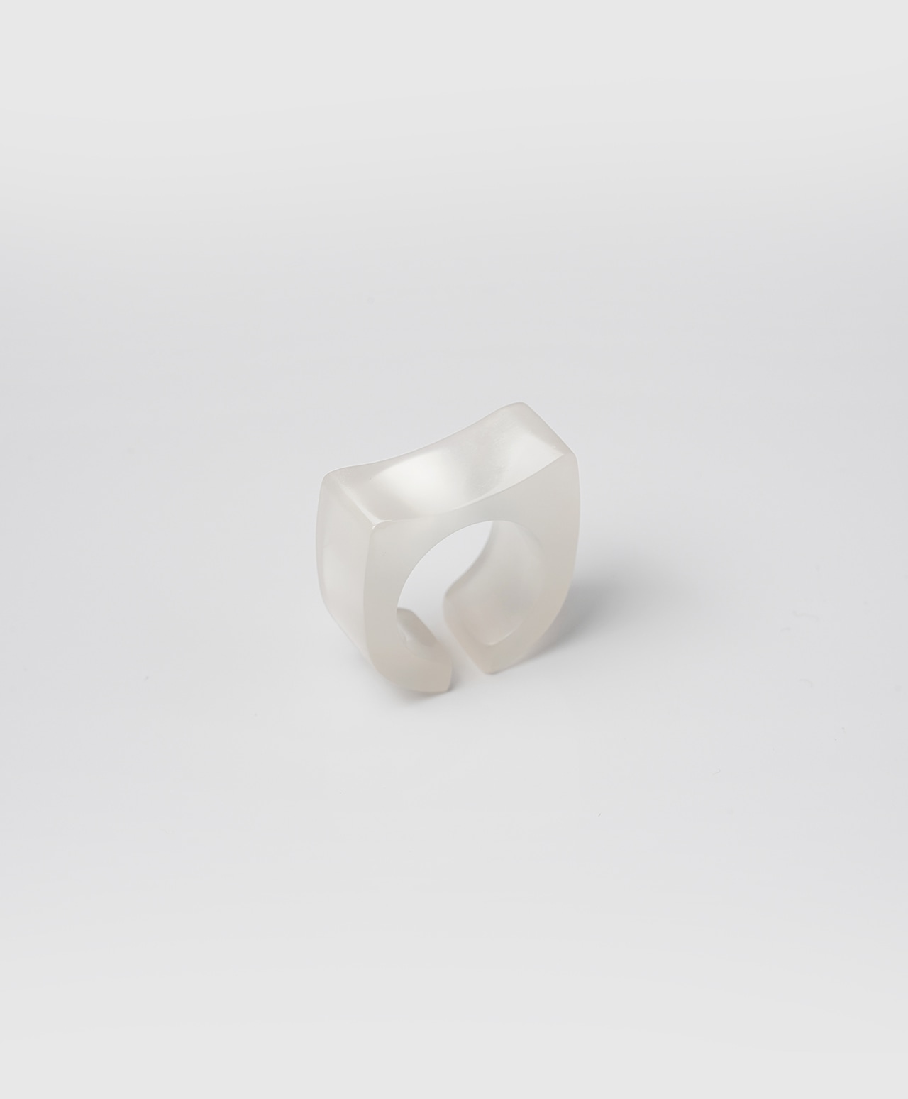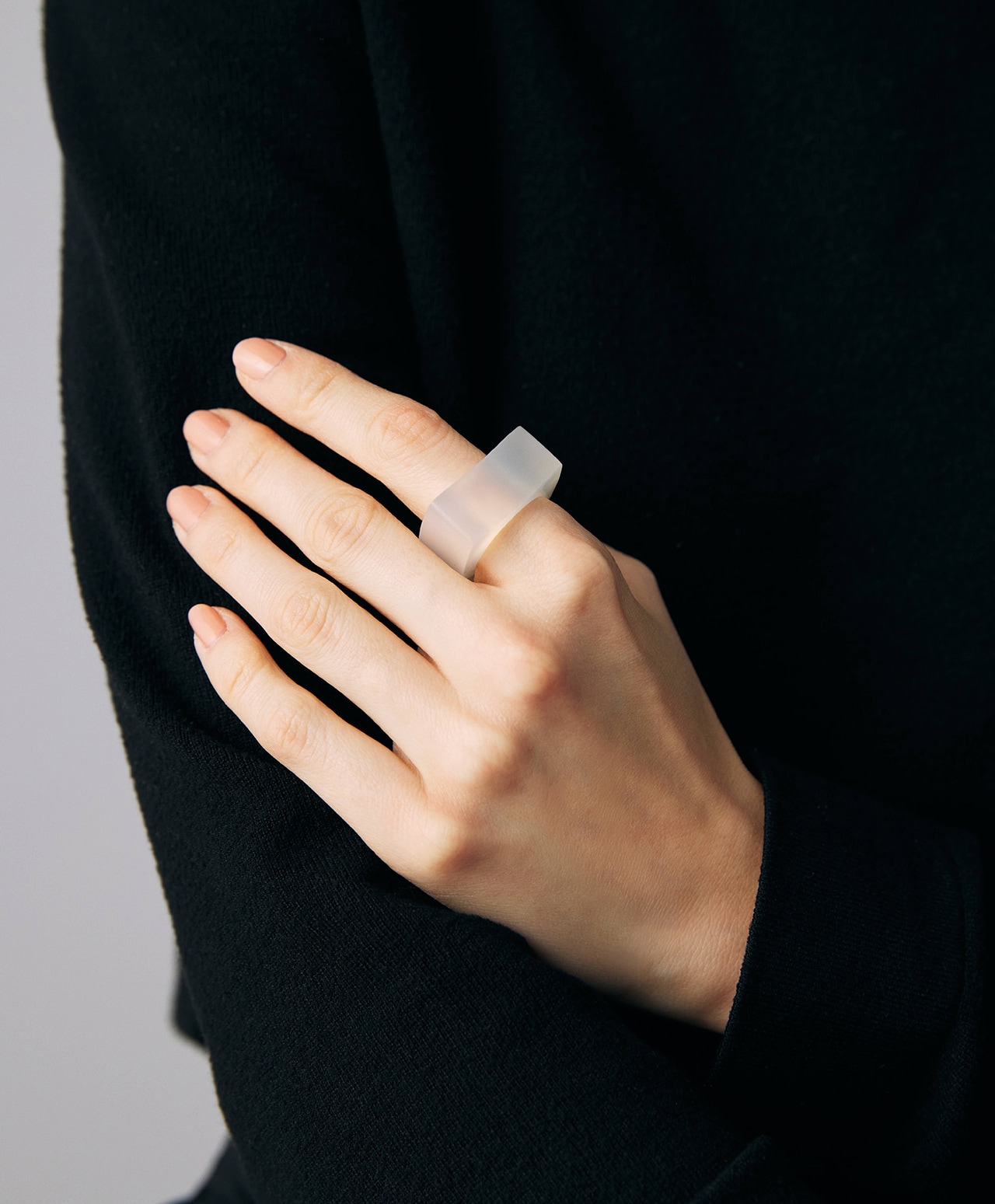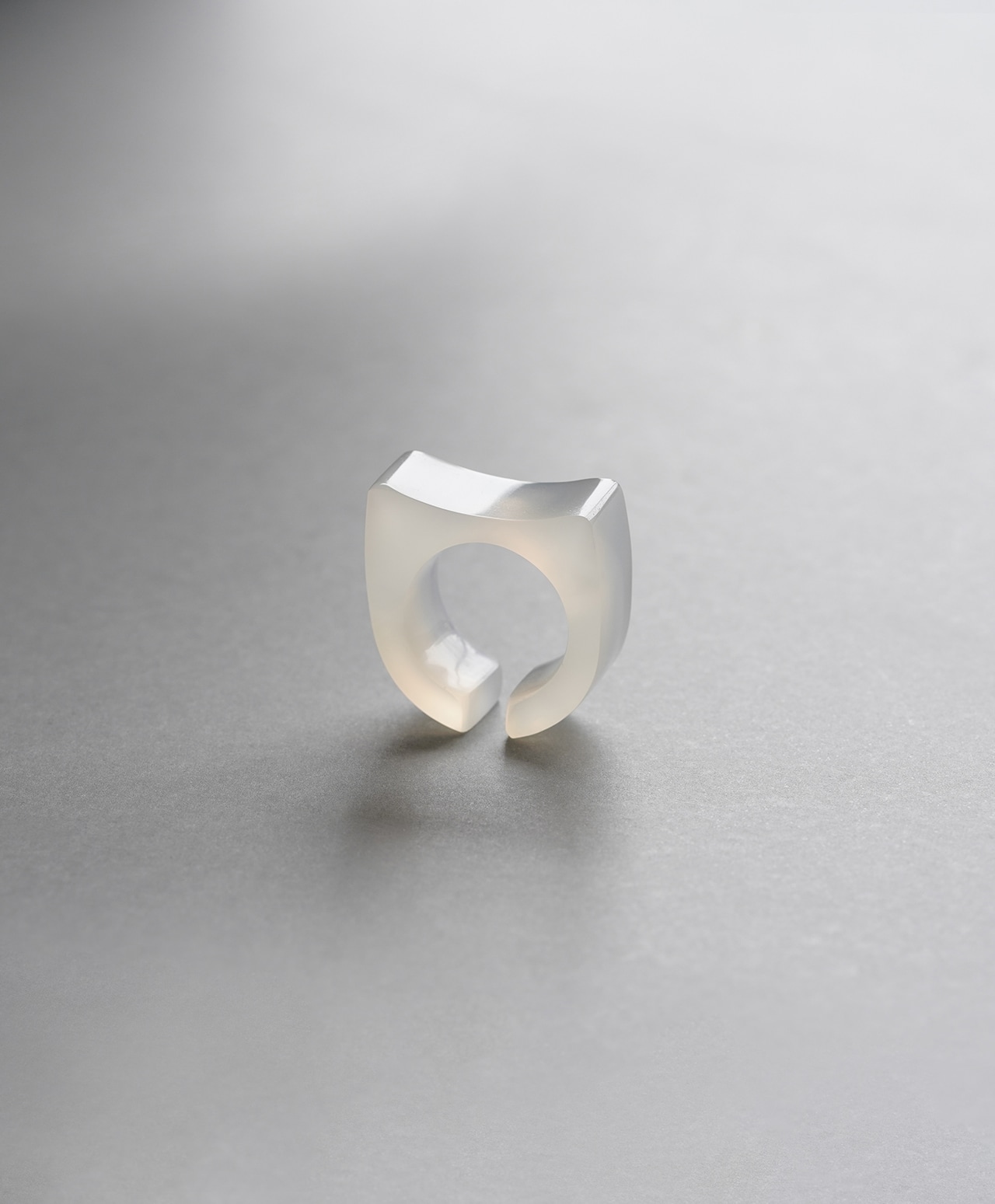 朝霧に包まれた湖面を思わせる、奥深い乳白色の透明感。しっとりとした質感と柔らかな光沢が、静謐でありながらも温かみのある美しさを放ちます。洗練された感性を浮かび上がらせるデザインが、日常に上品な癒しをもたらすリングです。