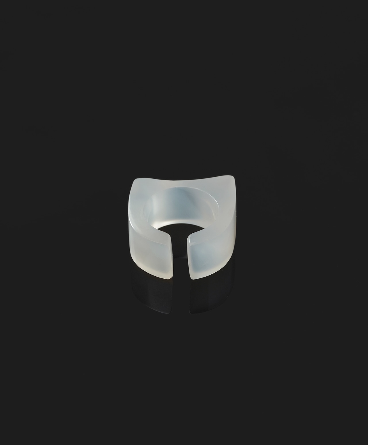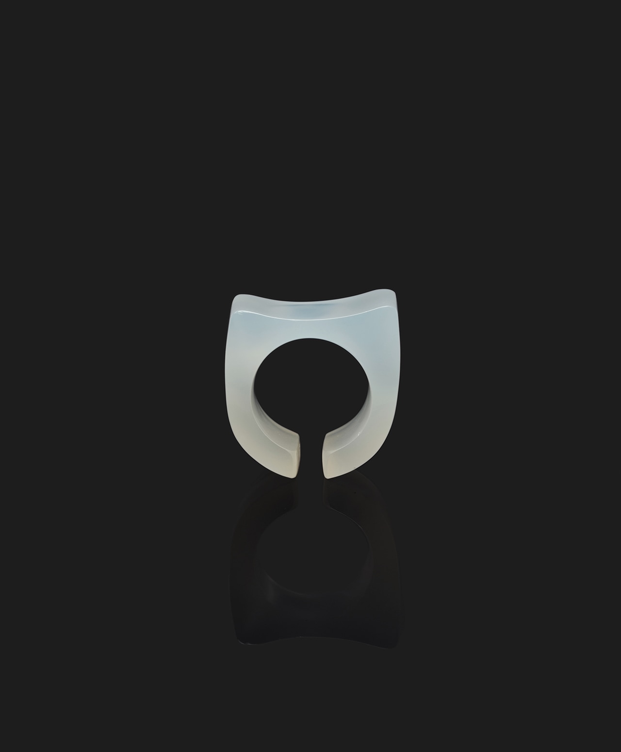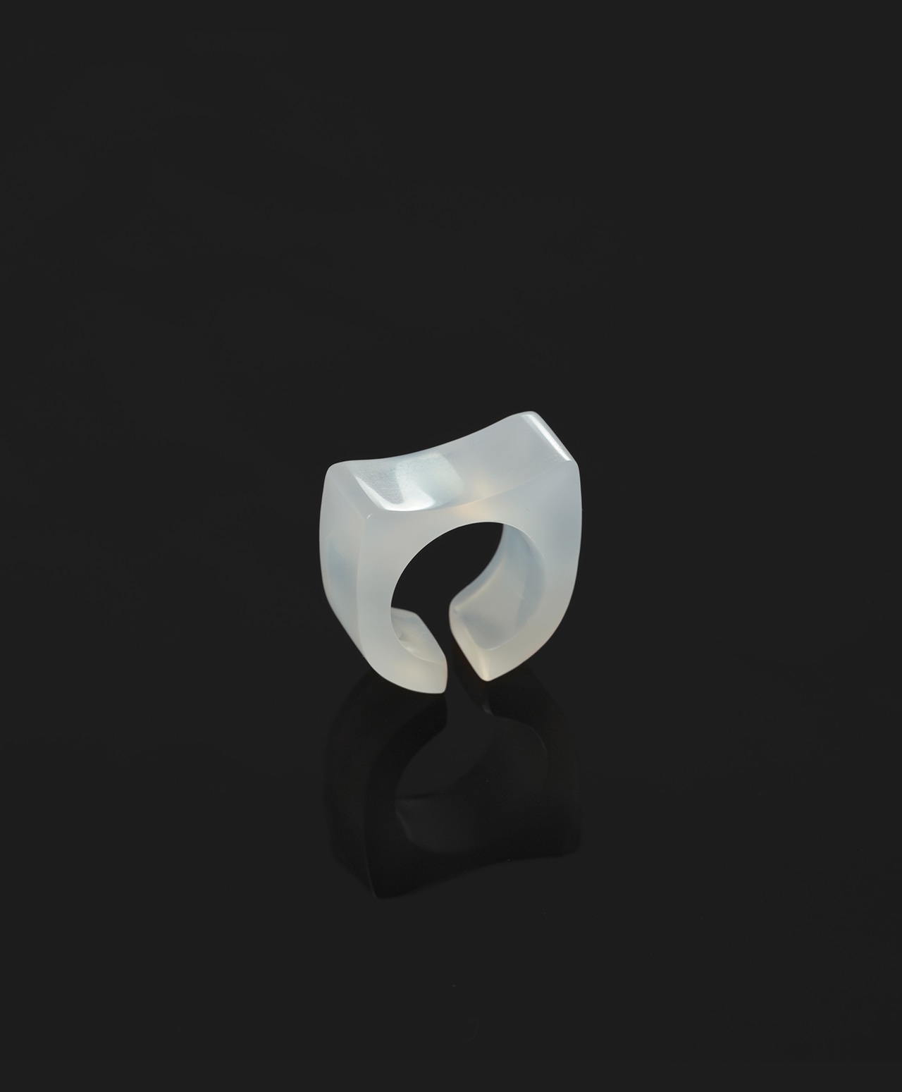朝霧に包まれた湖面を思わせる、奥深い乳白色の透明感。しっとりとした質感と柔らかな光沢が、静謐でありながらも温かみのある美しさを放ちます。洗練された感性を浮かび上がらせるデザインが、日常に上品な癒しをもたらすリングです。