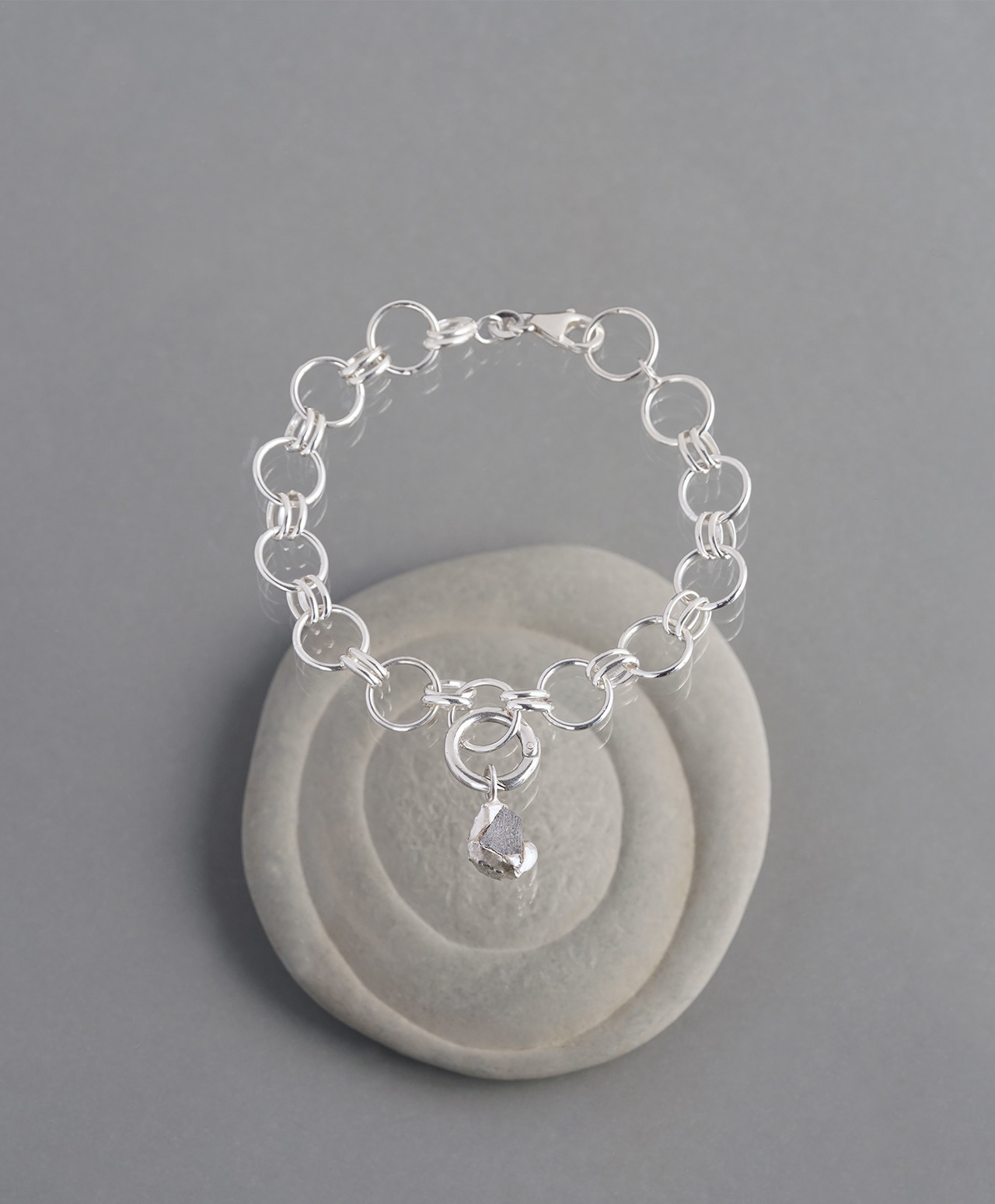 そんなムオニナルスタ隕石をチャームとして仕立て、シルバーの存在感のあるチェーンと組み合わせました。