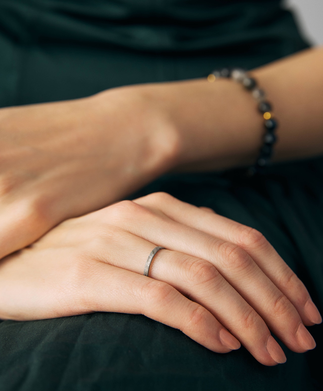 過度な装飾を施さないことで、素材そのものが持つ重みと構造美が、指先で静かに際立つデザインに仕上げました。
