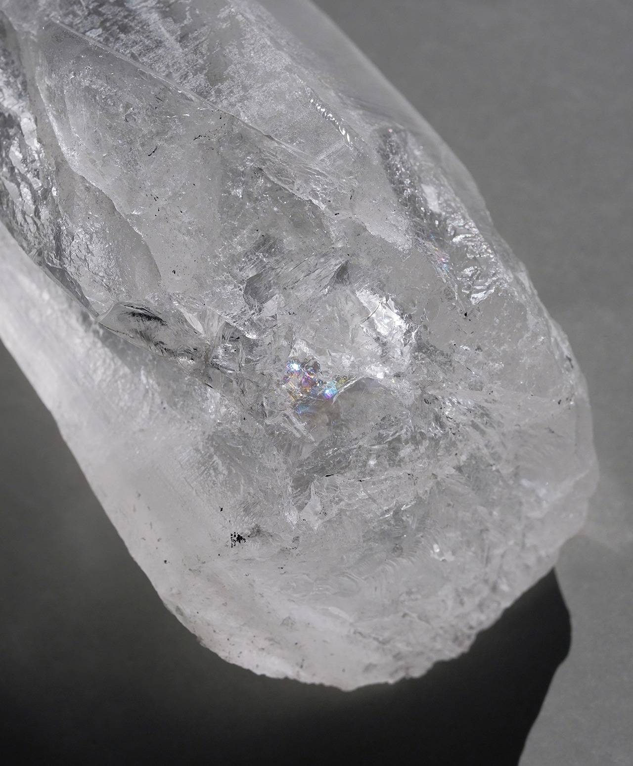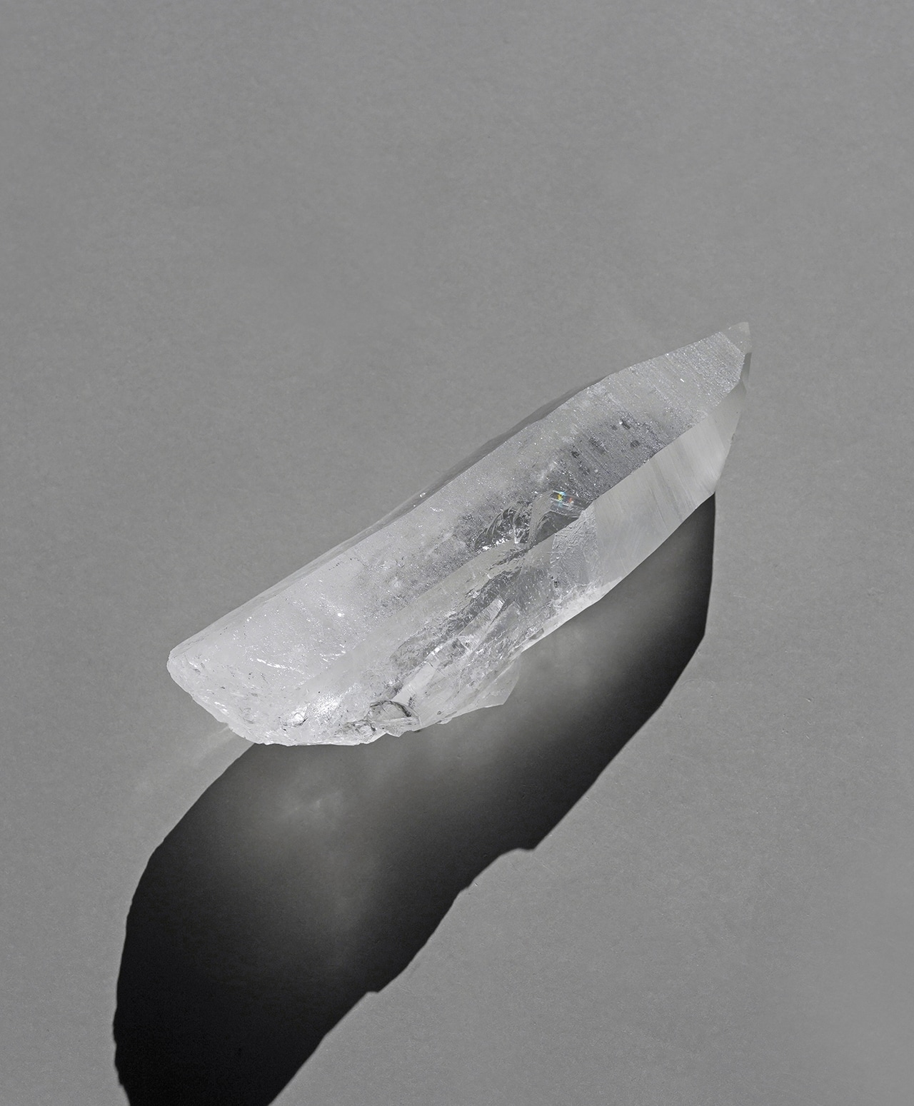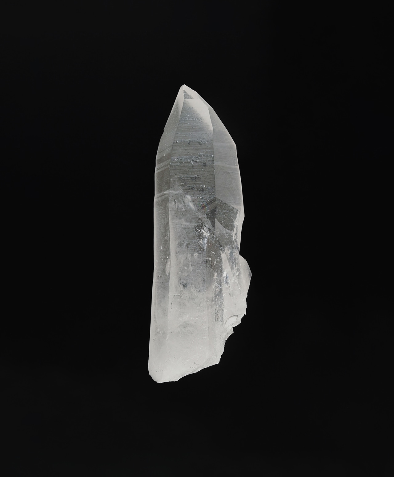 こちらは、氷柱のような清浄な透明感を湛えるレムリアンシードクォーツ。側面には、古代レムリア文明の叡智が記録されていると言われる条線(レムリアンリッジ)が刻まれ、まるで祈りの塔のような神聖な佇まいを見せています。