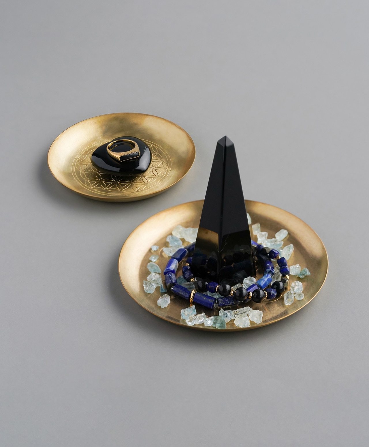 瞑想やヒーリングの際には、身体の近くや空間の中心に置くことで、意識を落ち着かせるための静かな支点となります。視線を自然に集める形状は思考を整理し、呼吸を深め、空間全体に穏やかな秩序をもたらします。