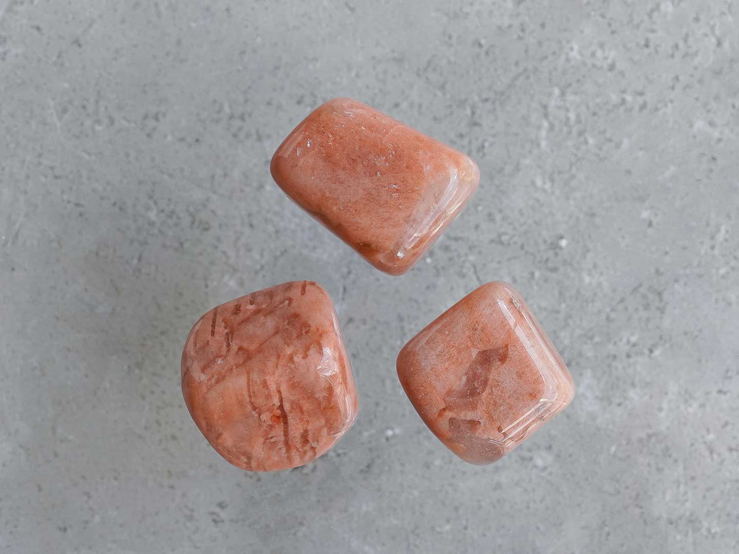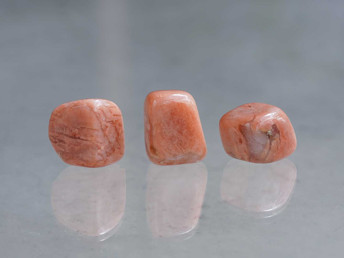 インド産ムーンストーンの、タンブル型の原石3ピースをセットにてお届けします。