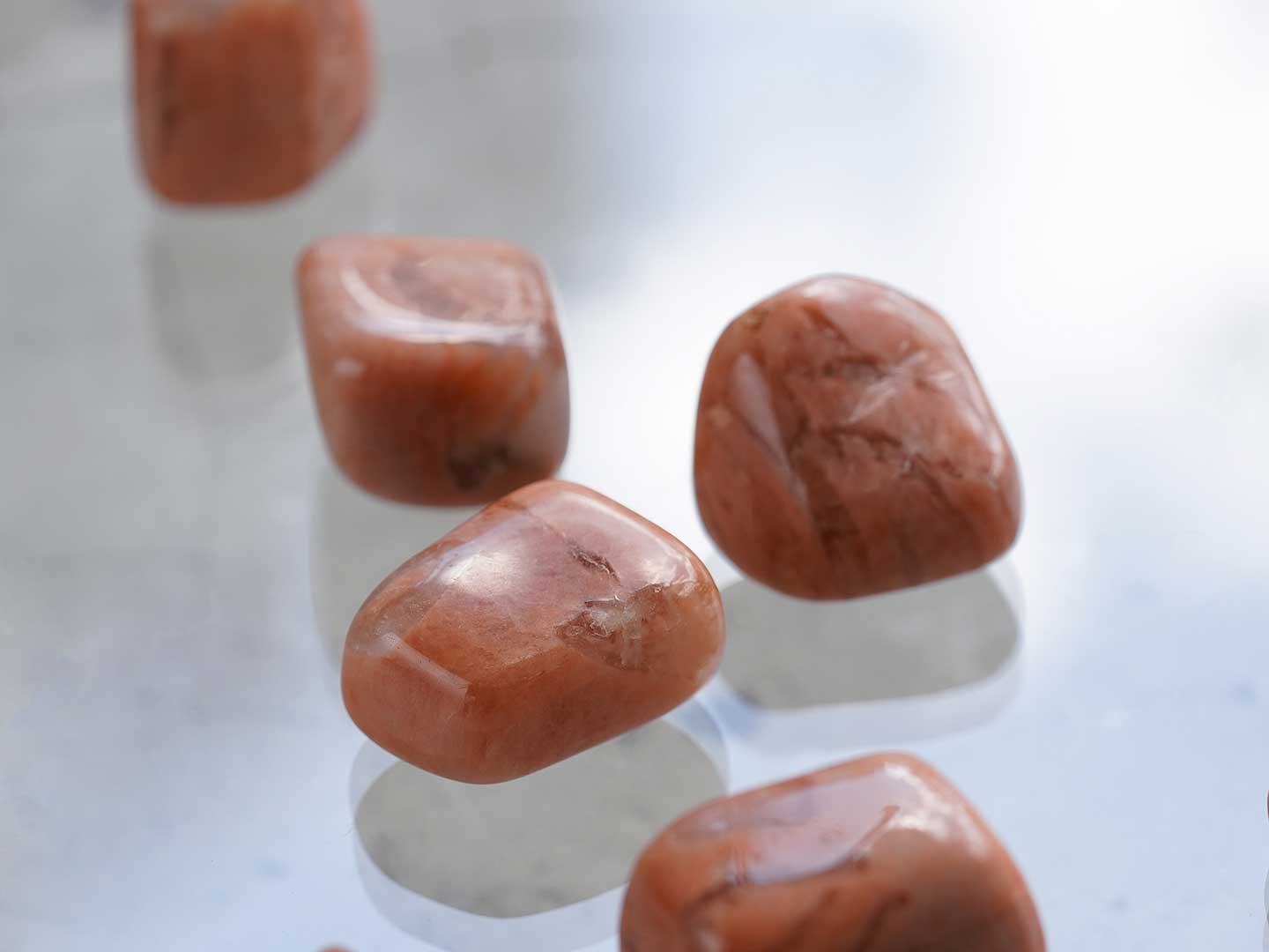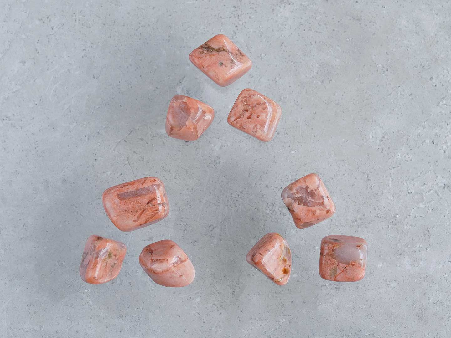 こちらはピンクとオレンジが絶妙に混ざり合った、ピーチカラーのムーンストーンです。