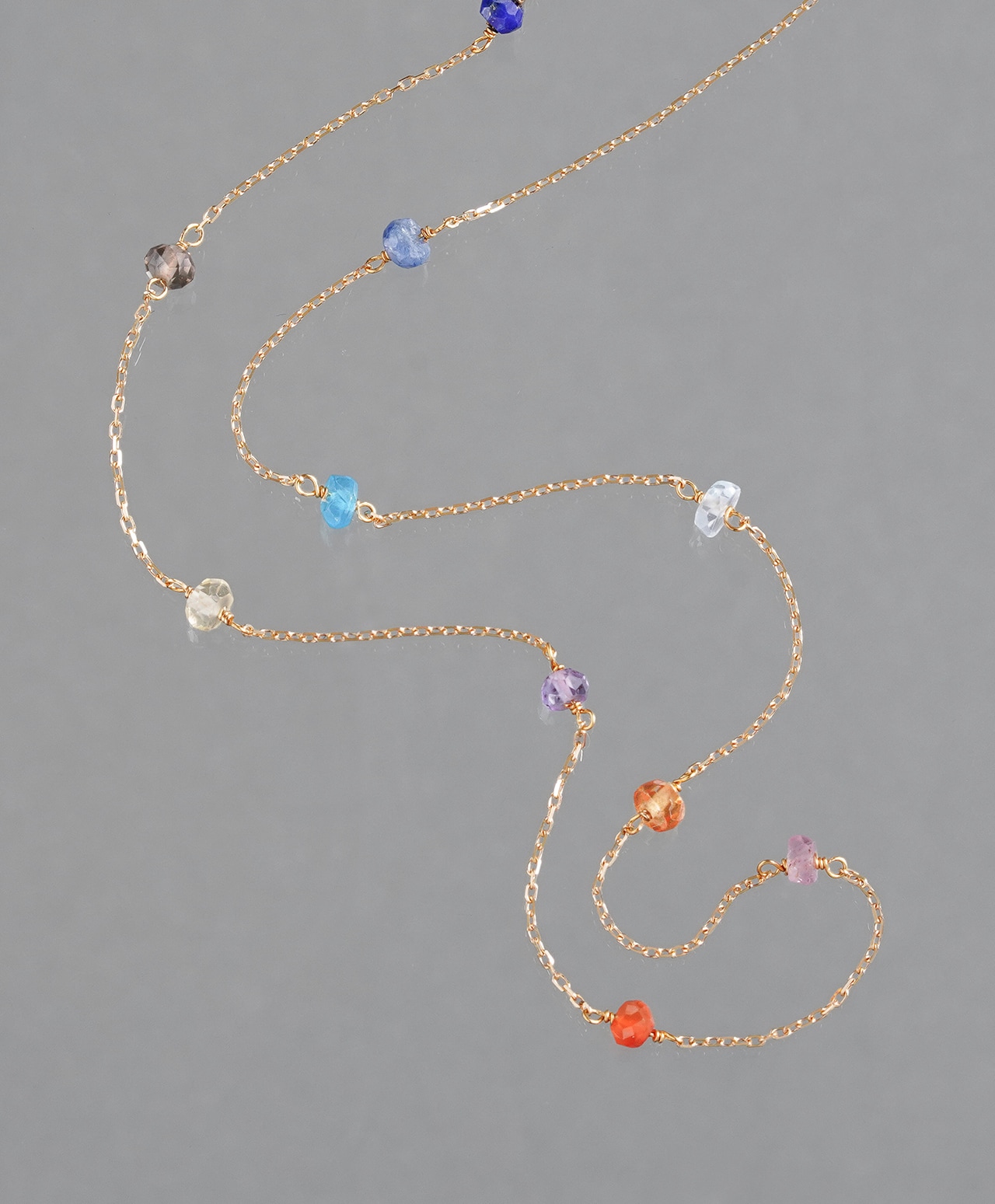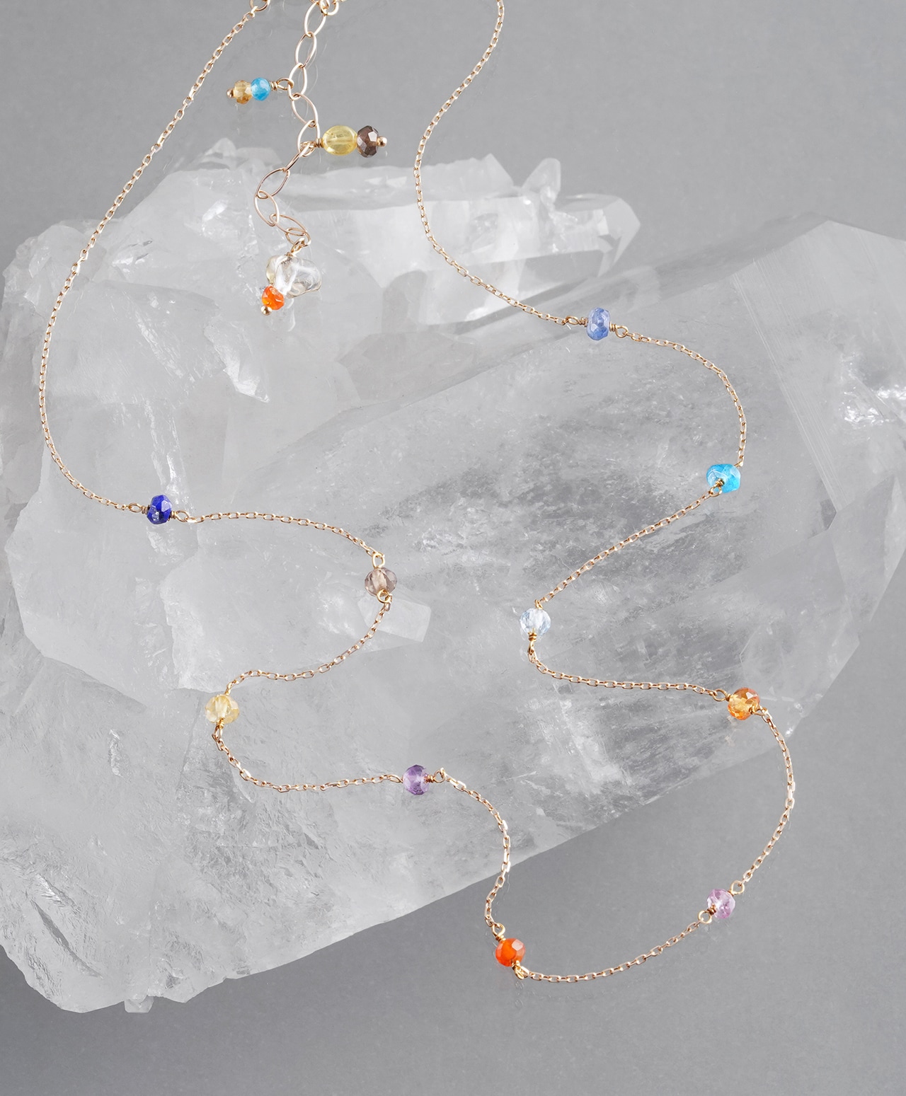 そんなチャクラのバランスをやさしくサポートするために企画されたこちらのネックレスは、シンプルなチェーンにクリスタルを一粒ずつ丁寧に繋ぎ合わせたデザイン。