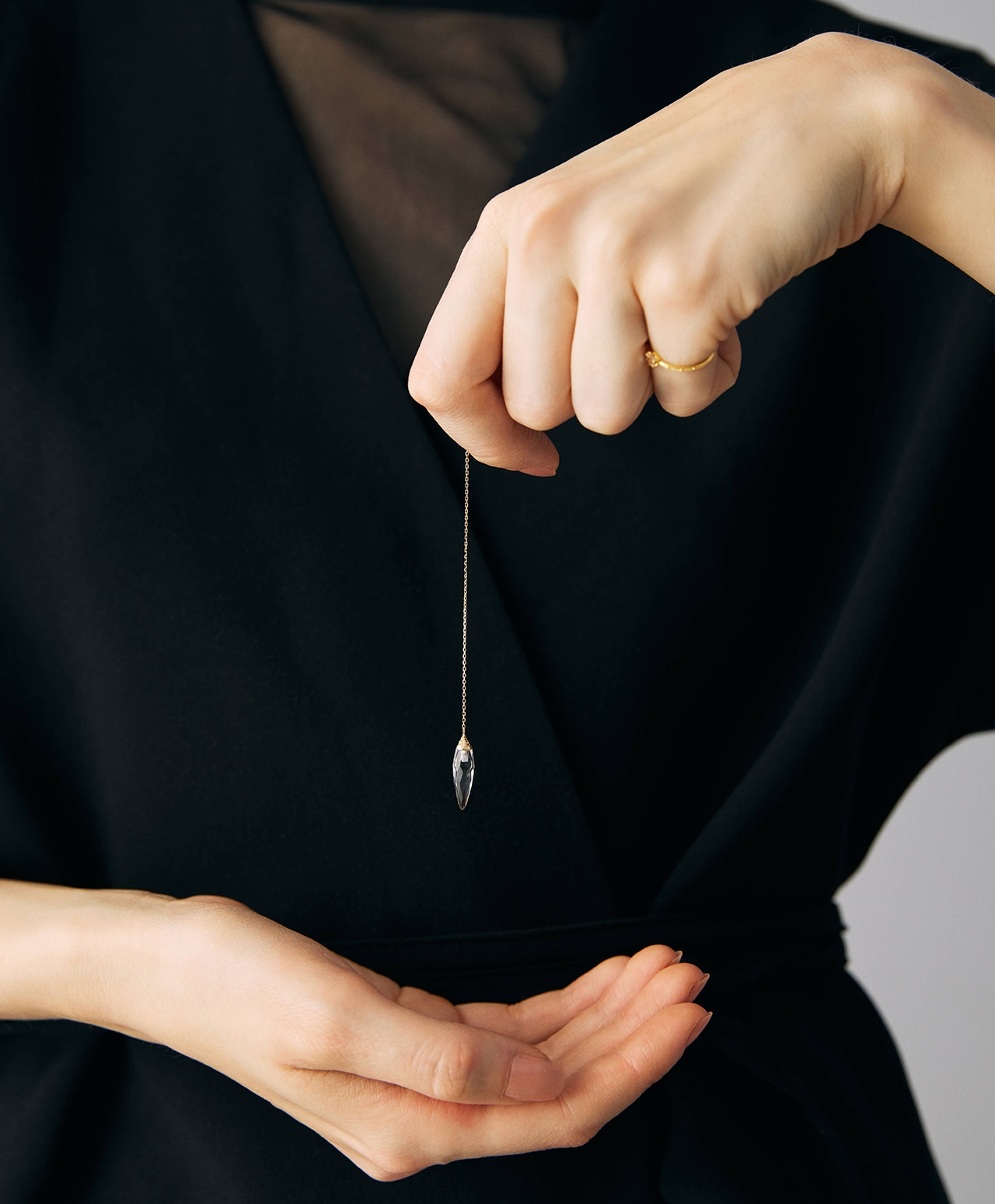 ラリエットネックレスとして纏えば、第3~第5チャクラへと光が流れ込むように、エネルギーを受け取りやすく。