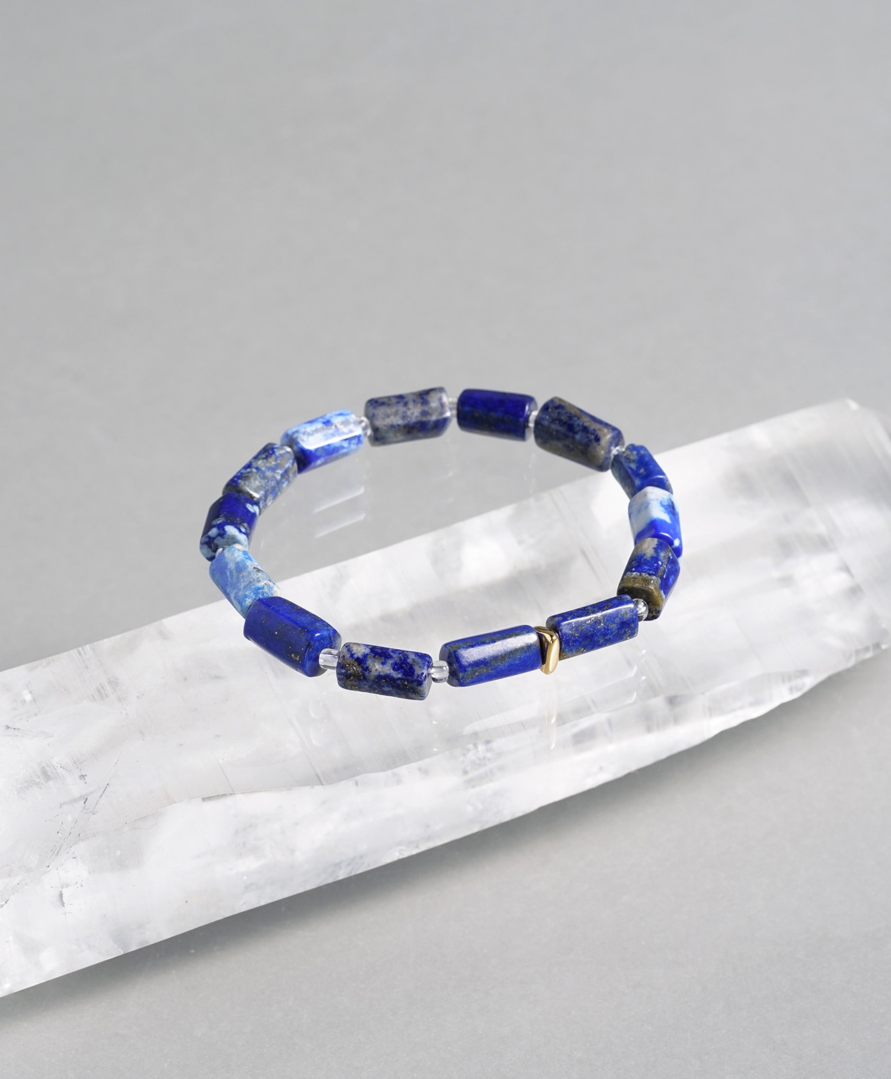 アフガニスタンの大地で育まれたラピスラズリと、澄みわたる光を抱くクォーツを組み合わせたブレスレットです。