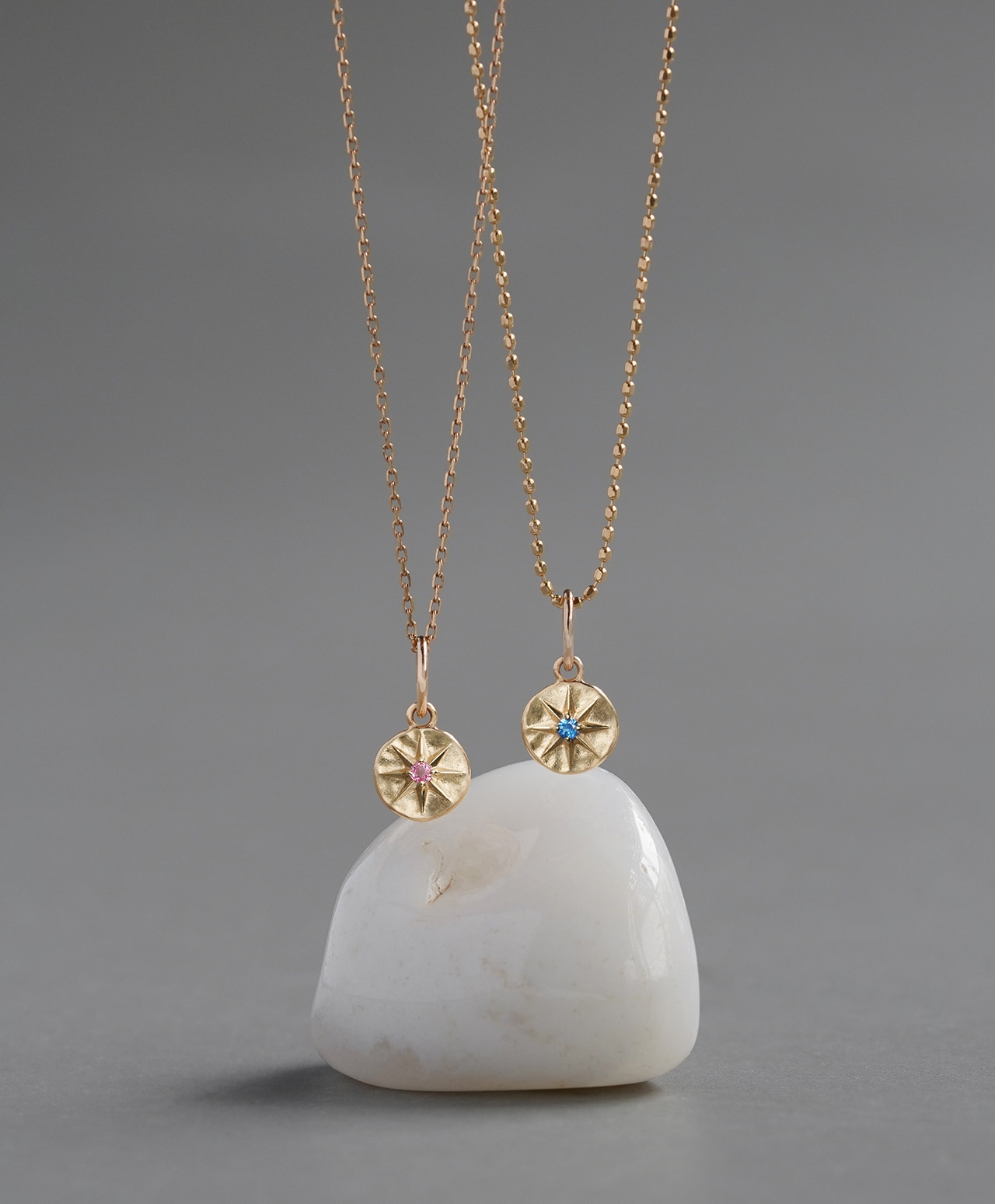 常に光を指し示すコンパスを象った、Hariqua(ハリックァ)のロゴマーク。その意匠を静かに刻み込んだ、ミャンマー産ピンクスピネルのリバーシブルチャームです。