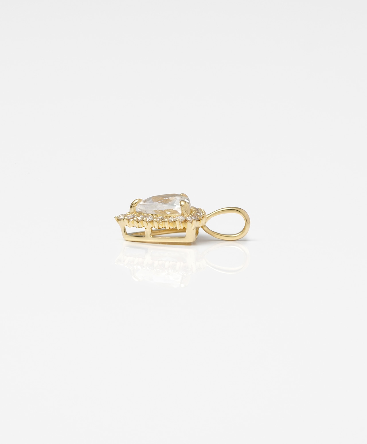 周囲を取り囲むダイヤモンド(クリア)の煌めきが王冠のように石を讃え、凛とした純粋な美しさをより一層際立たせています。