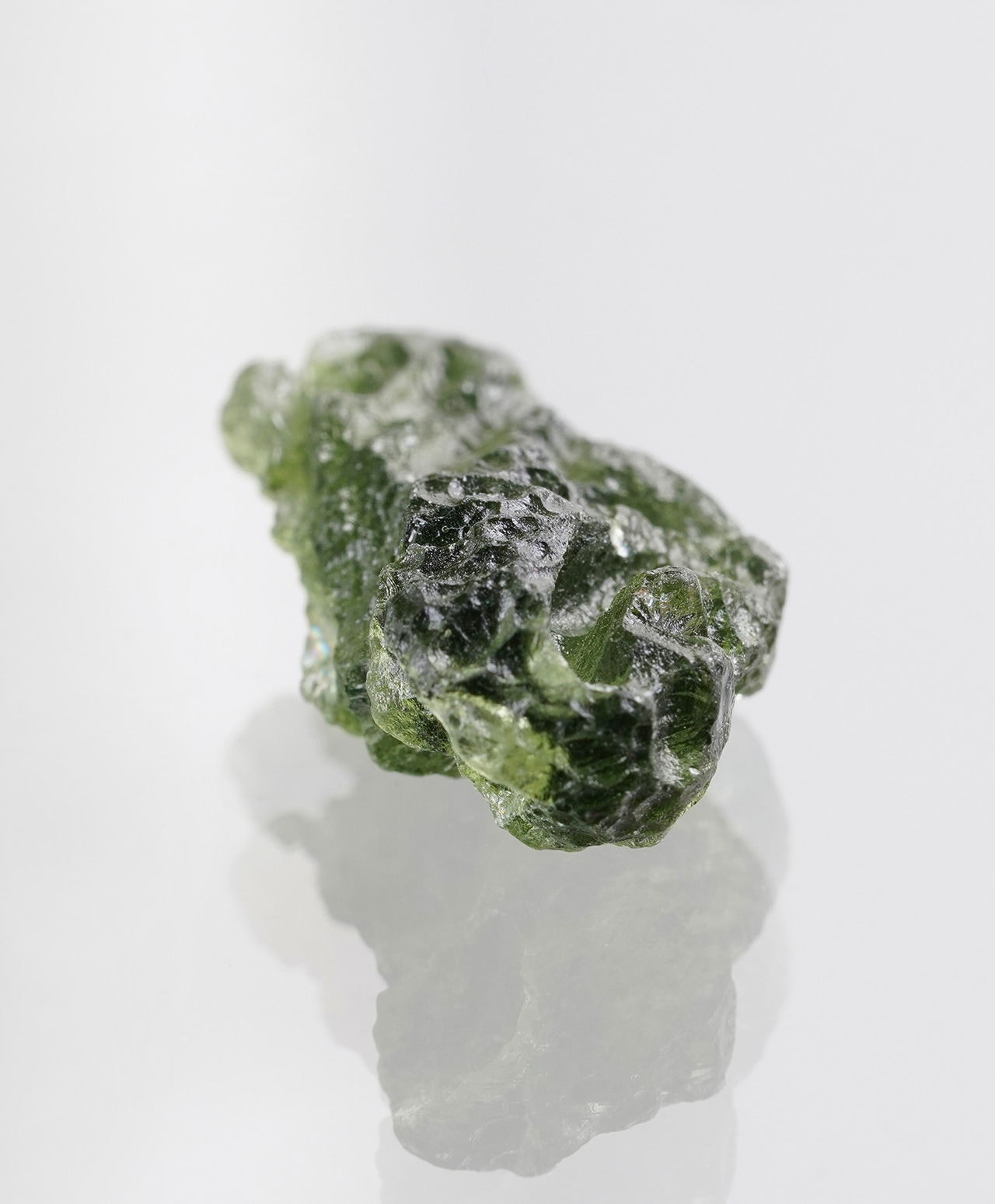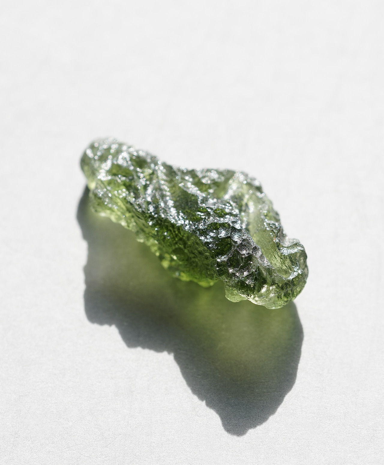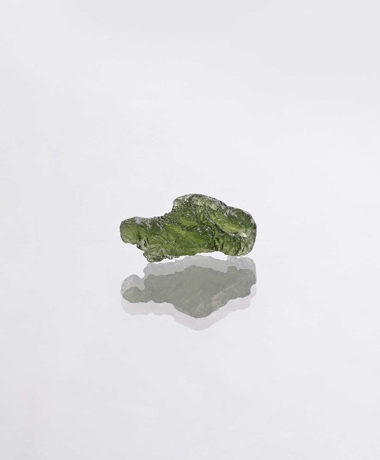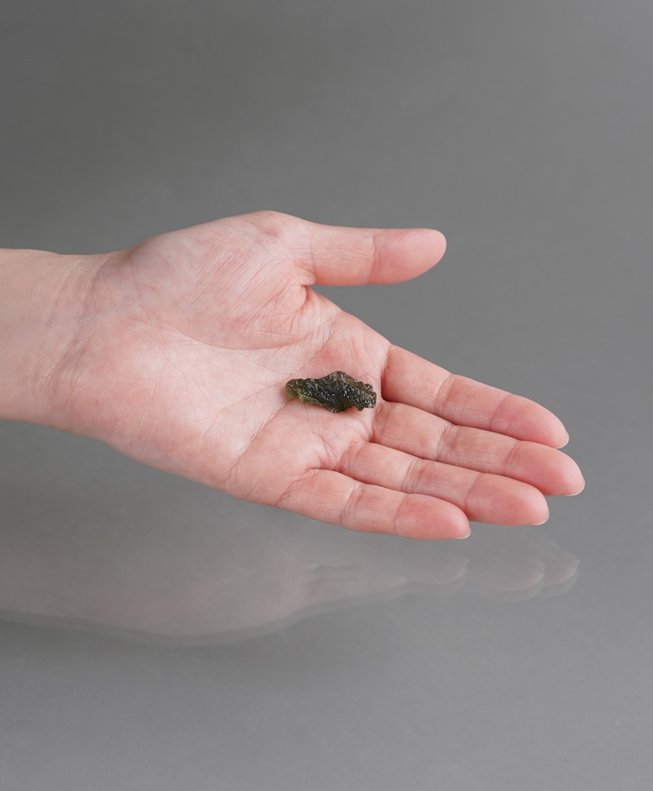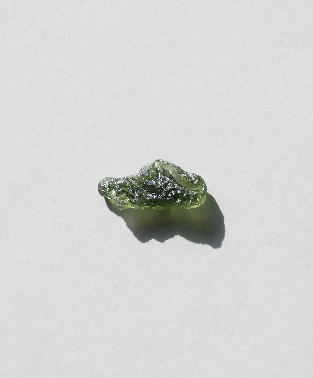 モルダバイトの正式な鉱物名はテクタイトと言います。宇宙から降ってきた隕石が地球に衝突した瞬間、衝突点周辺の地中の物質が瞬時に溶解し形成されたガラス状の天然鉱物が、衝突エネルギーで天空に舞い上がり、上空で低温で固化されてできた石です。