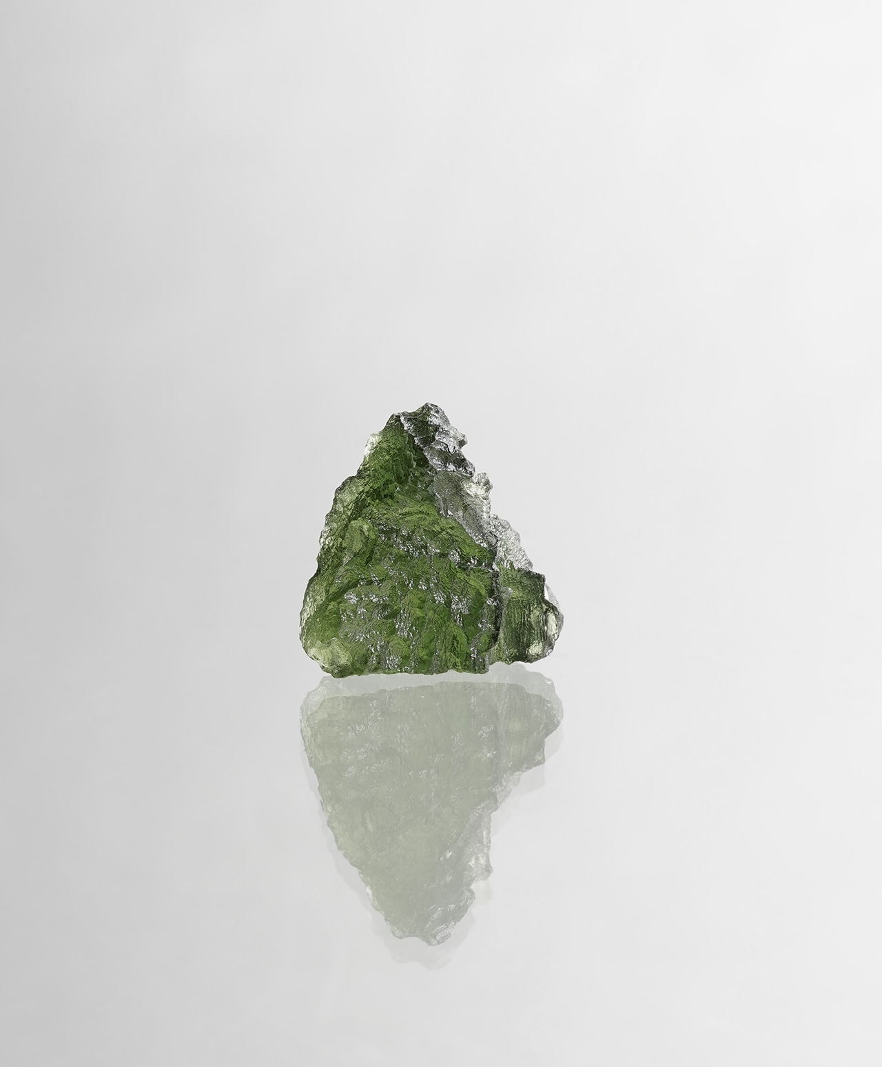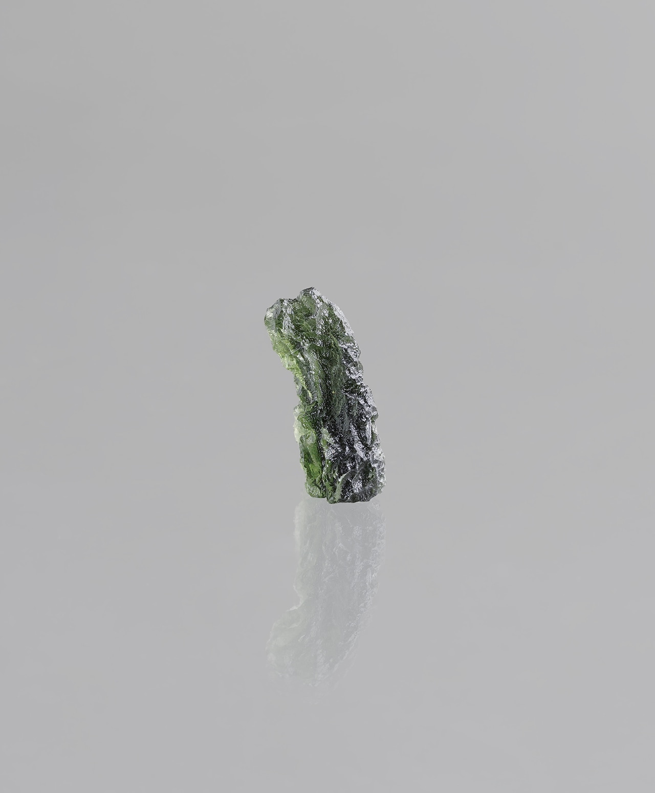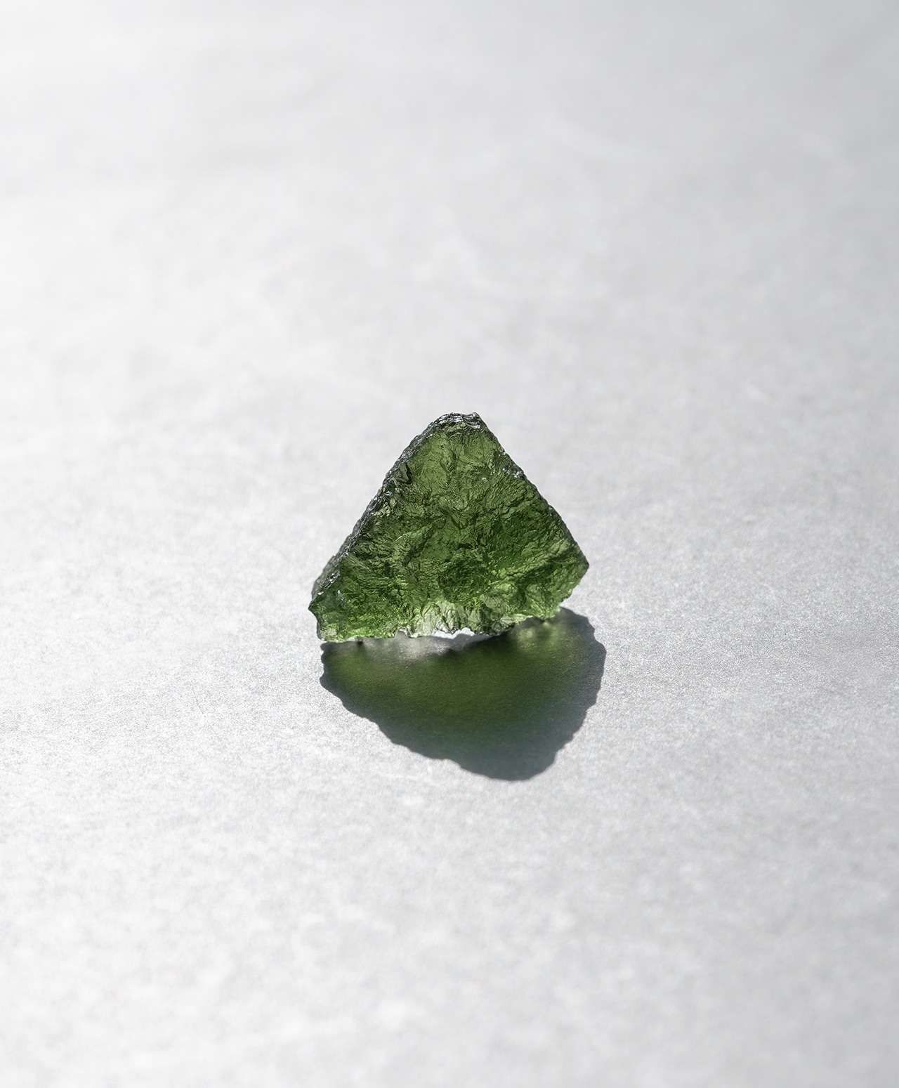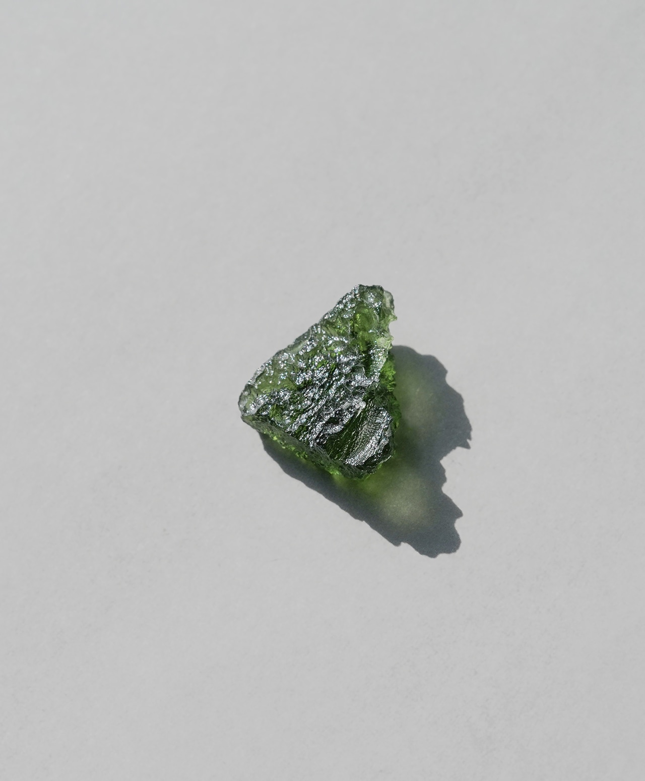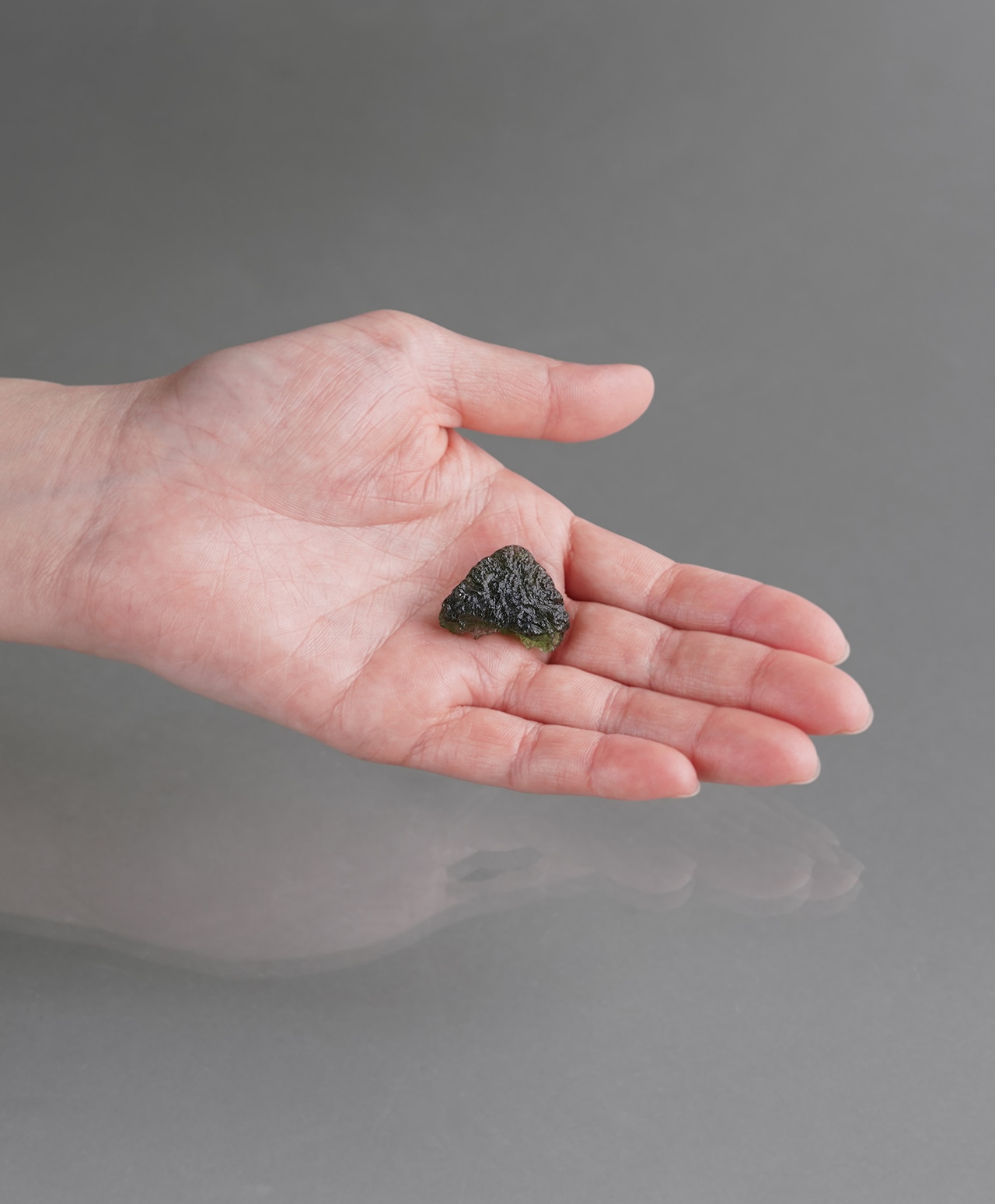 モルダバイトの正式な鉱物名はテクタイトと言います。宇宙から降ってきた隕石が地球に衝突した瞬間、衝突点周辺の地中の物質が瞬時に溶解し形成されたガラス状の天然鉱物が、衝突エネルギーで天空に舞い上がり、上空で低温で固化されてできた石です。