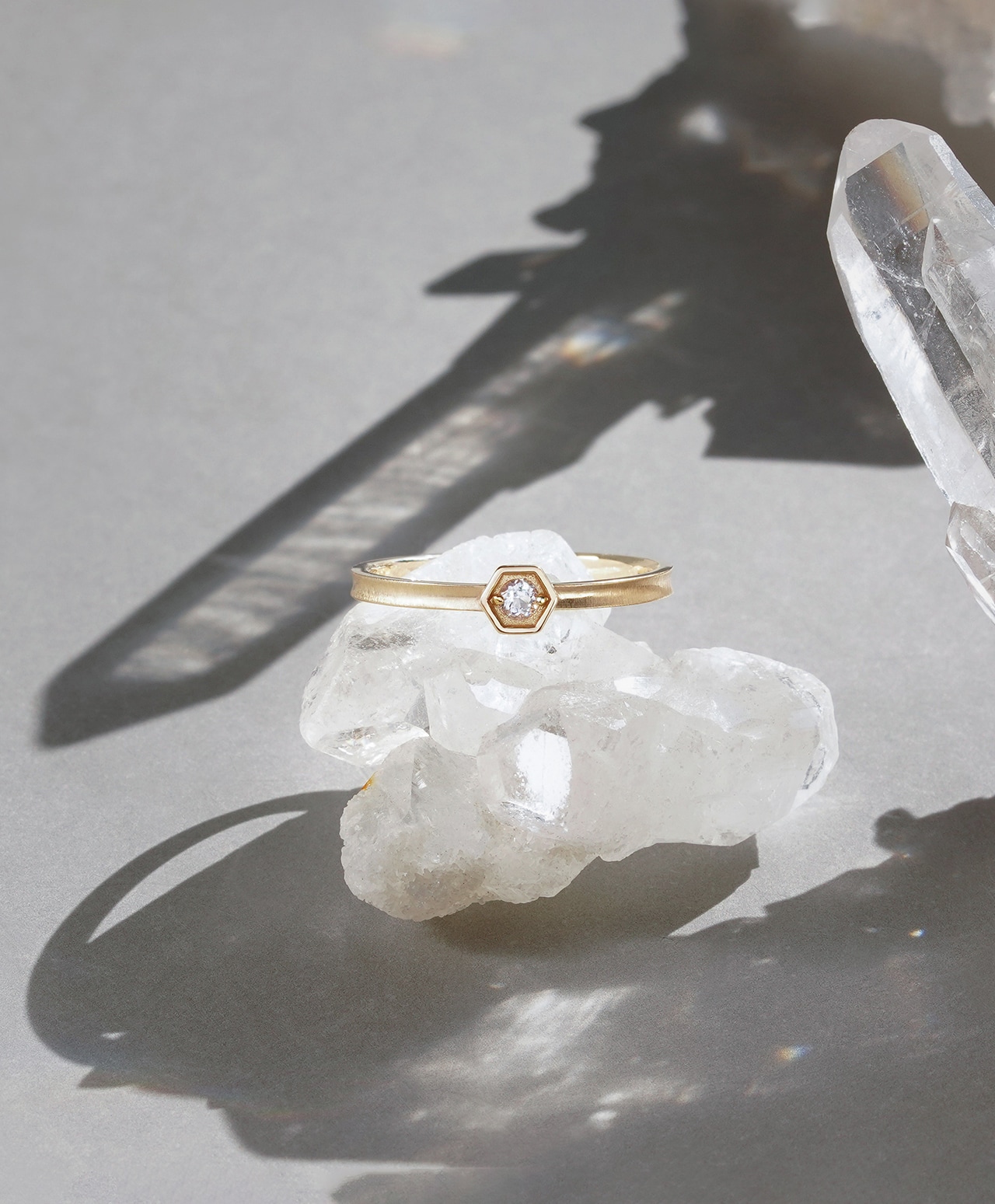 霊峰ヒマラヤの光を宿した、水晶のヘキサゴンリング。