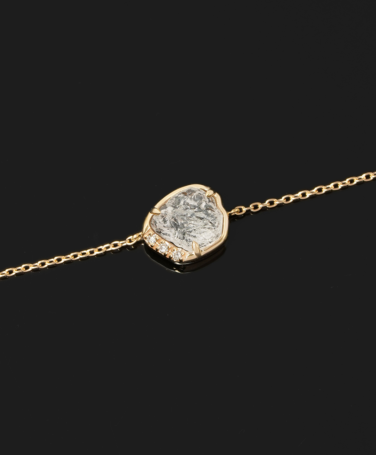 氷河の欠片のような原石の形をそのまま生かし、ブレスレットに仕立てました。