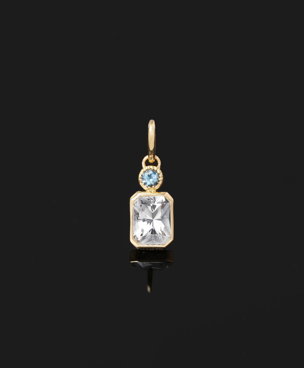 ロシア(マリシェボ鉱山)産フェナカイトとブラジル産サンタマリアアクアマリンを、1点もののチャームにしました。