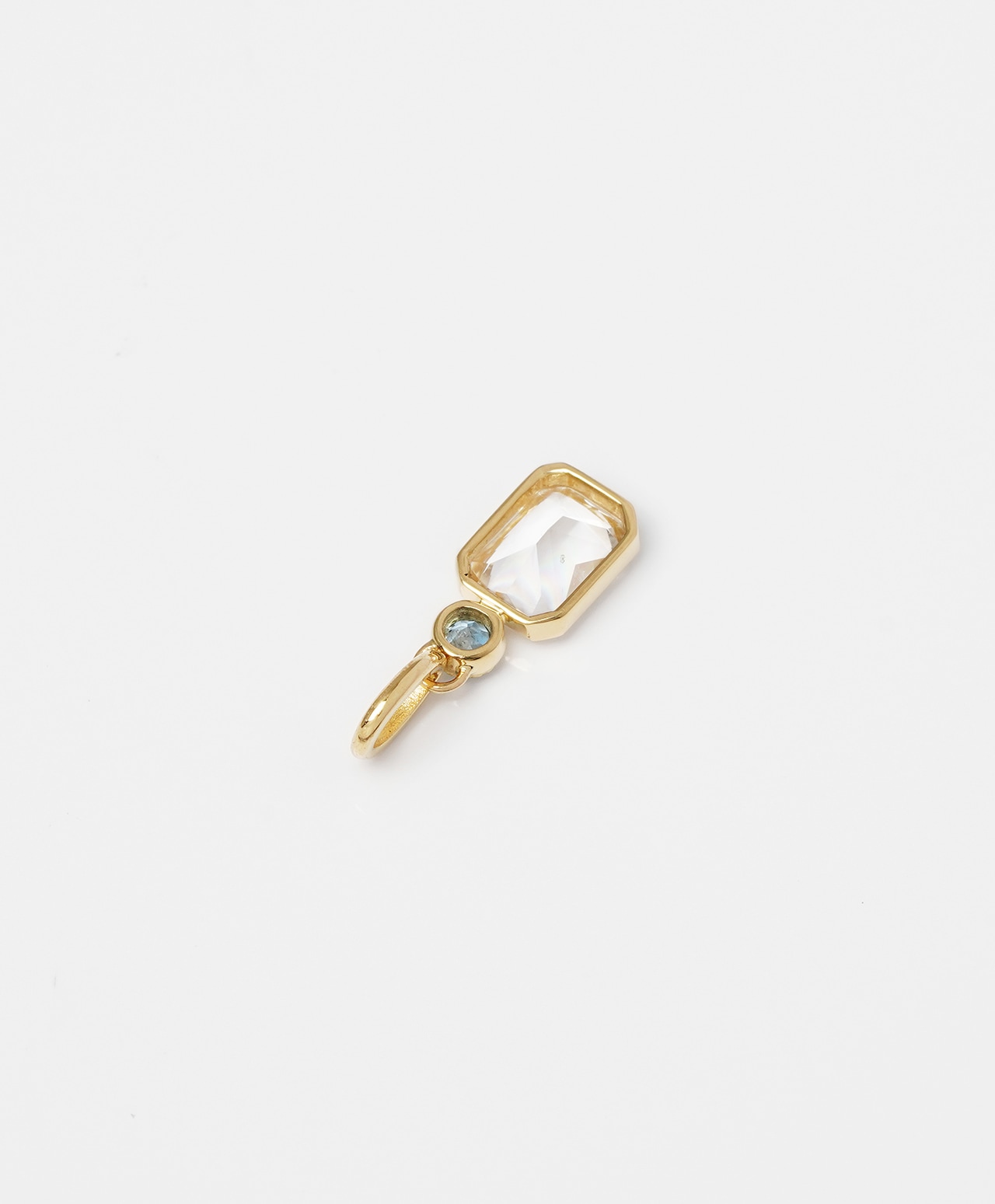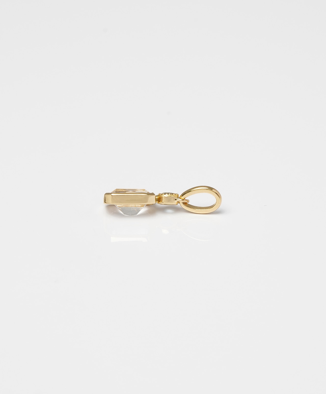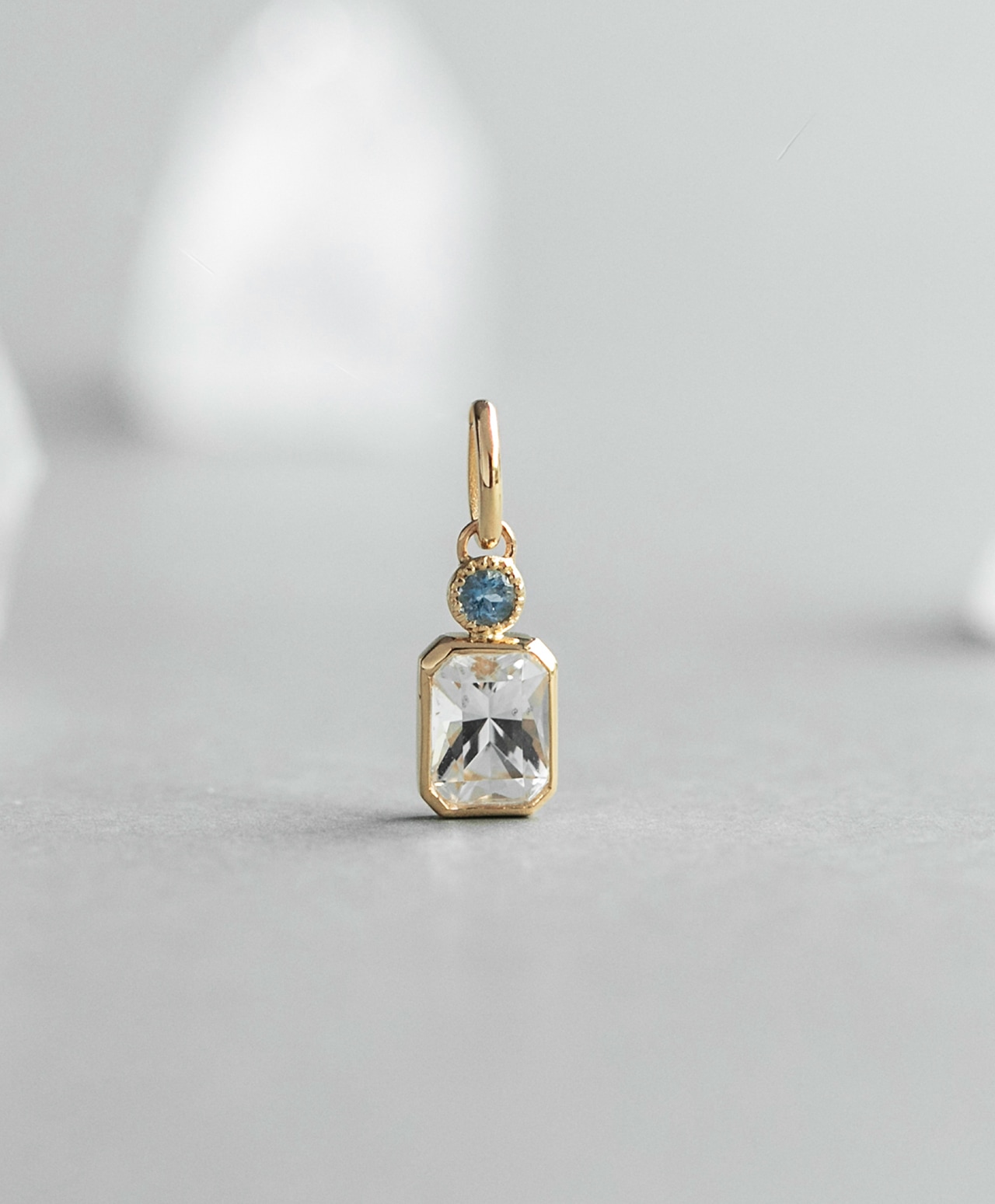 強い輝きと素晴らしい浄化力で世界中のヒーラーから注目を集めているこの石を、洗練されたゴールドフレームで包み込み、上部には澄んだ青空を映したようなアクアマリンをあしらいました。