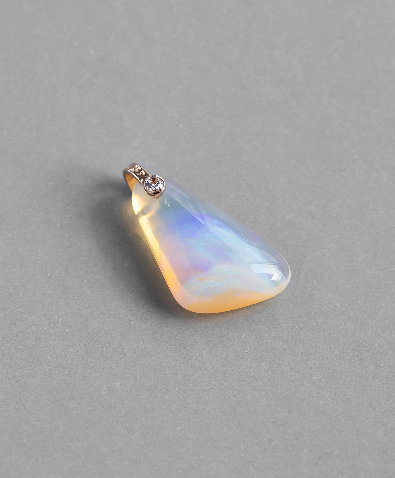 クリスタルオパール:15.06ct(約26.3mm × 約15.7mm) フェナカイト:0.06ct(約2.5mm × 約2.5mm) |