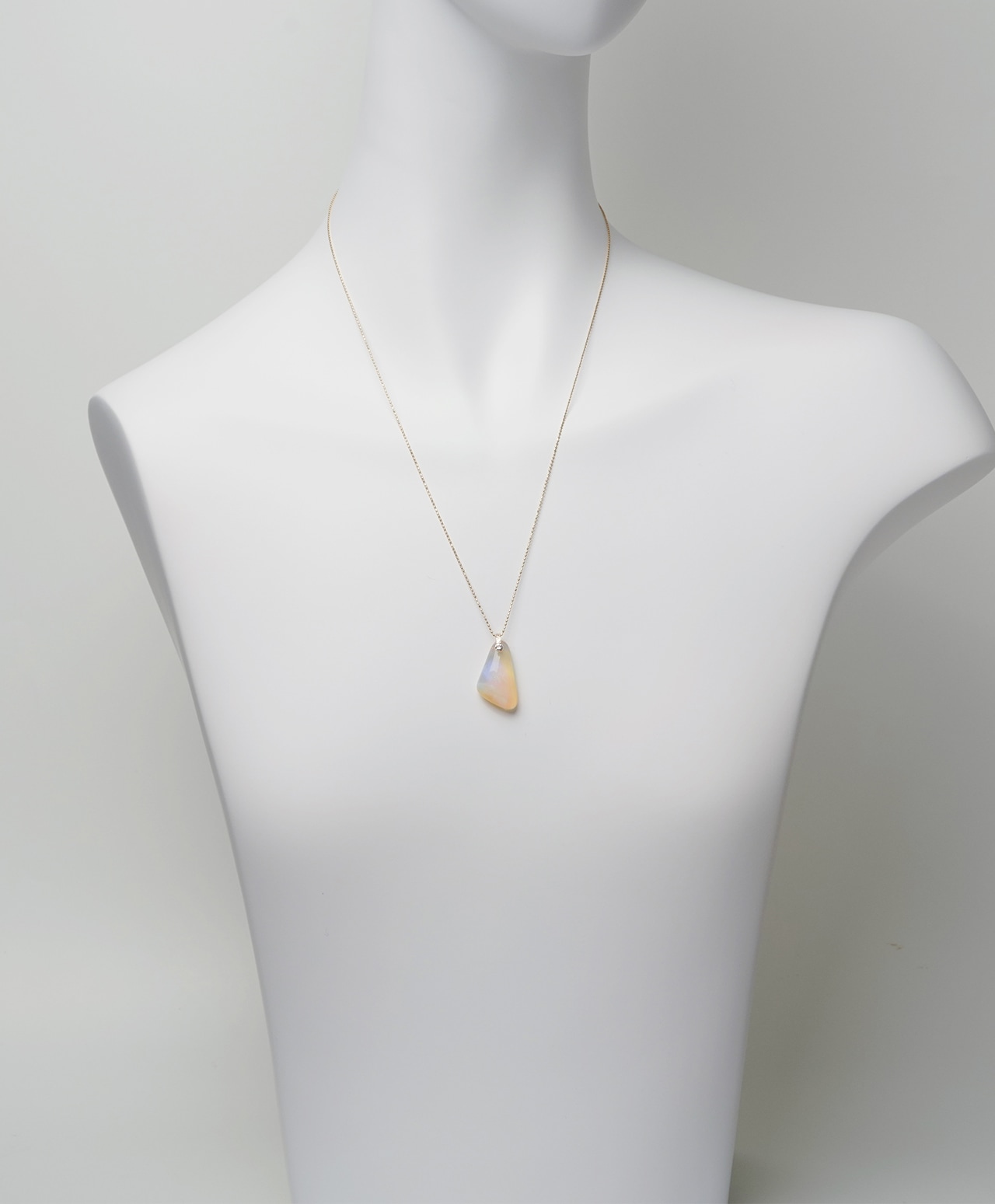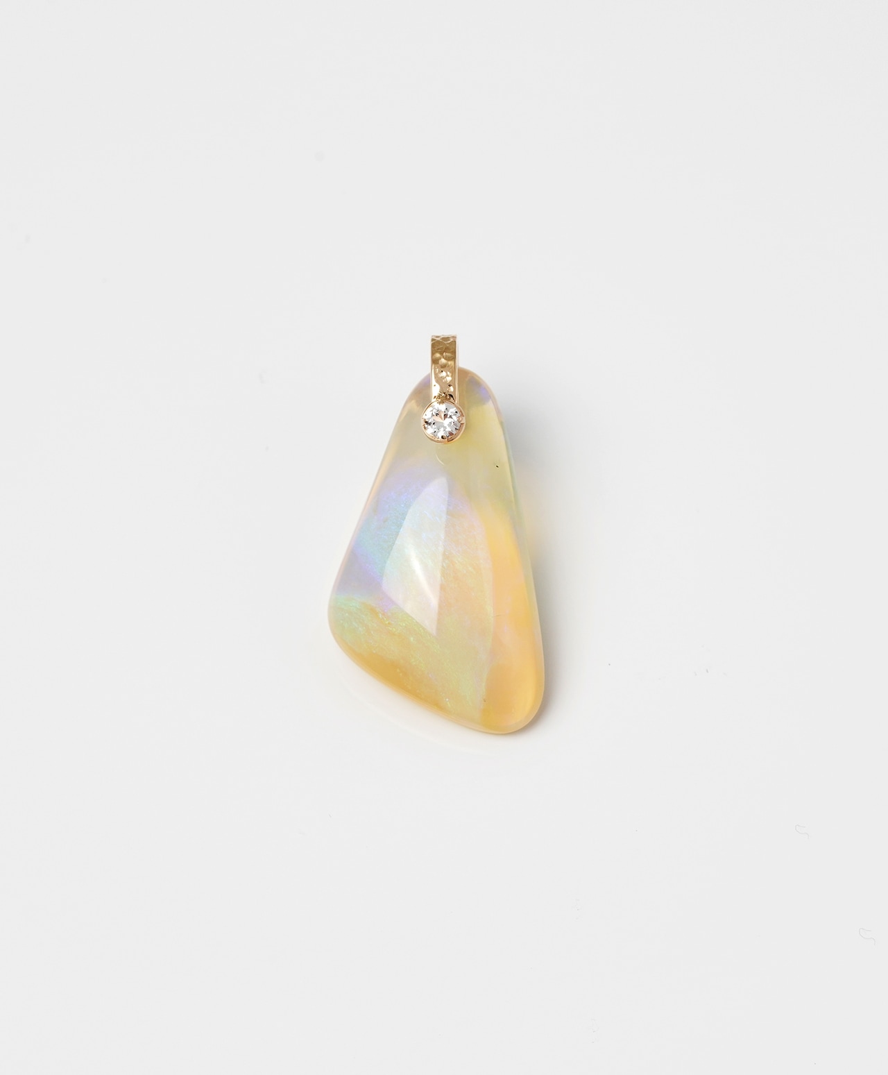 オーストラリア産クリスタルオパールとロシア(マリシェボ鉱山)産フェナカイトを、1点もののチャームにしました。