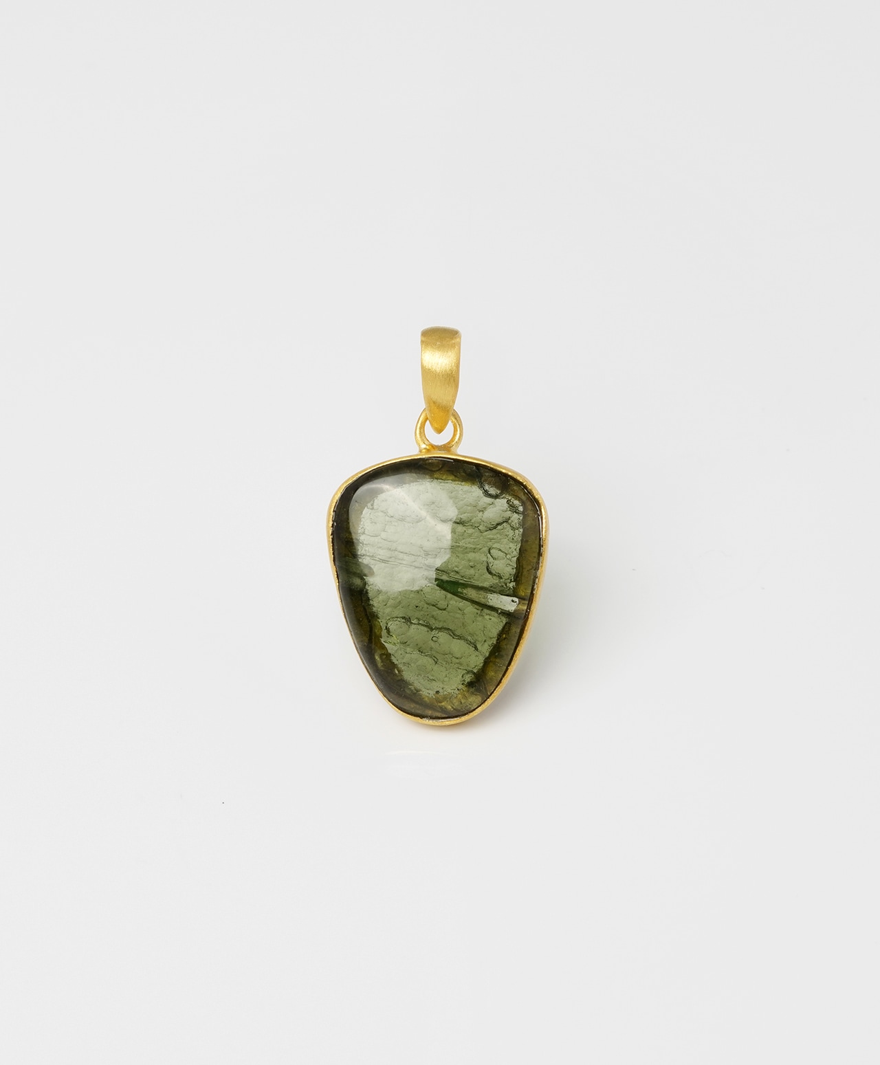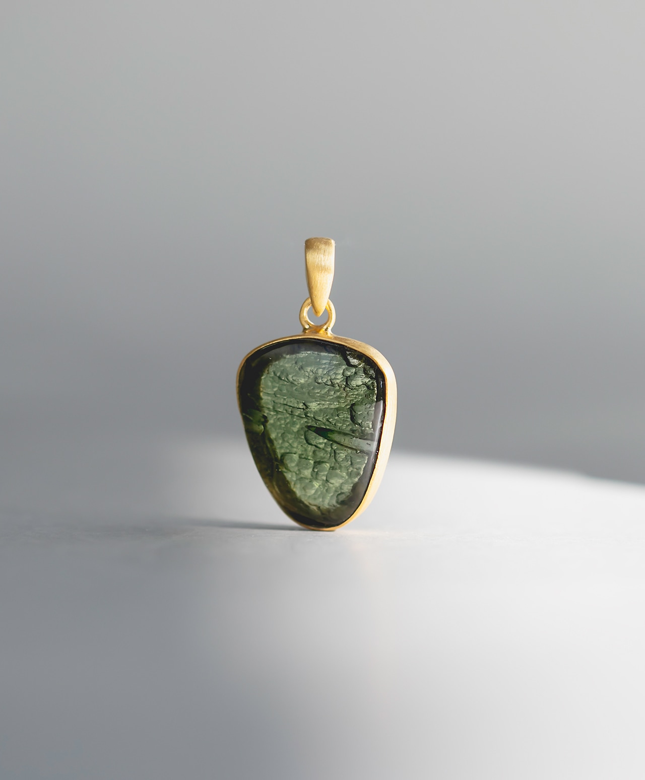 チェコ共和国産のモルダバイトを誂えた、1点もののチャームです。