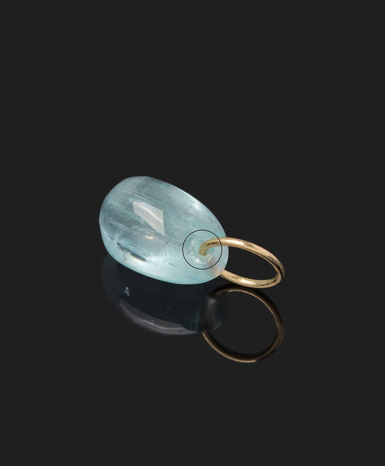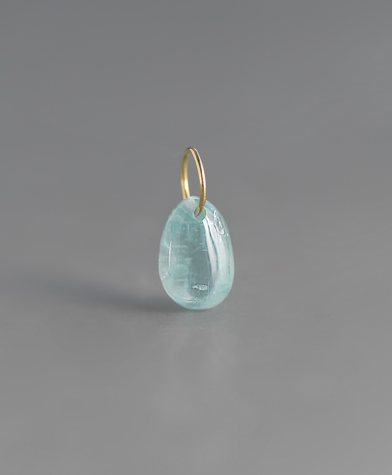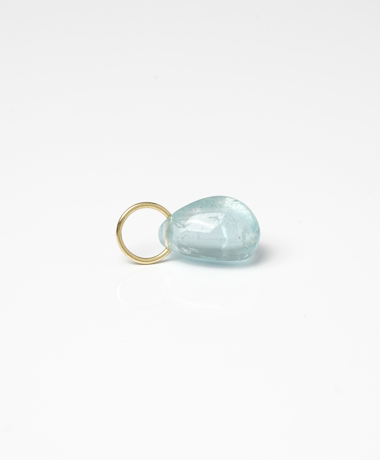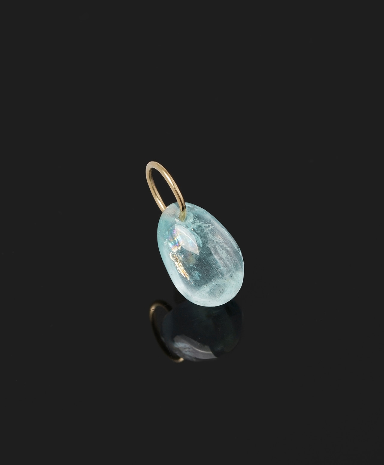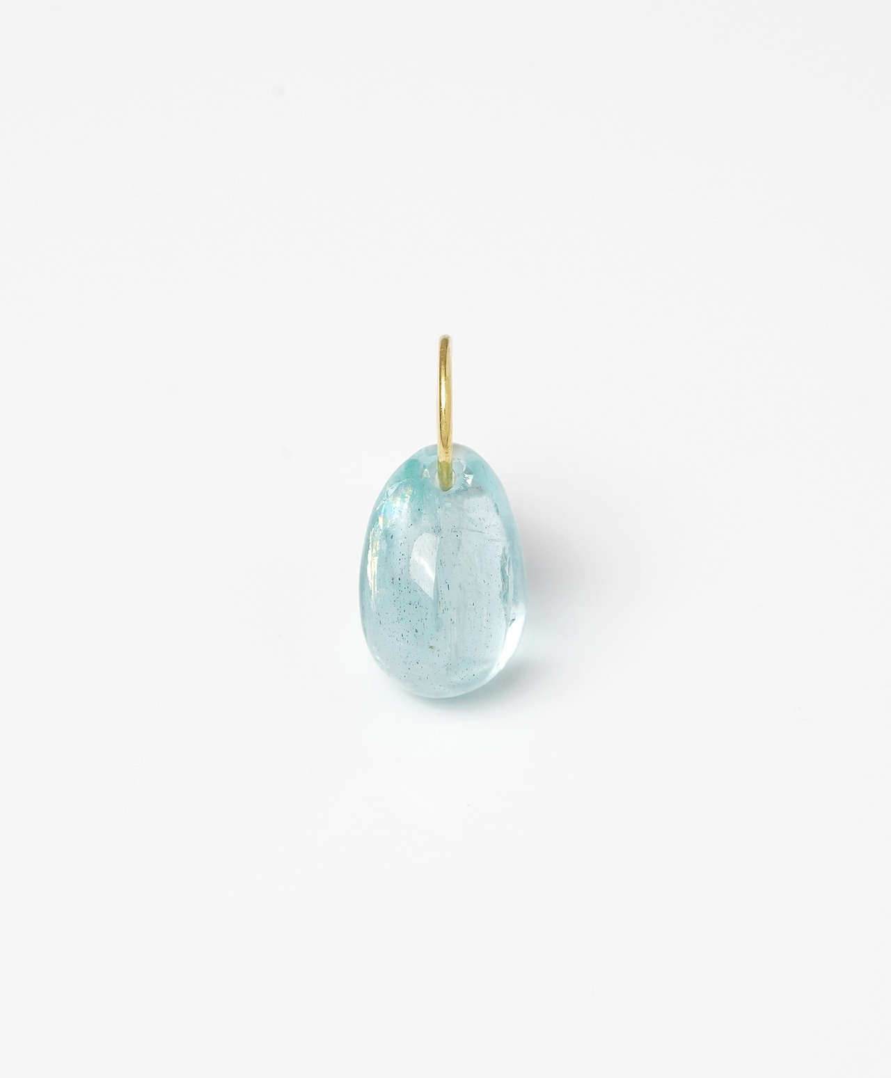 雨上がりの空を映したようなアクアマリン。淡い水色に優しい透明感を湛えたしずく型のフォルムには、光の角度によって虹色の輝きが現れます。