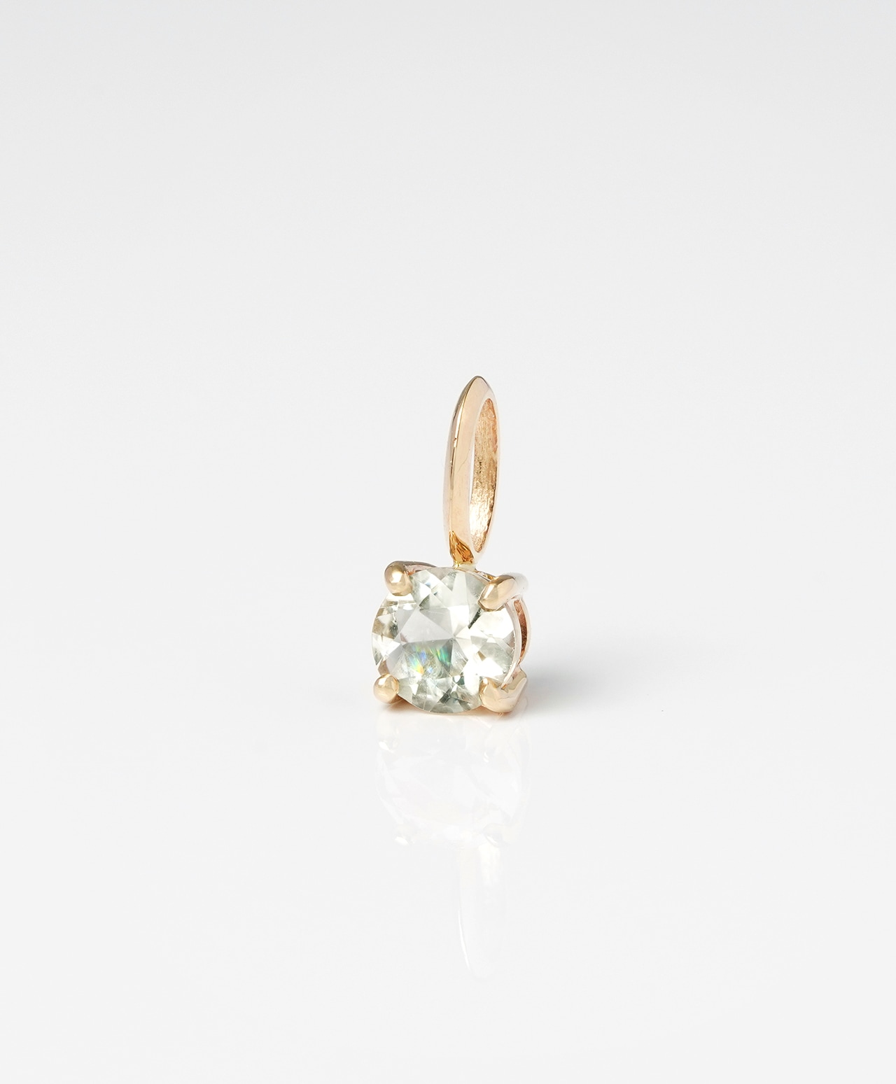 柔らかい輝きが美しいストーン。イエローとホワイトが入り混じったような、繊細なその色味が胸元で優美な存在感を放つ逸品です。