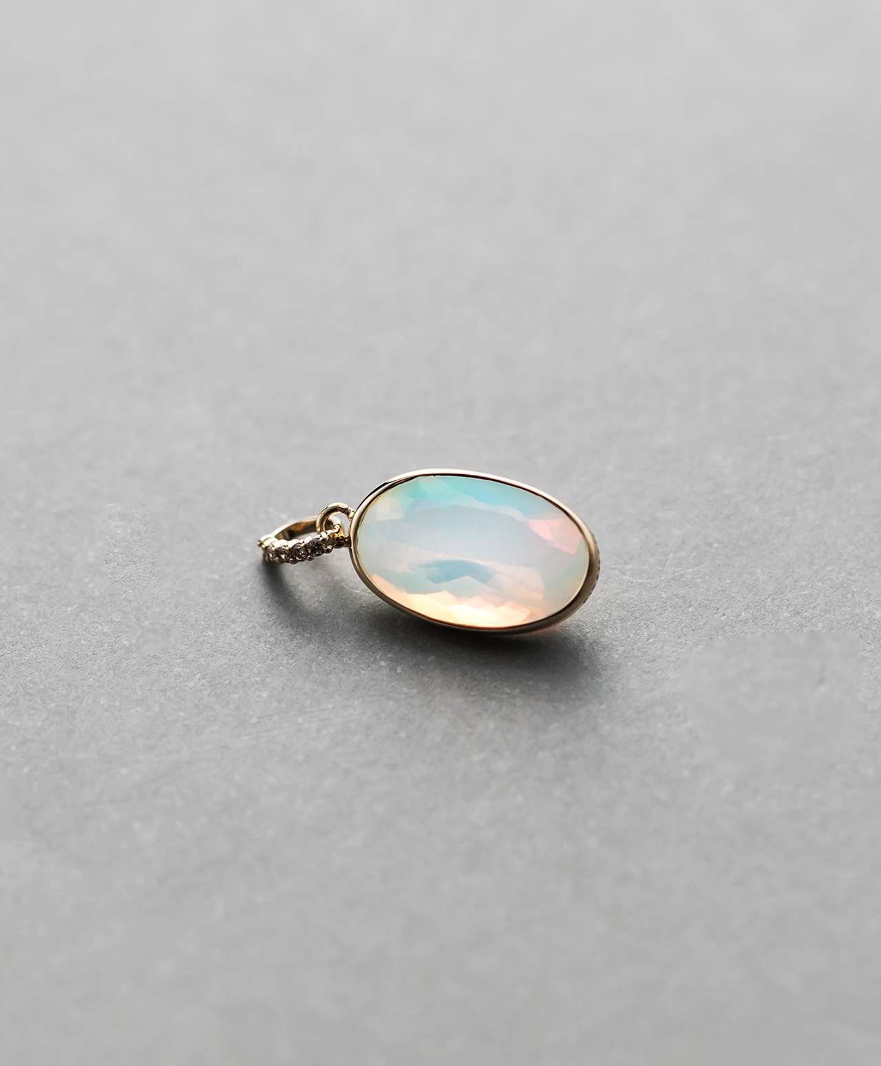 エチオピア産ウォーターオパールとブラウンダイヤモンドを、1点もののチャームにしました。