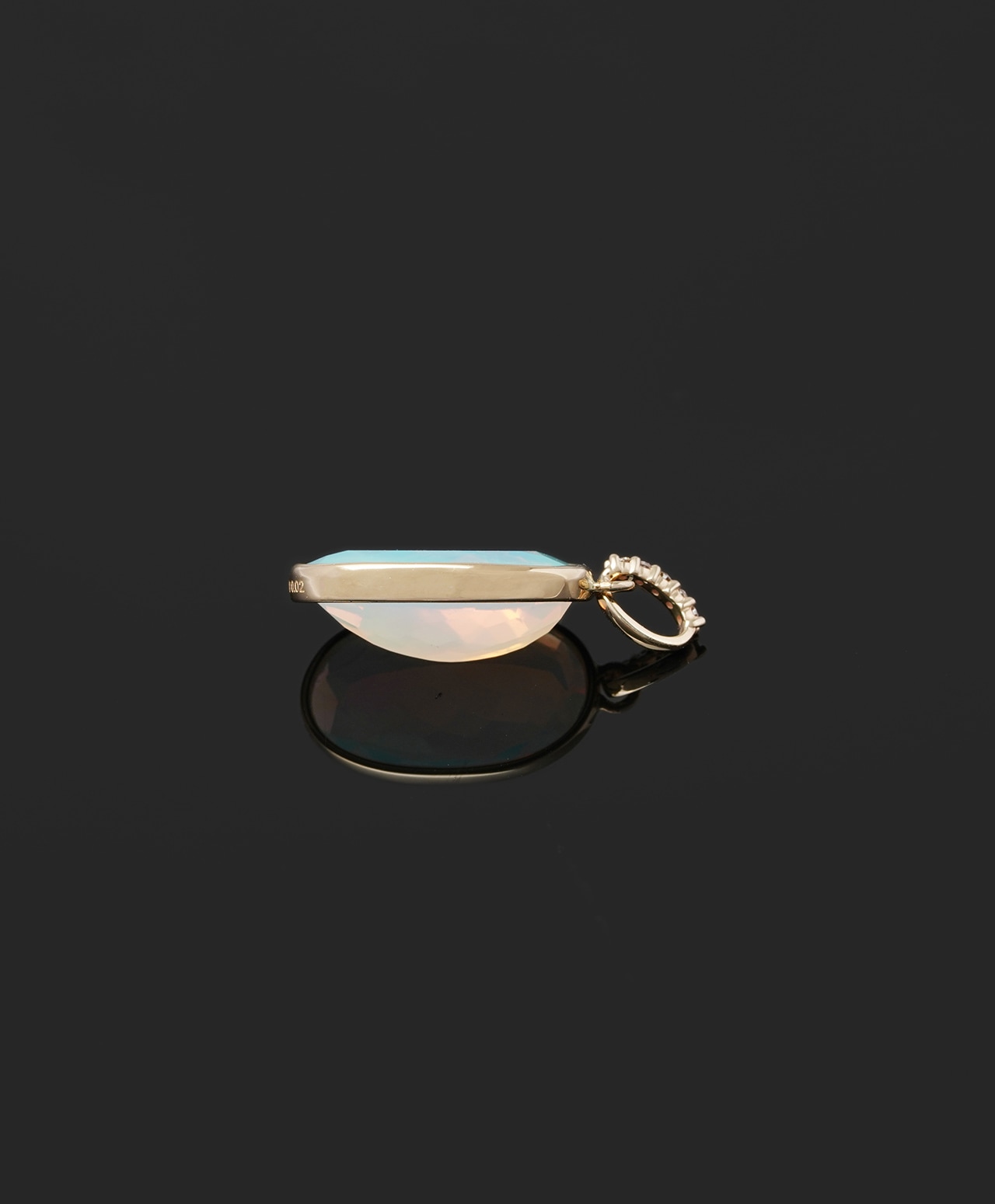 ウォーターオパール:2.70ct(約13.3mm × 約8.1mm) ブラウンダイヤモンド:0.02ct / 5pcs(各 約1.0mm × 約1.0mm) |