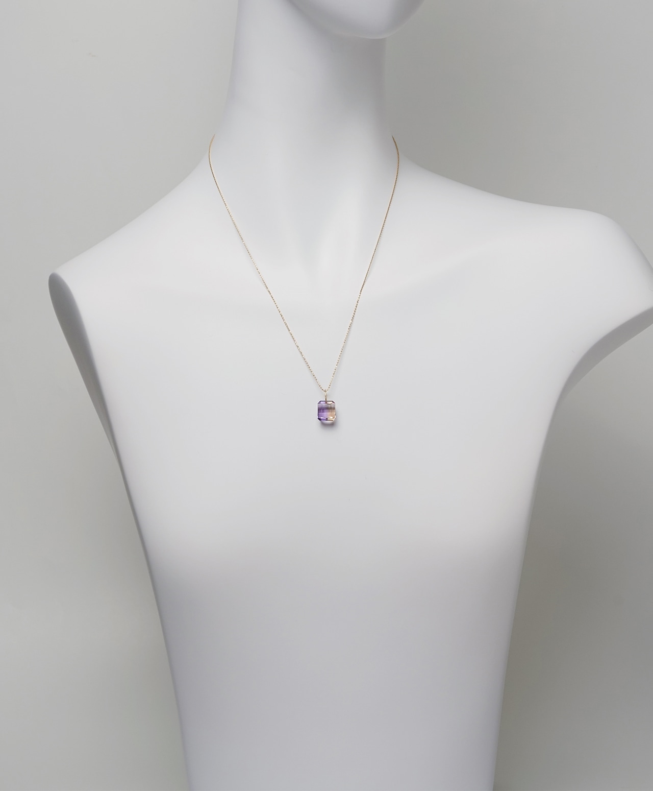 アメシストのパープルと、シトリンのイエローが美しく共存するストーン。その優美な輝きをご堪能いただけるジュエリーです。