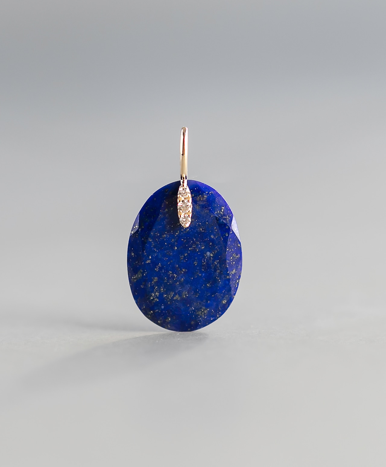 ゴールドのバチカンにあしらわれたダイヤモンド(クリア)の輝きが、ラピスラズリの深い青を一層際立たせています。
