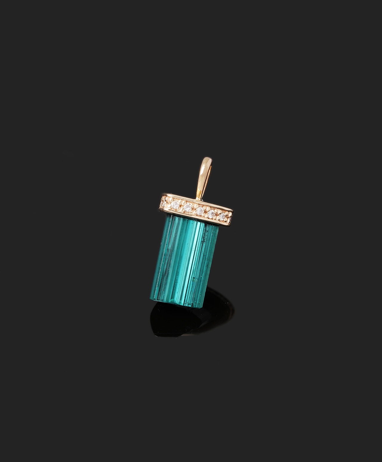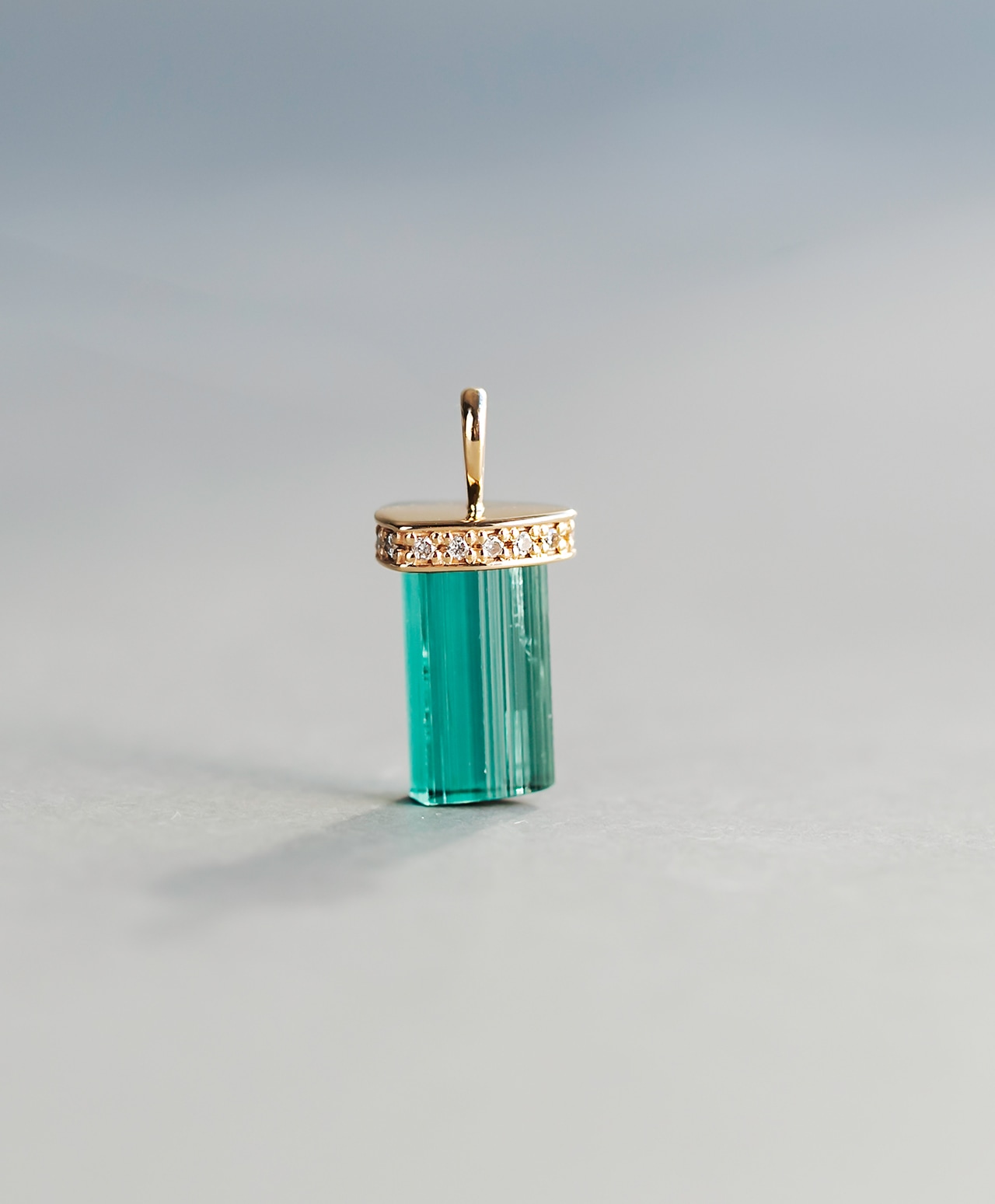 ブラジル産グリーントルマリンを、原石の形をそのまま生かした1点もののチャームにしました。