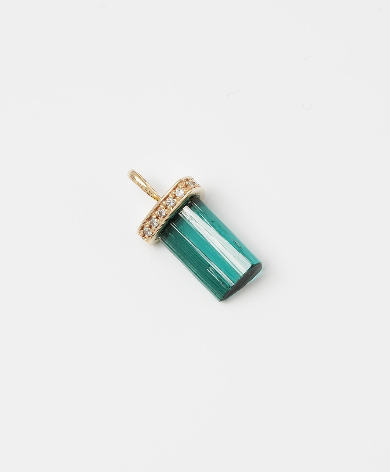 グリーントルマリン:3.12ct(約11.1mm × 約6.2mm) ダイヤモンド(クリア):0.07ct / 15pcs(各 約1.0mm × 約1.0mm) |