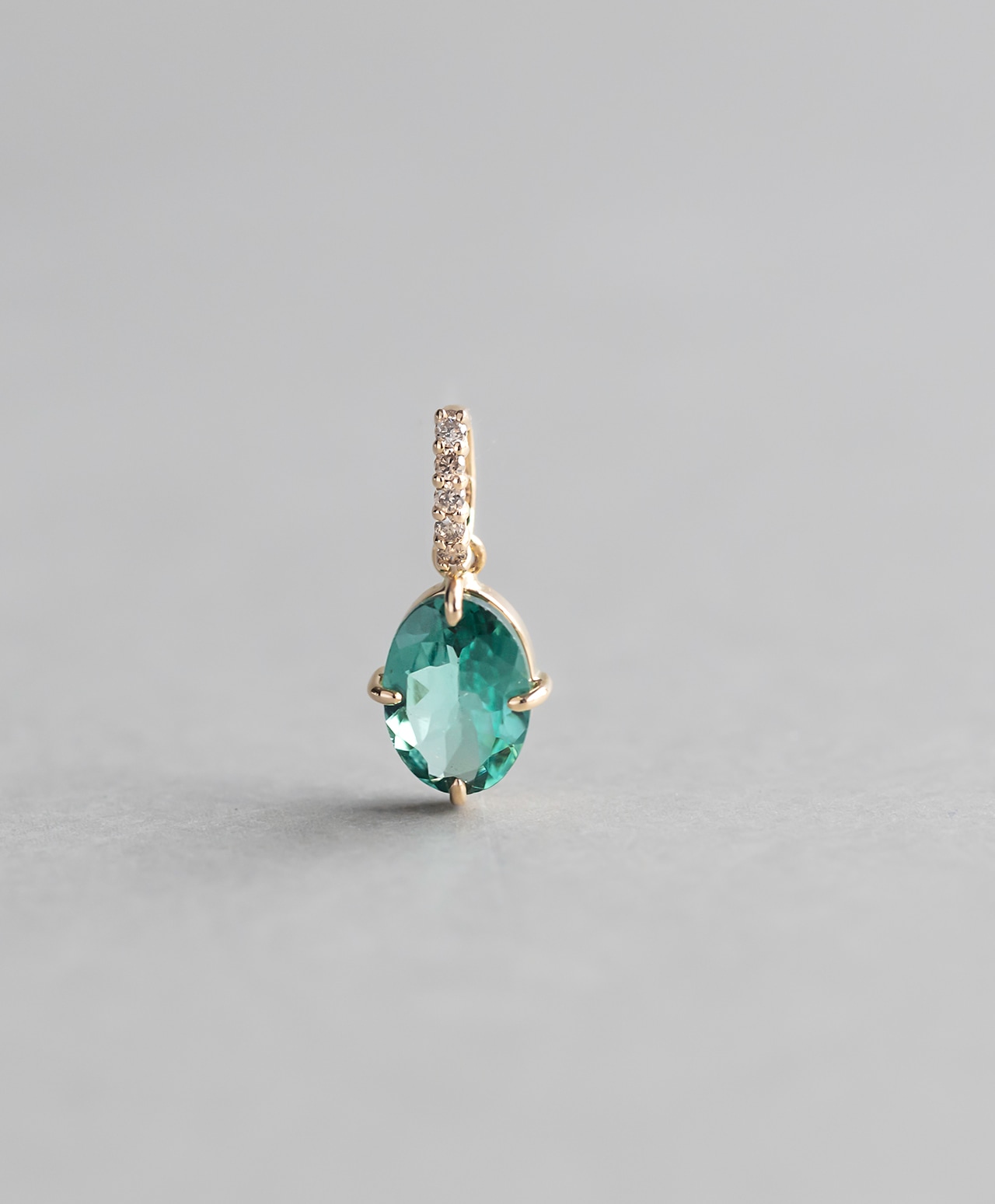 ブルーグリーントルマリン:0.74ct(約7.1mm × 約5.1mm) ブラウンダイヤモンド:0.02ct / 5pcs(各 約1.0mm × 約1.0mm) |