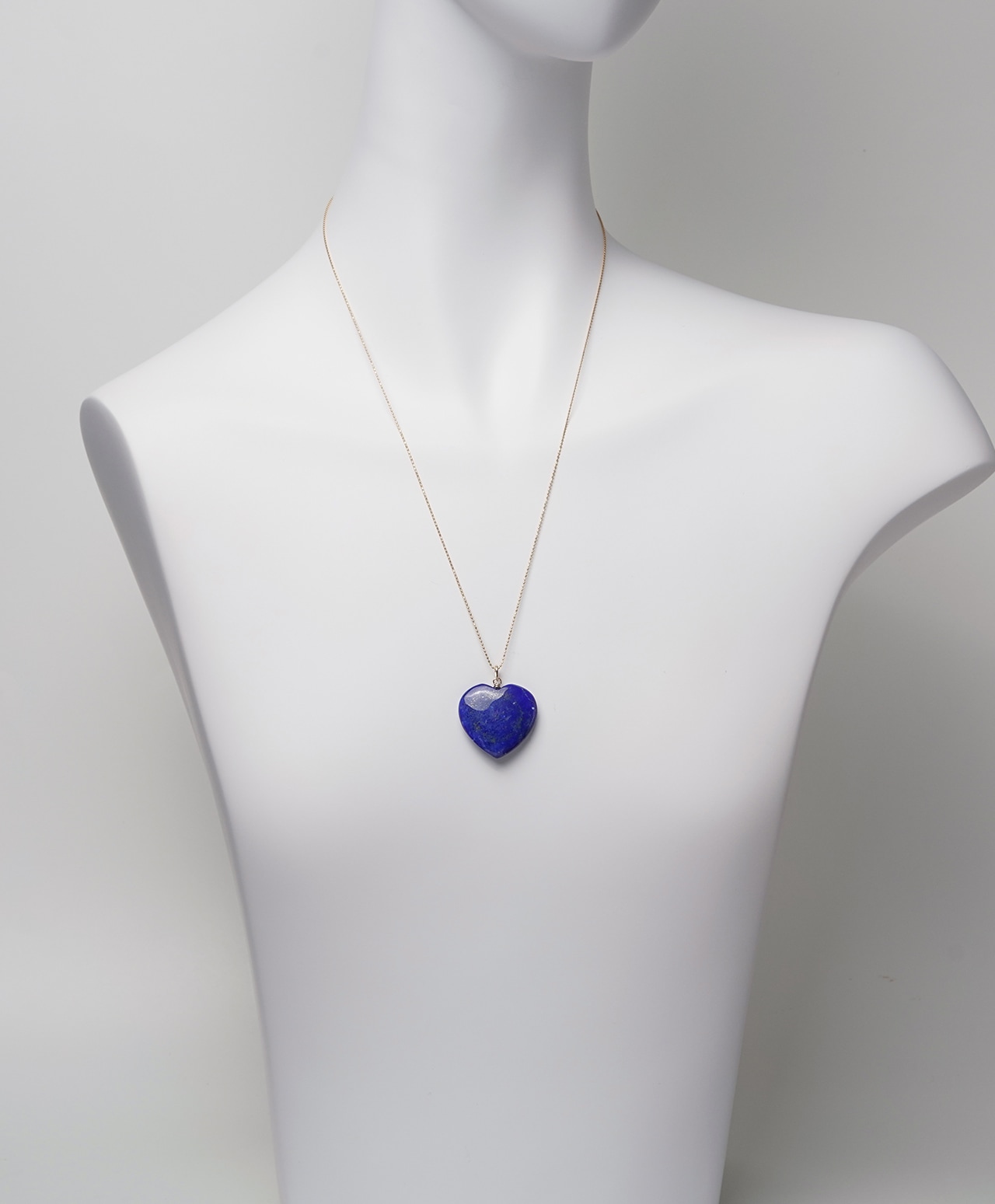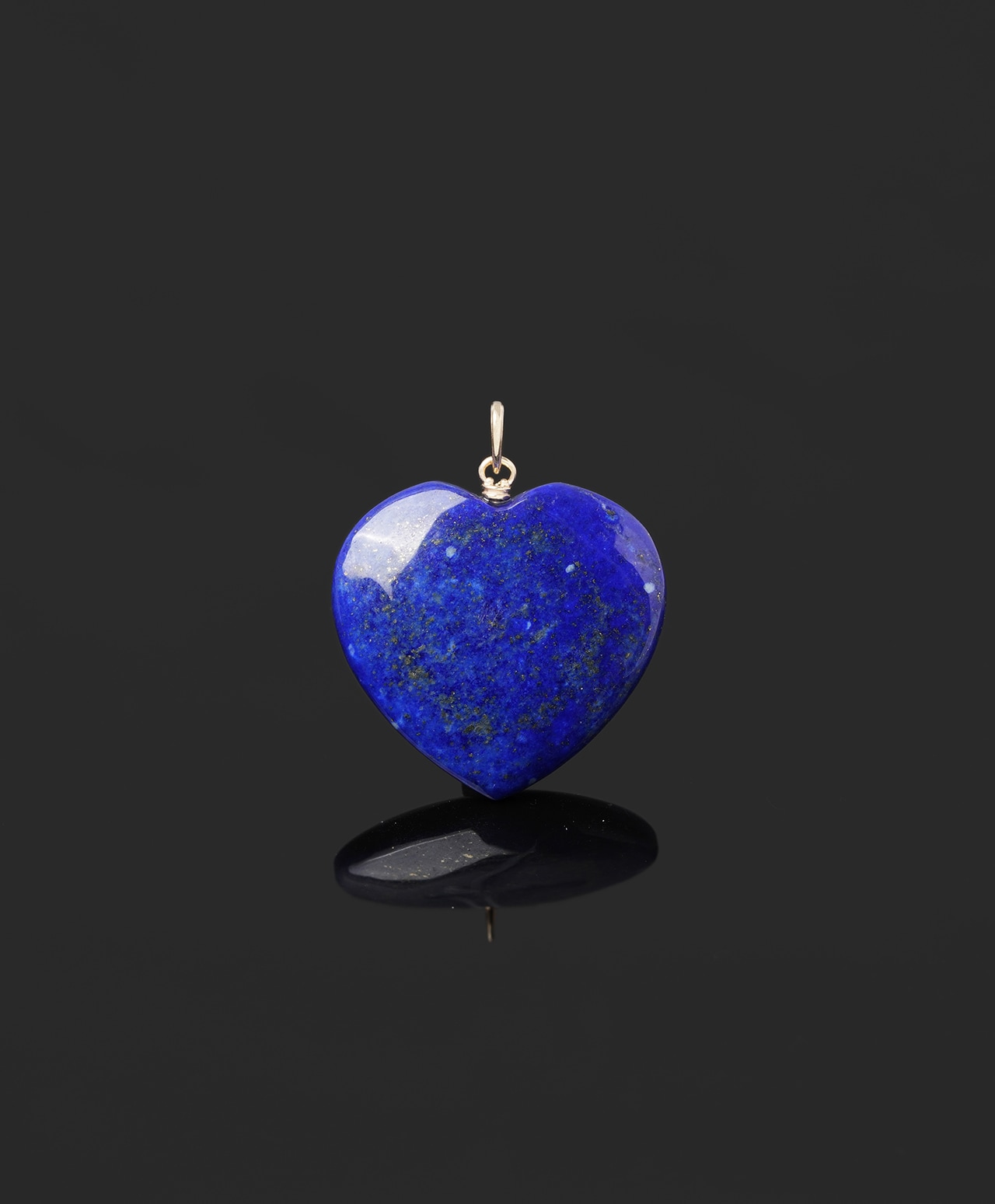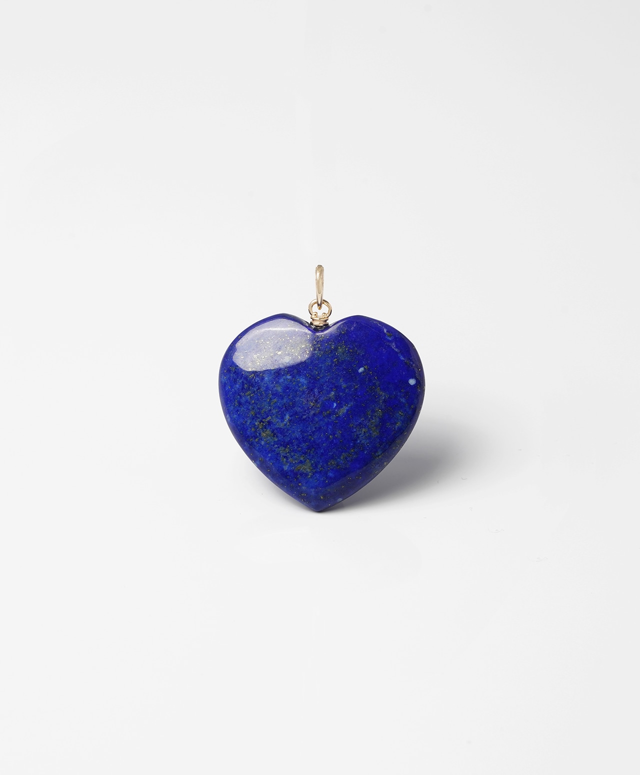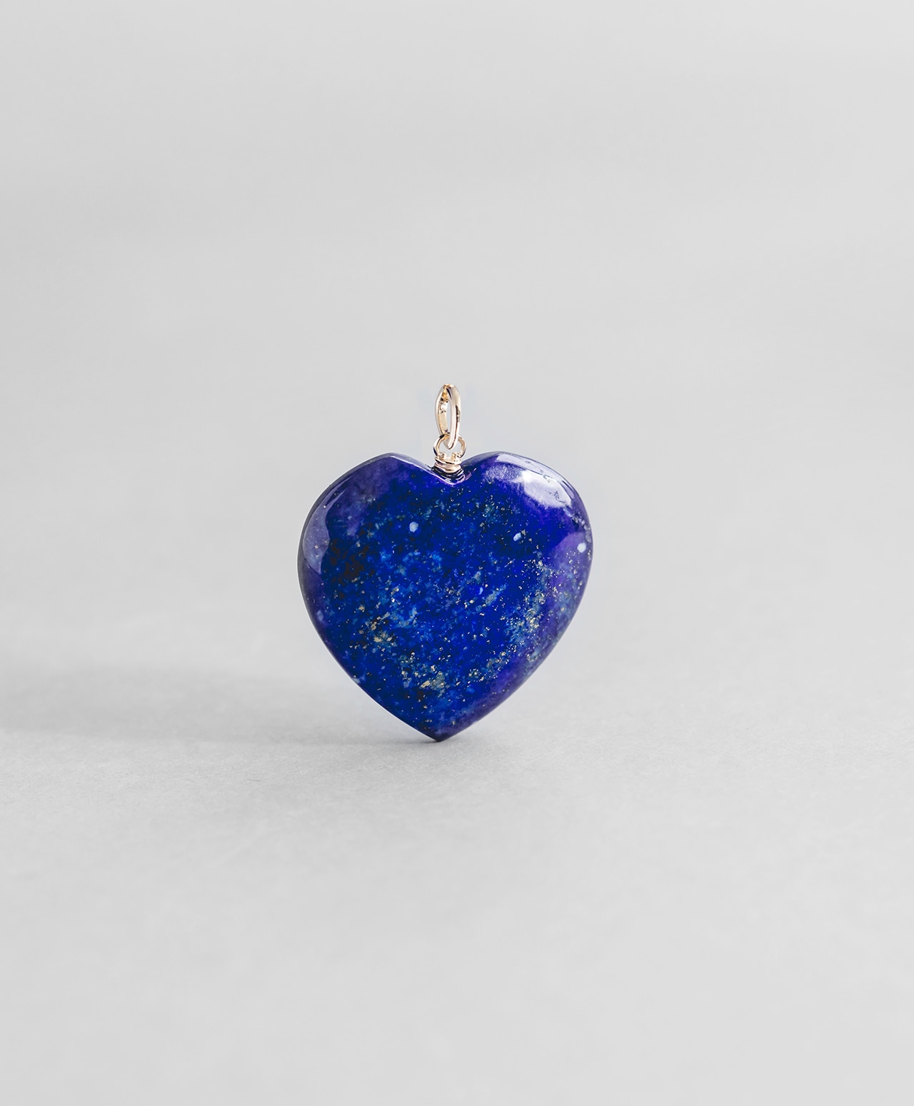 愛らしいハート型のラピスラズリ。パイライトなどの鉱物が夜空に瞬く星のように混じったストーンを1点もののチャームにしました。