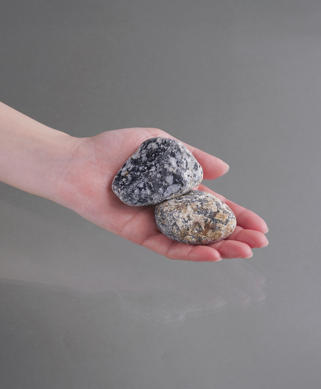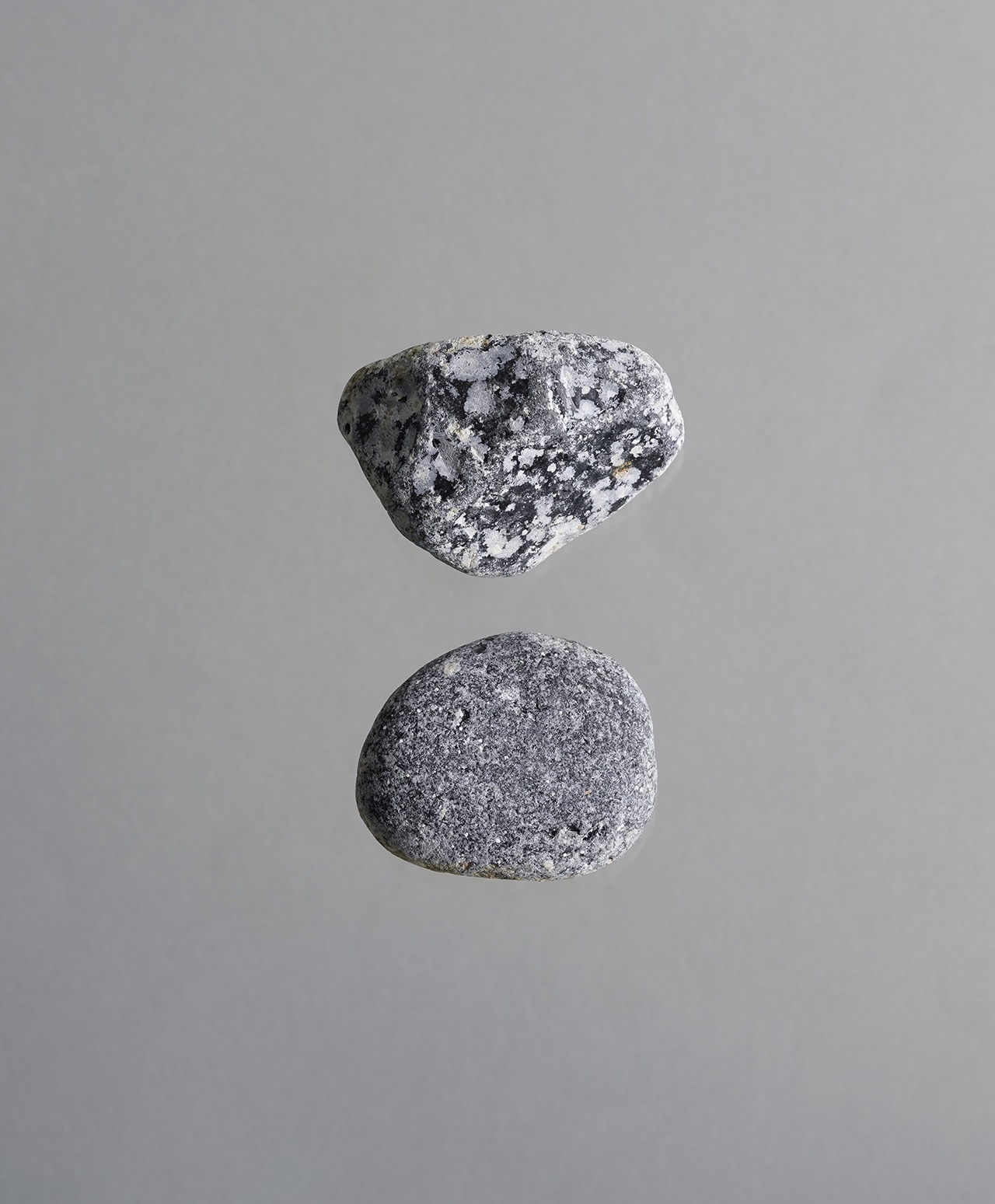 波の力で長い時間をかけて研磨された、丸みを帯びたフォルムの石。磯の香りが漂ってきそうな、自然の表情を石の面に色濃く残します。