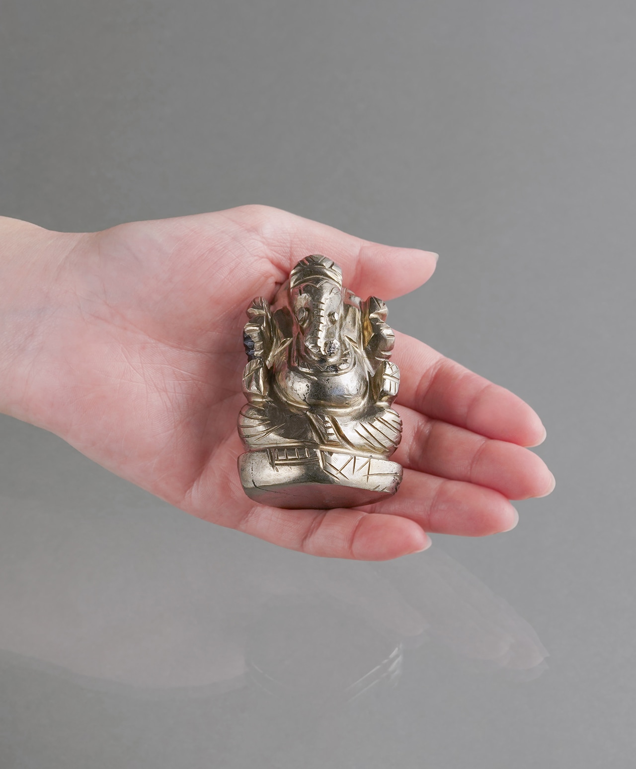ペルー産パイライトを、ガネーシャをかたどった美しい彫像にしました。