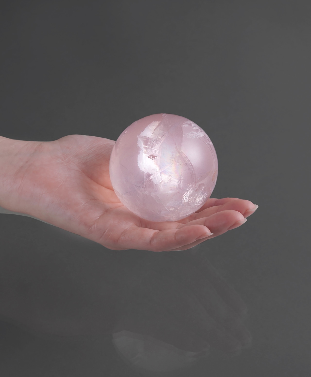 球体の内部に浮かび上がる虹が幻想的な美しさを湛え、眺めているだけで心が洗われるような、愛と癒しに満ちています。インテリアとして飾るだけでなく、瞑想の友としても最適です。