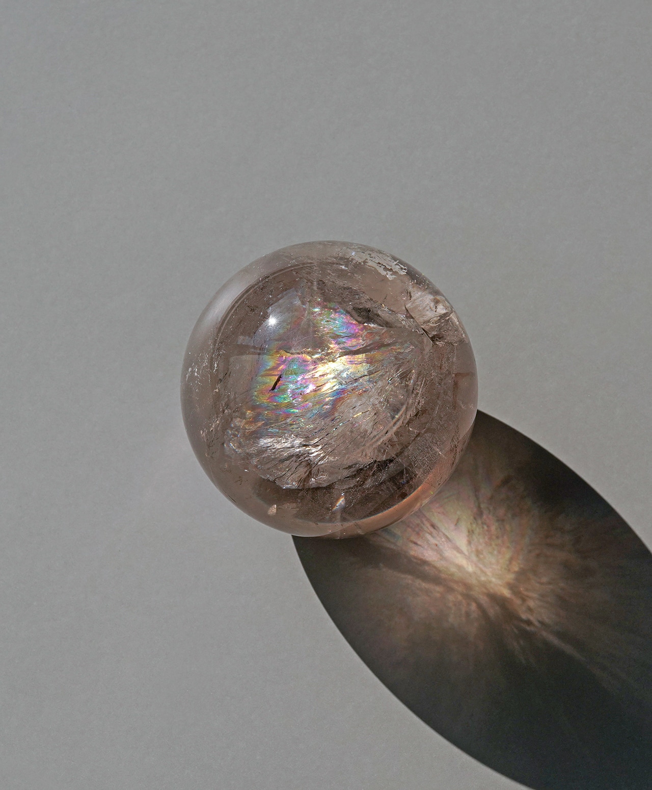 素晴らしい透明感に、高貴なブロンズカラーを湛えたスモーキークォーツ。羽を広げた鳥のような鮮やかな虹色は圧巻の光景です。