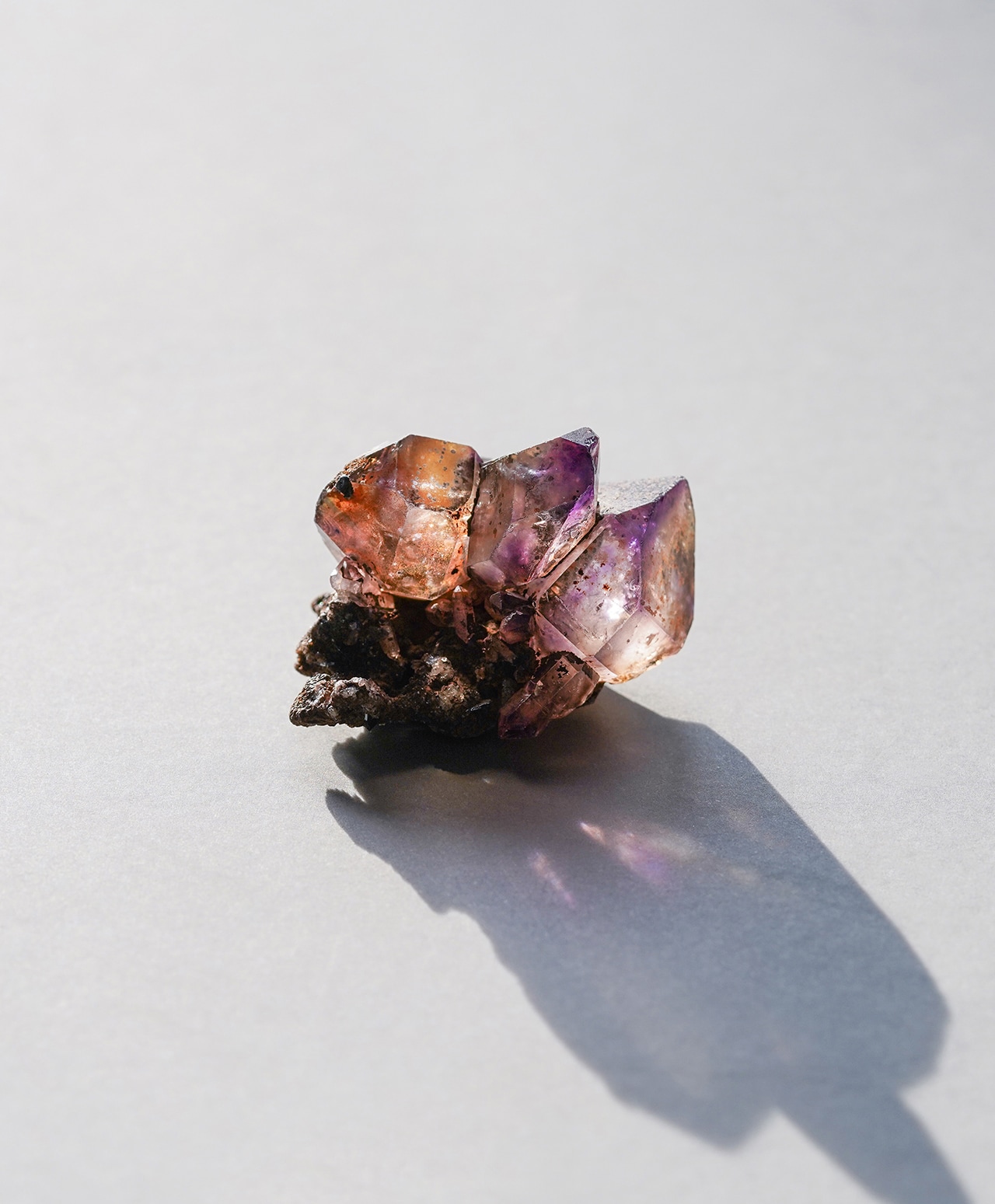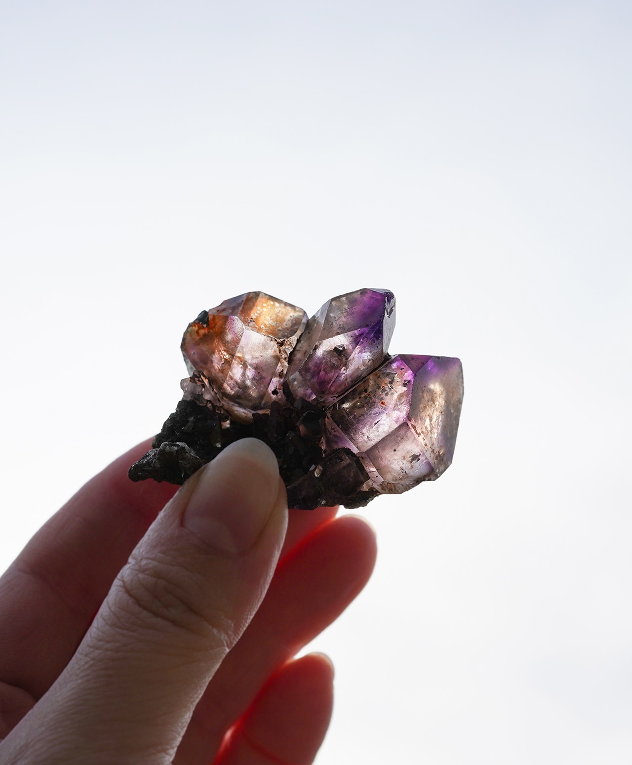 三つ子のように連なった結晶は光に透かすとそれぞれが異なる表情を見せ、眺めるたびに新しい発見がある特別な原石です。