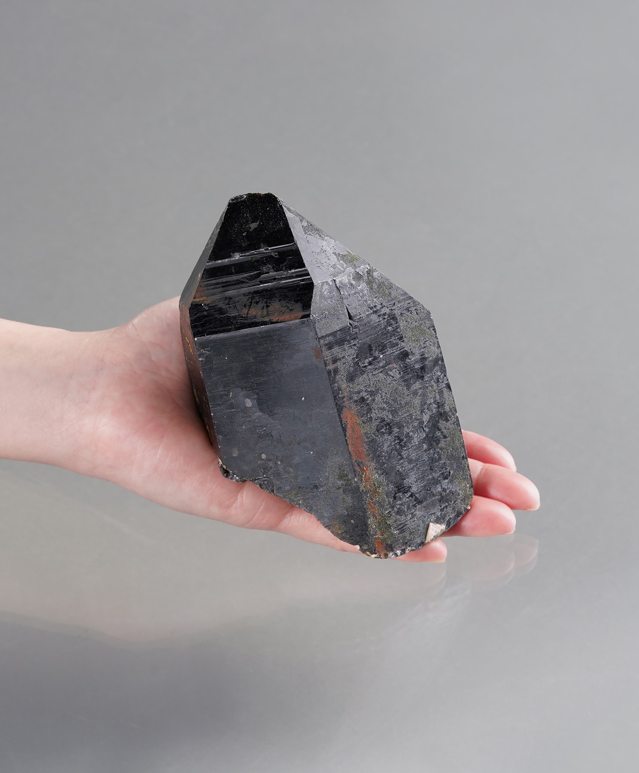 グラウディングに長けた、この強き漆黒のスピリット。そのクールな色彩に緑色のクロライトが宿ります。800gを超えるボリュームがありながら、結晶のフォルムをお楽しみいただける逸品です。