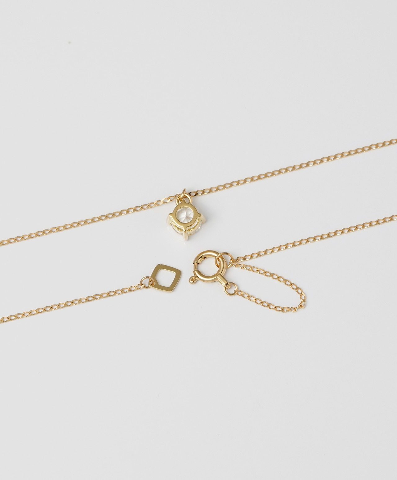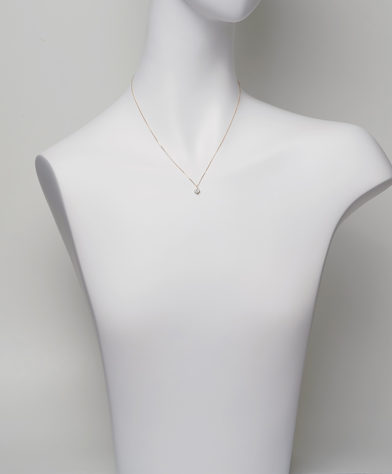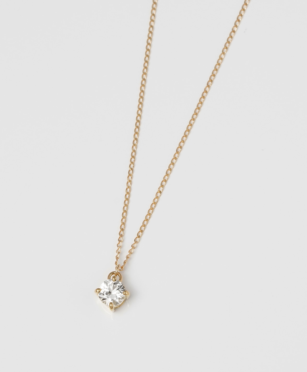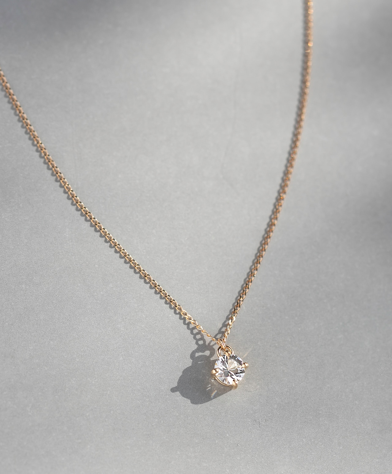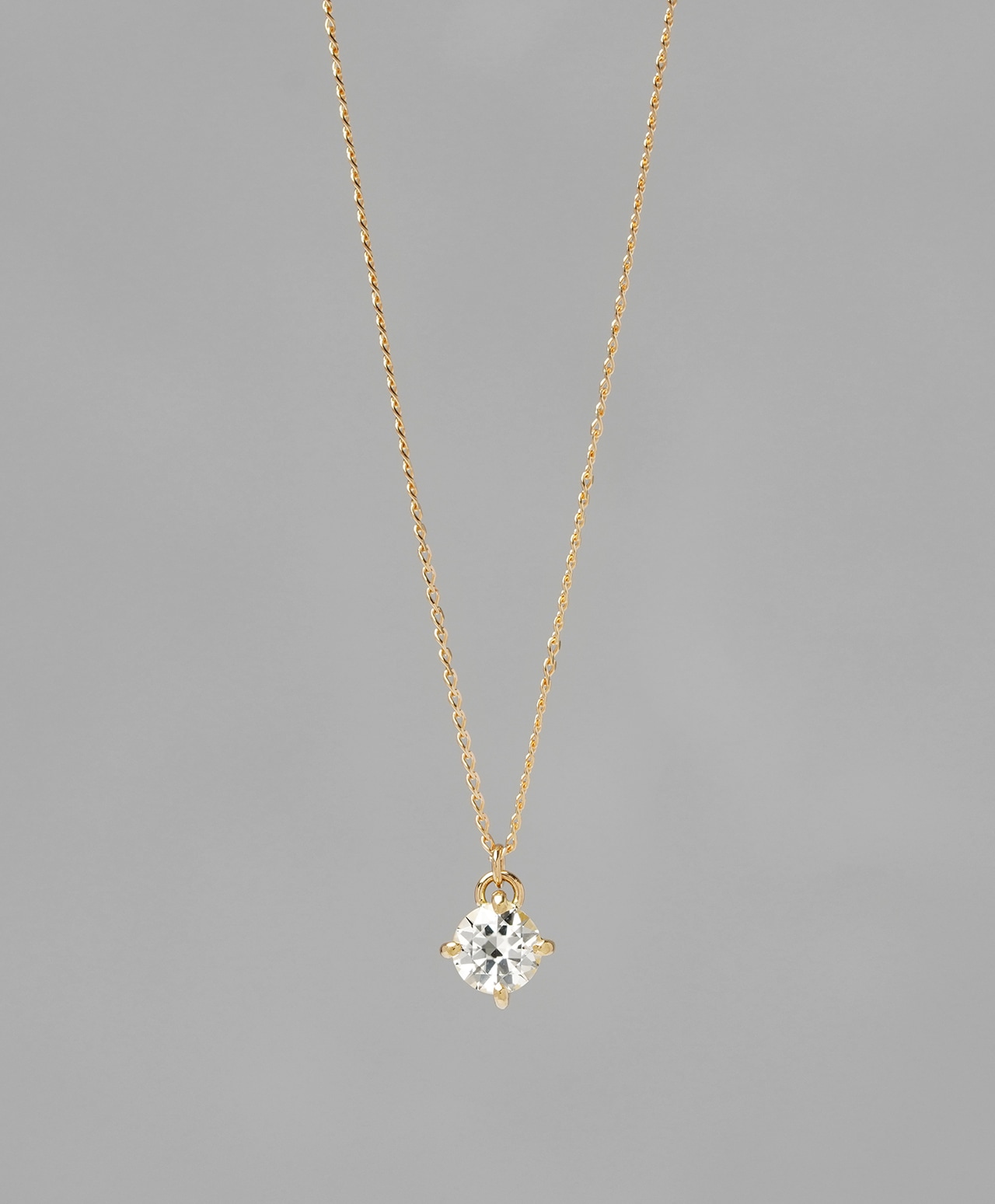 こちらは氷雪のような輝きの一粒を誂えたネックレス。オケージョンを問わないデザインになっておりますので、オン・オフ問わずご着用をお楽しみいただけます。