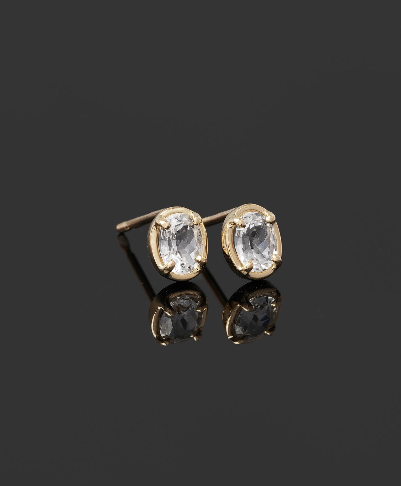 ミャンマー産の2つの石を、1点もののピアスにしました。オーバルカットのストーンを艶やかな18金の4爪で留めたシンプルなデザインはオケージョンを問わずご着用をお楽しみいただけるでしょう。