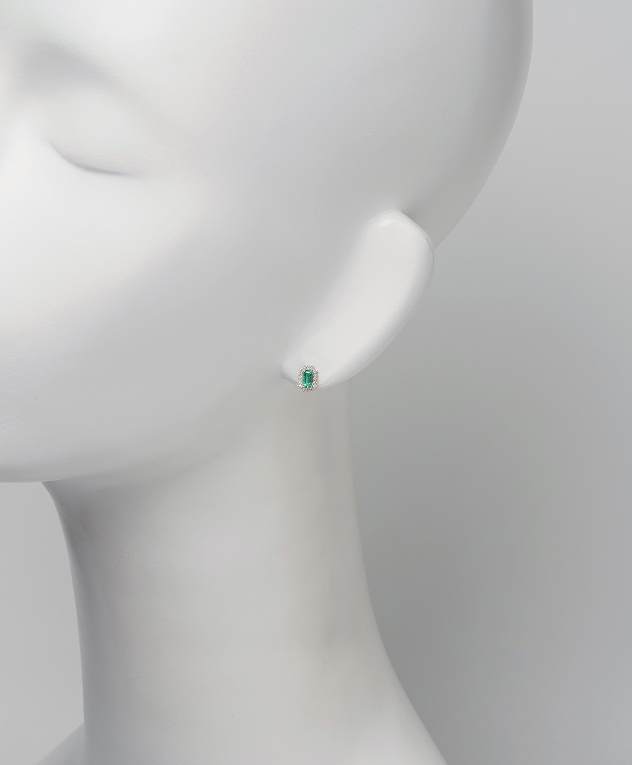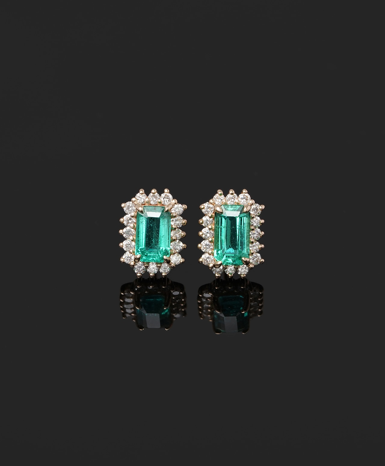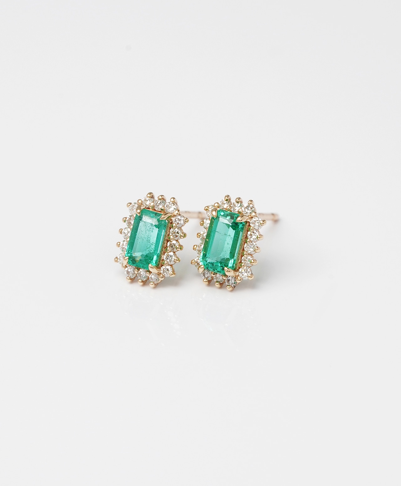 ゴールドの繊細なフレームに守られた姿は、エメラルドの気高い緑とダイヤモンドの清廉な輝きが響き合い、耳元に華やかでありながらも上品な存在感をもたらします。
